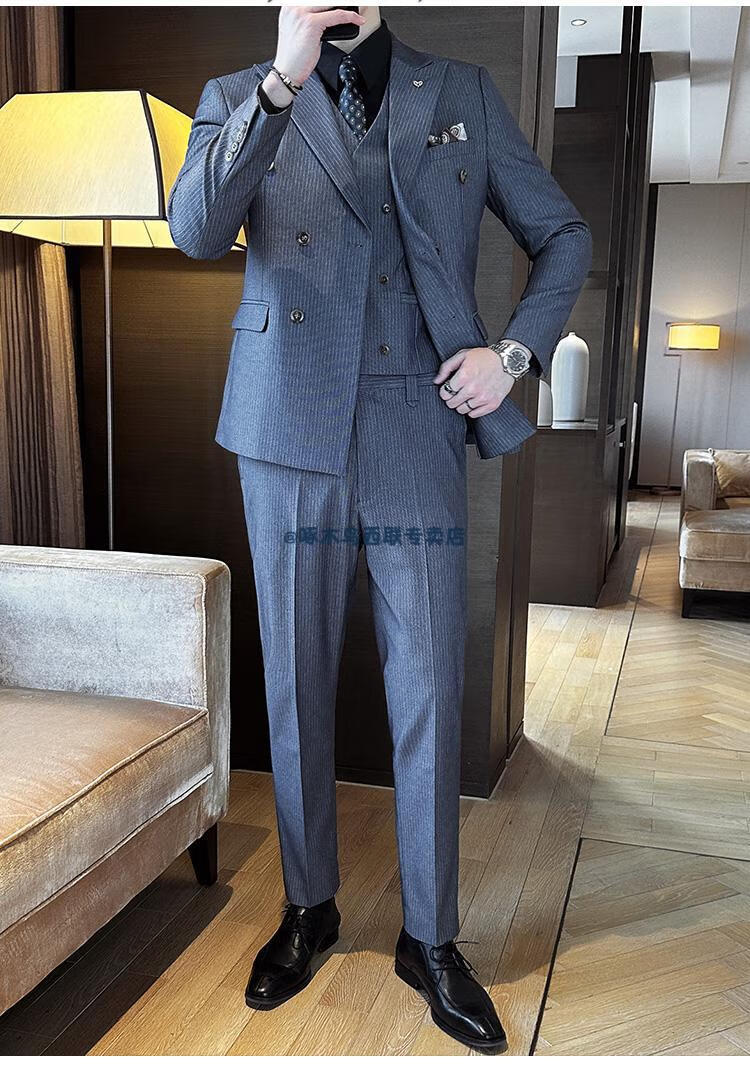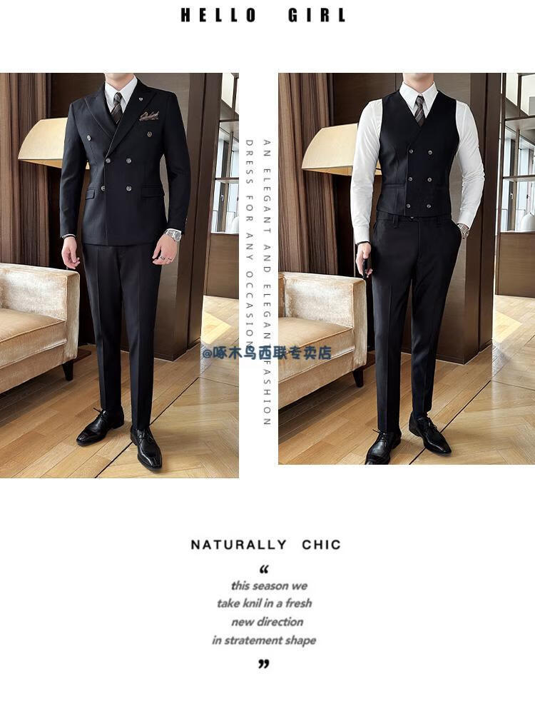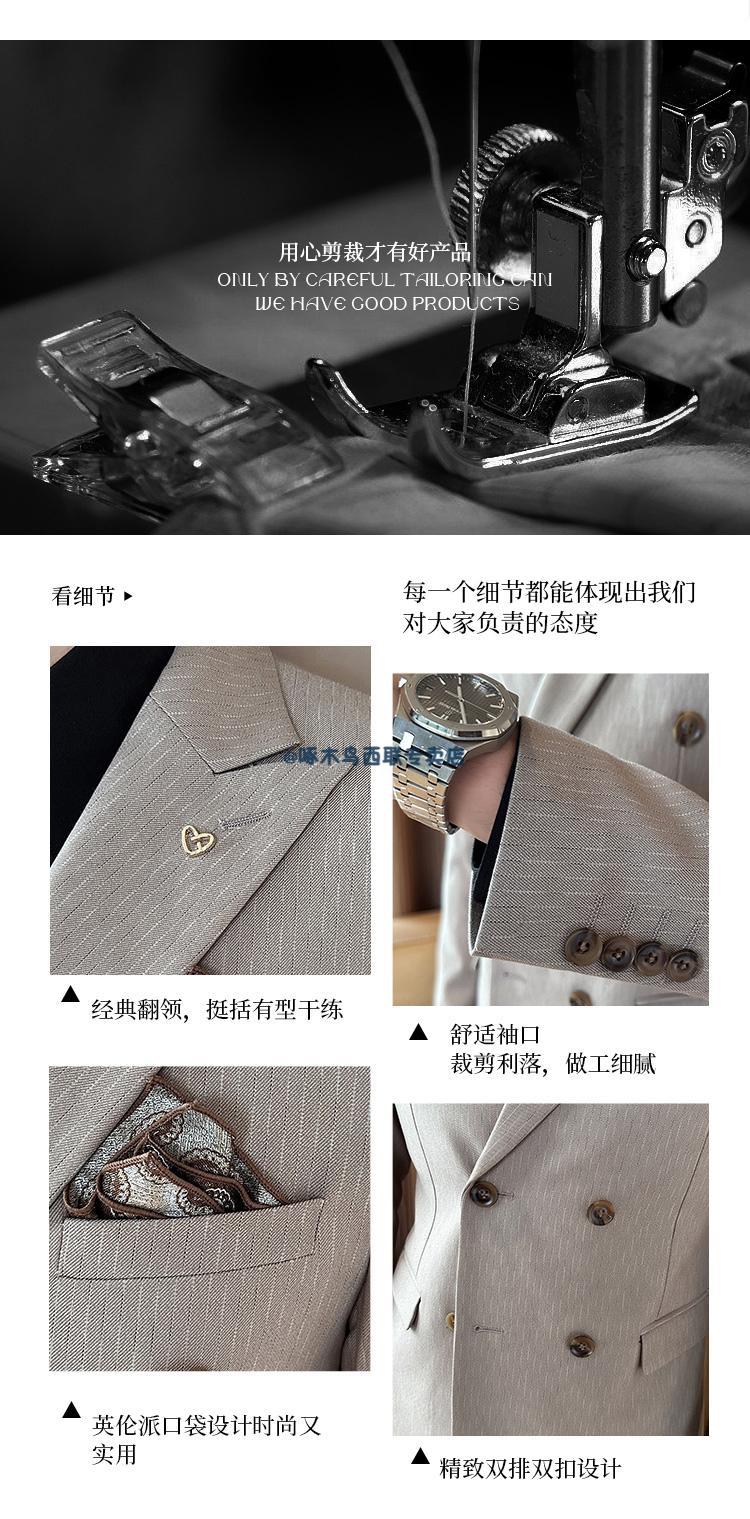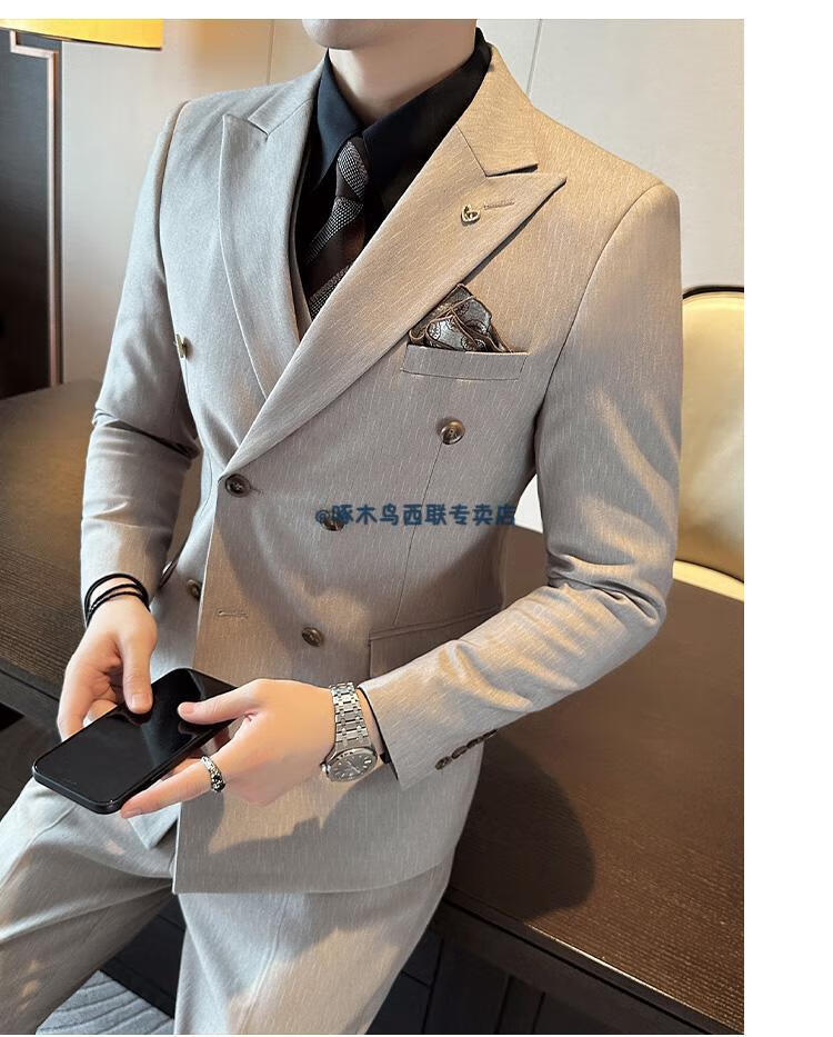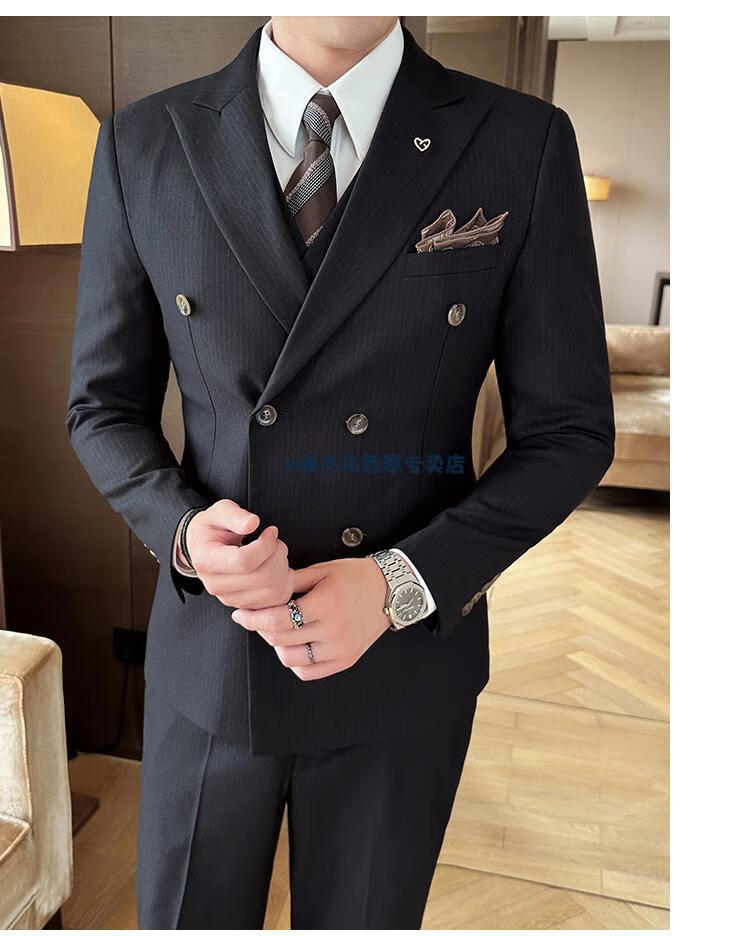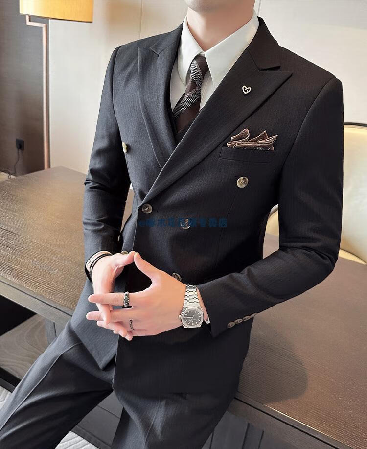 Woodpecker (TUCANO) lapel collar double-breasted suit men's slim suit striped small suit professional formal suit groom handsome wedding dress black one-piece suit XL