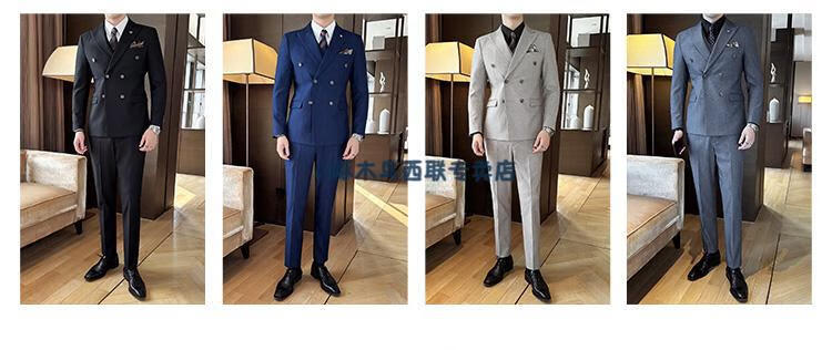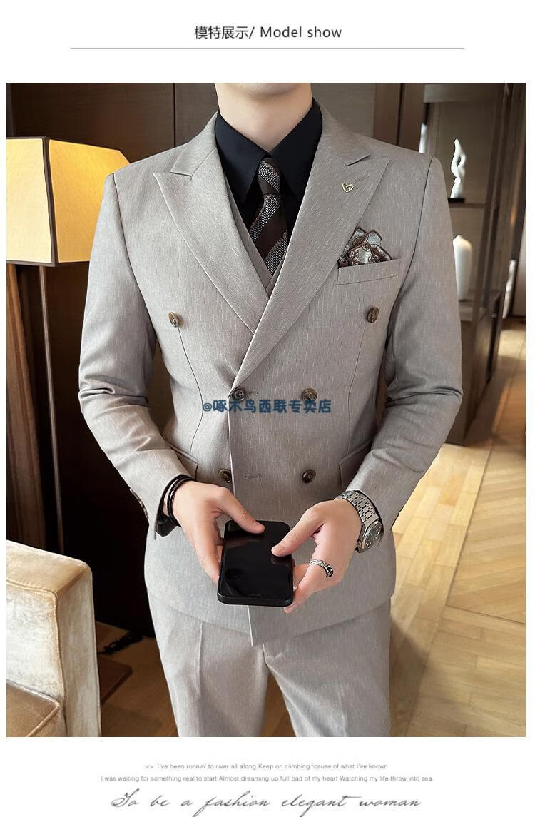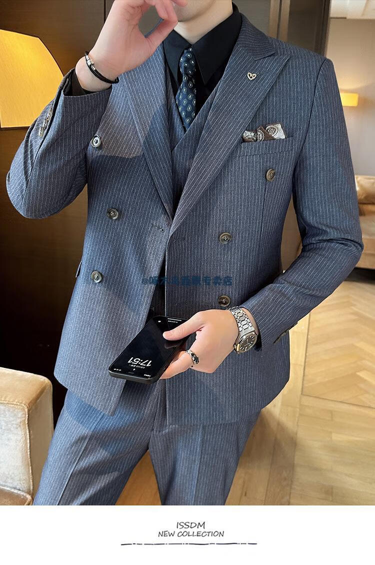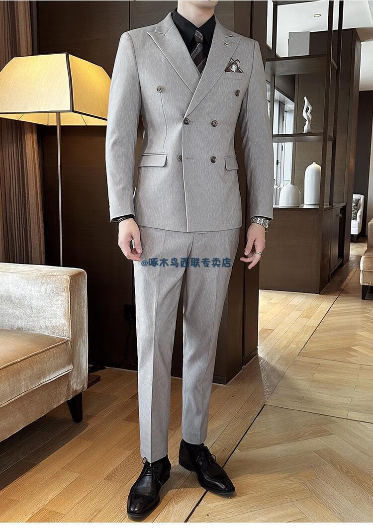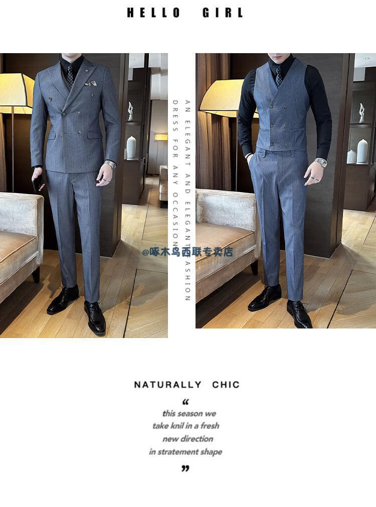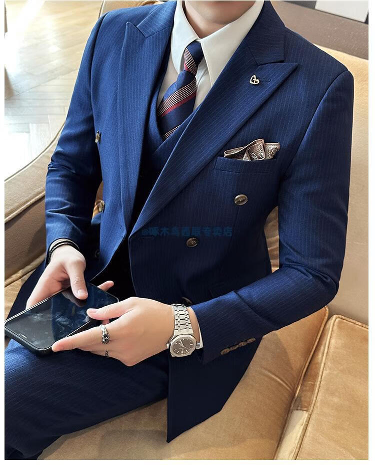 Woodpecker (TUCANO) lapel collar double-breasted suit men's slim suit striped small suit professional formal suit groom handsome wedding dress black one-piece suit XL