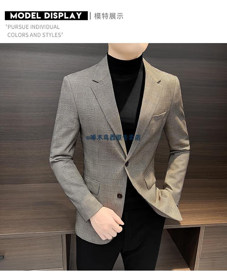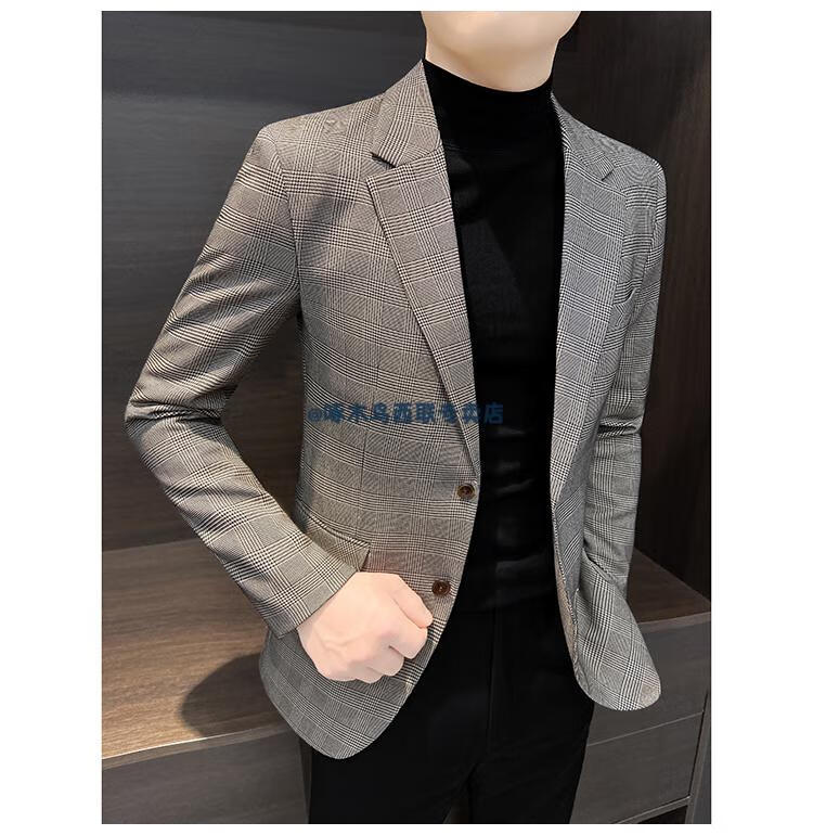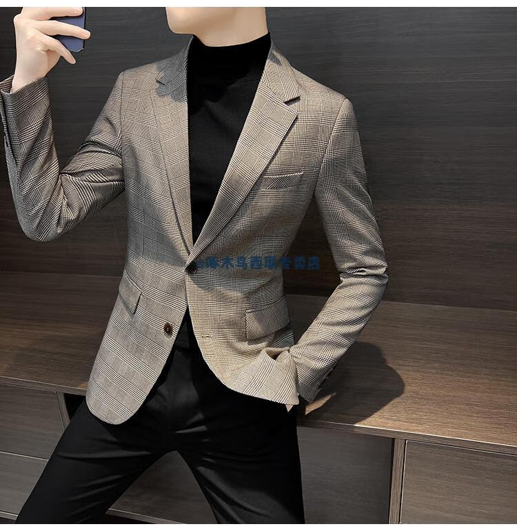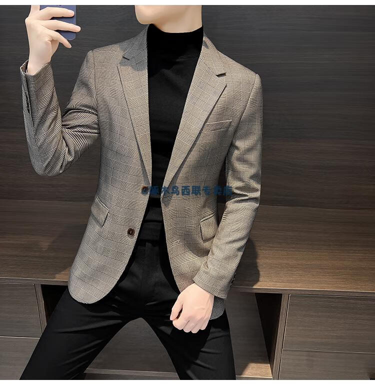 Woodpecker (TUCANO) Casual Small Suit Jacket Men's Spring and Autumn 2025 New Tops Handsome Houndstooth Suit Men's Khaki XL Recommended 140Jin Jin is equal to within 0.5 kg