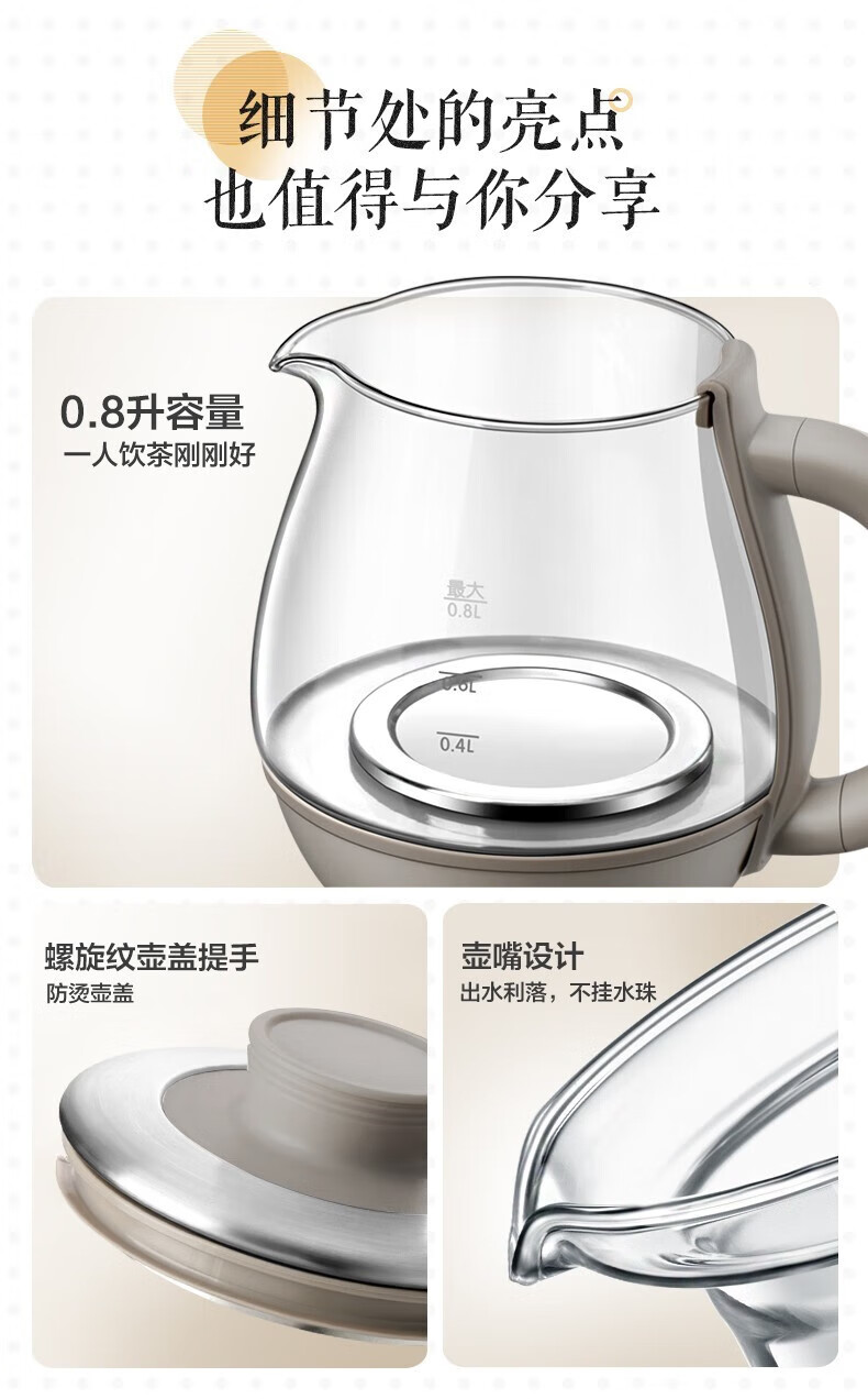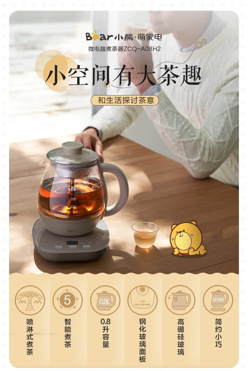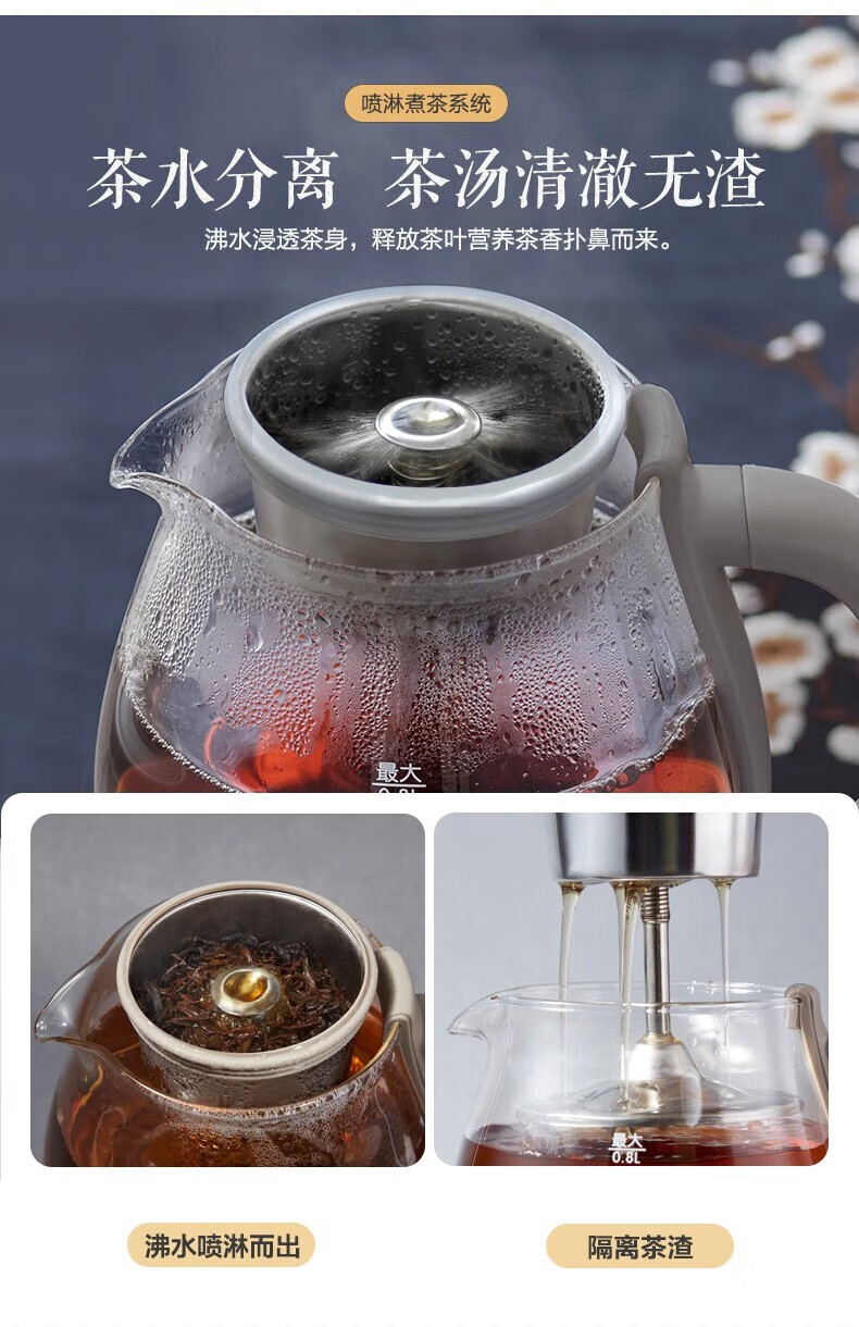 Bear tea boiler spray type household fully automatic steam spray tea kettle health tea kettle thickened glass tea steamer brewing tea kettle boiling scented tea black tea Pu'er tea ZCQ-A08H2 365 days for replacement 0.8L