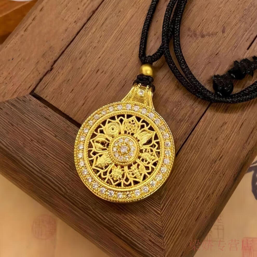 GRAYCEWODY Old Phoenix 999 gold gold-plated silver new auspicious eight-treasure compass necklace pendant diamond wool chain small fragrance rotating model eight-treasure compass with diamonds (single pendant