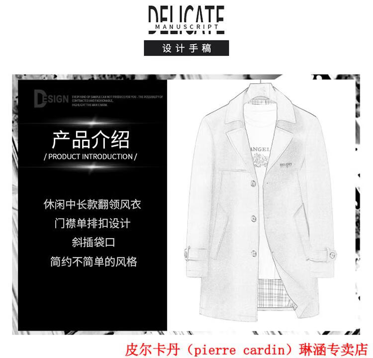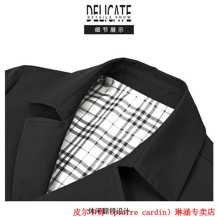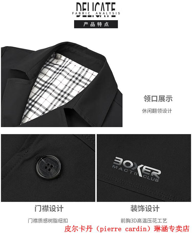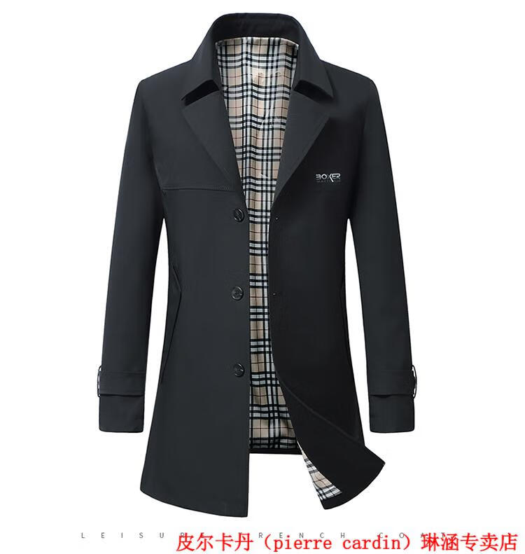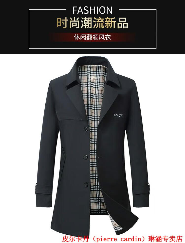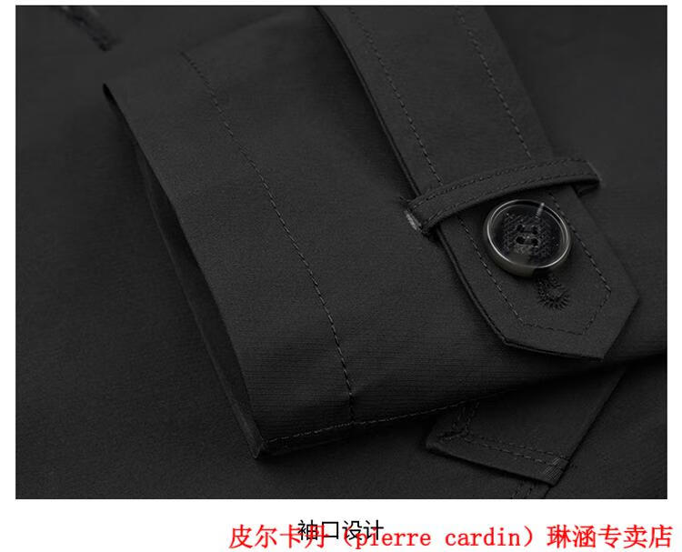 Pierre Cardin high-end men's windbreaker mid-length 2025 spring and autumn new slim trendy business casual thin coat black XL 150Jin Jin equals about 0.5 kg