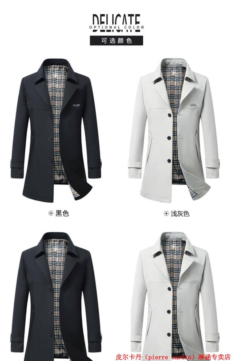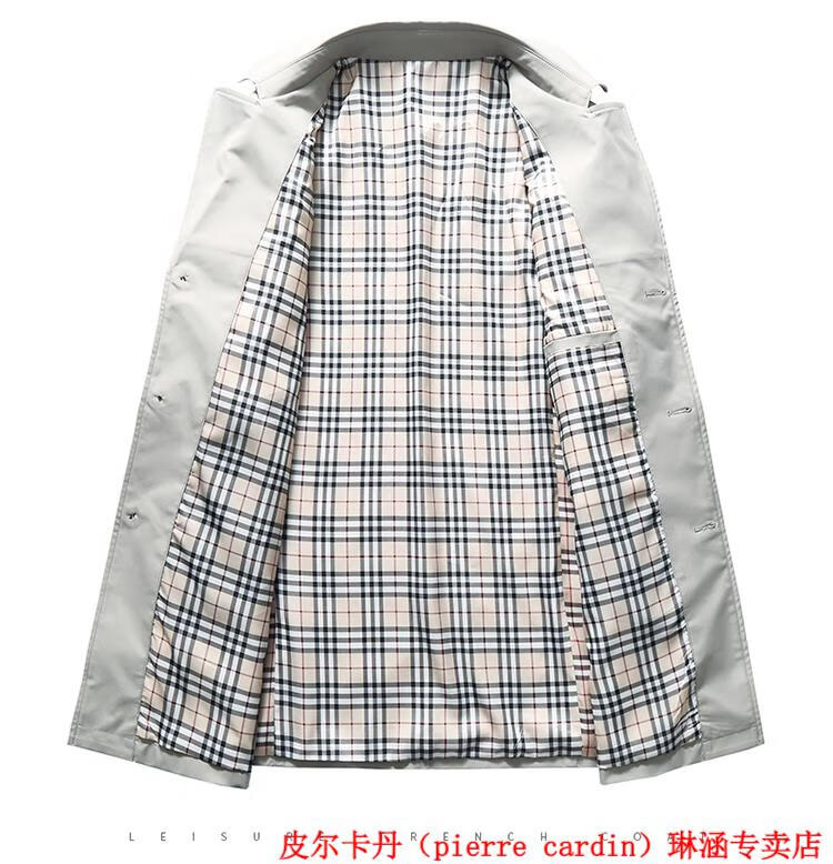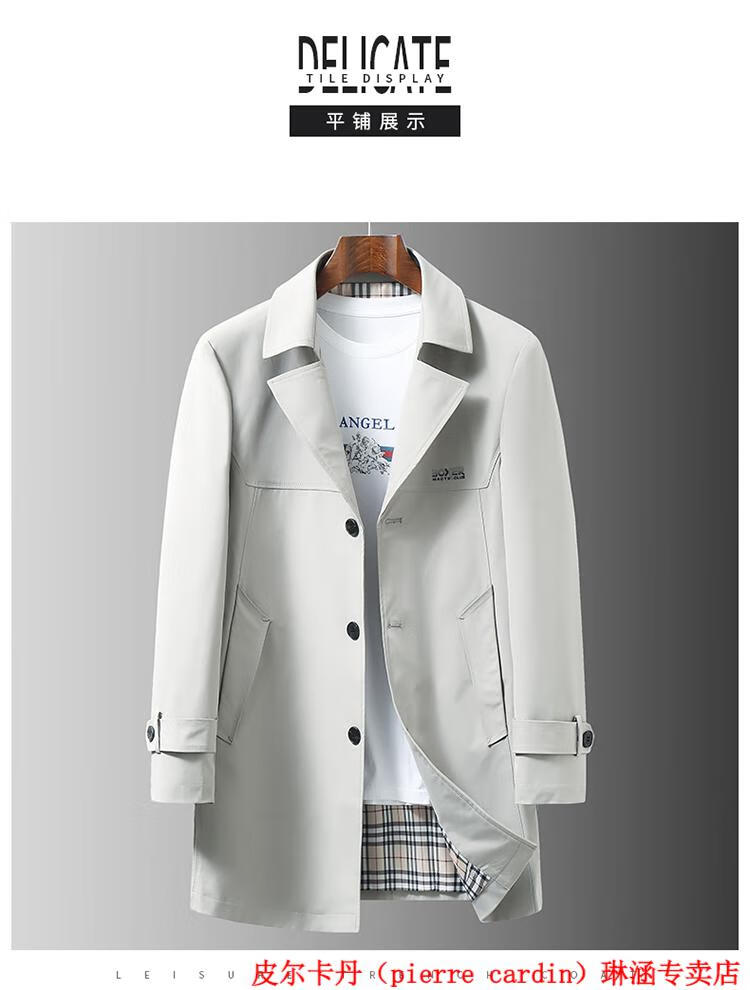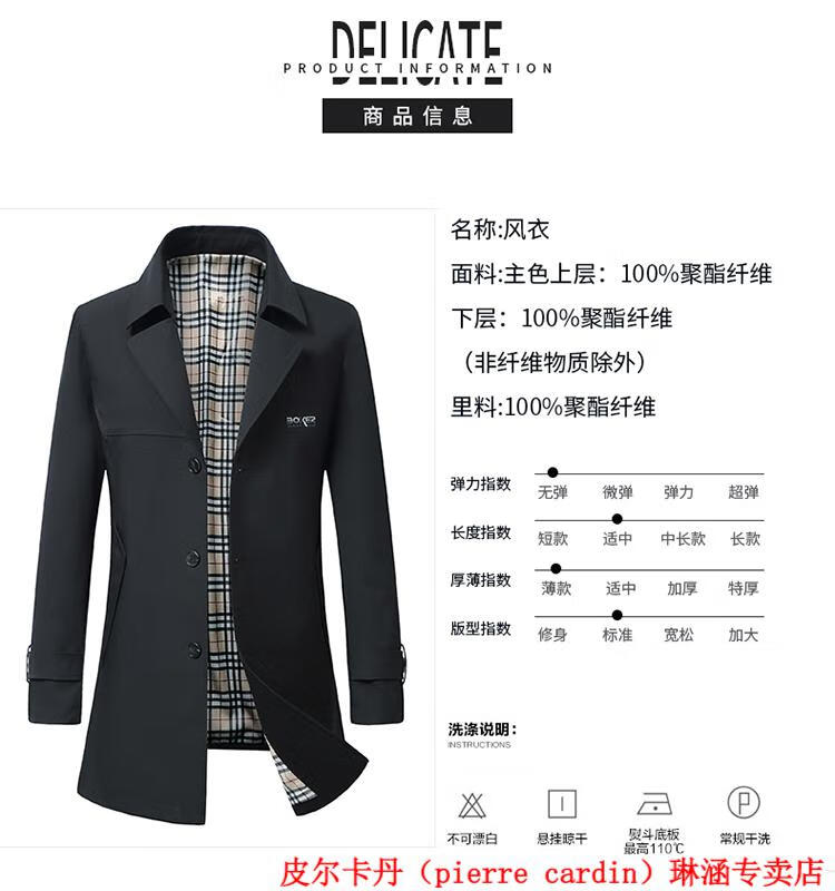 Pierre Cardin high-end men's windbreaker mid-length 2025 spring and autumn new slim trendy business casual thin coat black XL 150Jin Jin equals about 0.5 kg