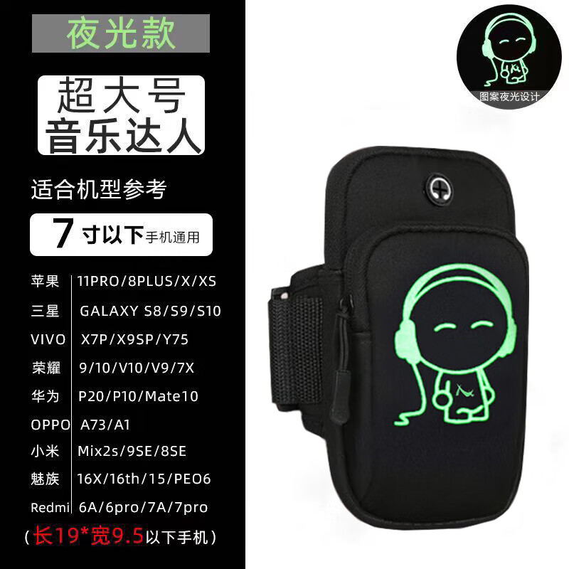 Xu Qixing outdoor running mobile phone arm bag sports mobile phone bag sports equipment fitness mobile phone case wrist bag mobile phone carrier extra large black luminous 7-inch mobile phone