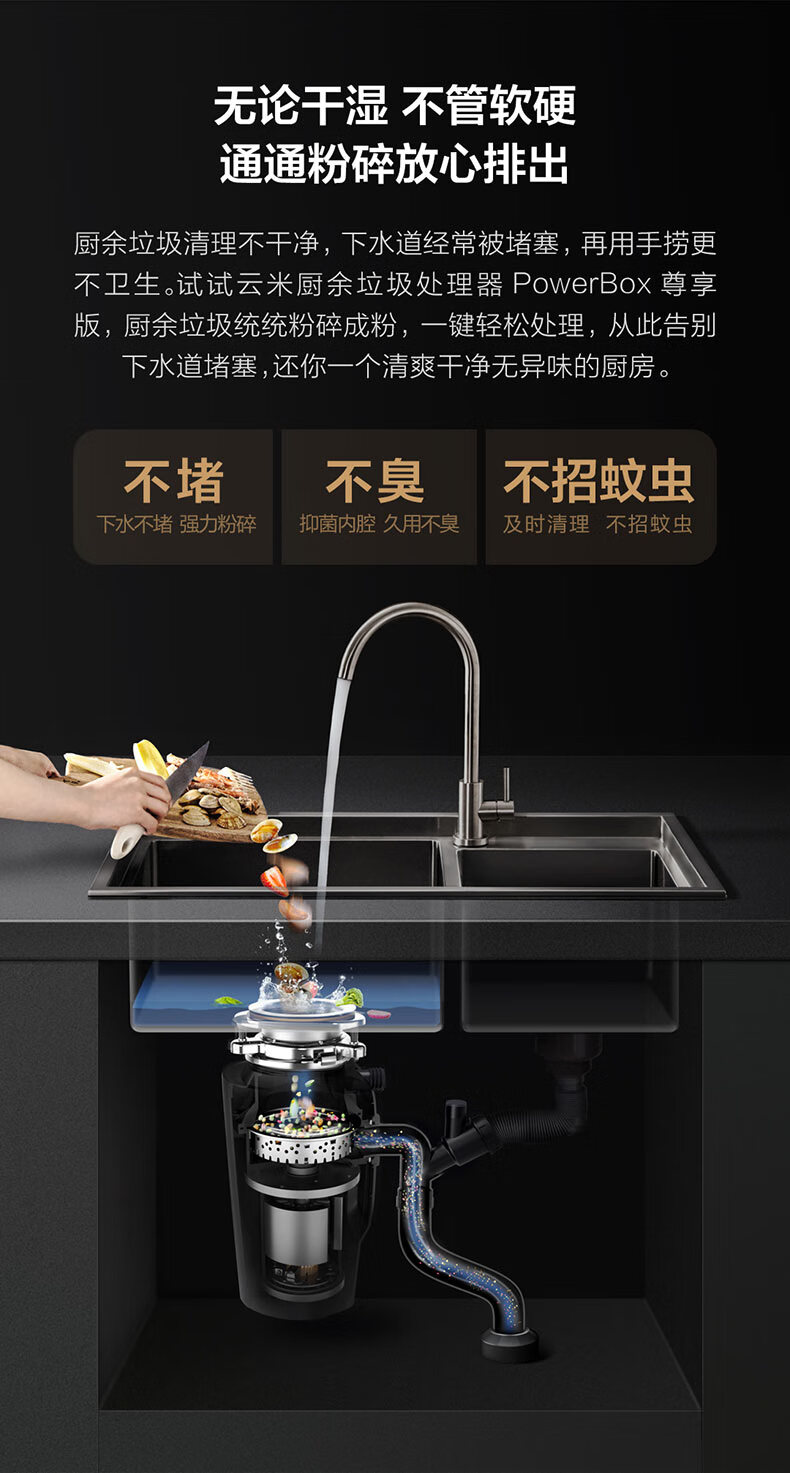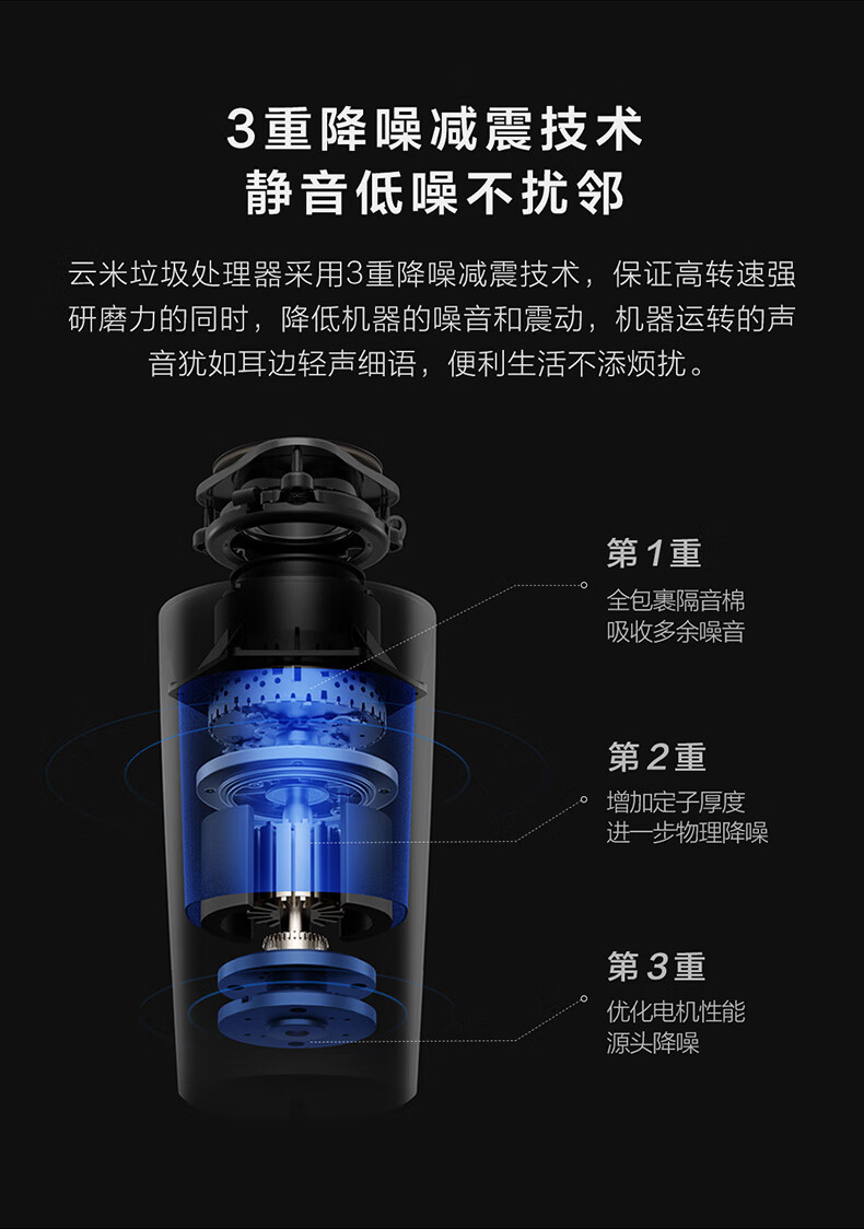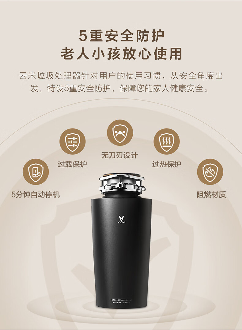 VIOMI household kitchen sink garbage disposer grinder sewer food waste grinder 5 layers of safety protection