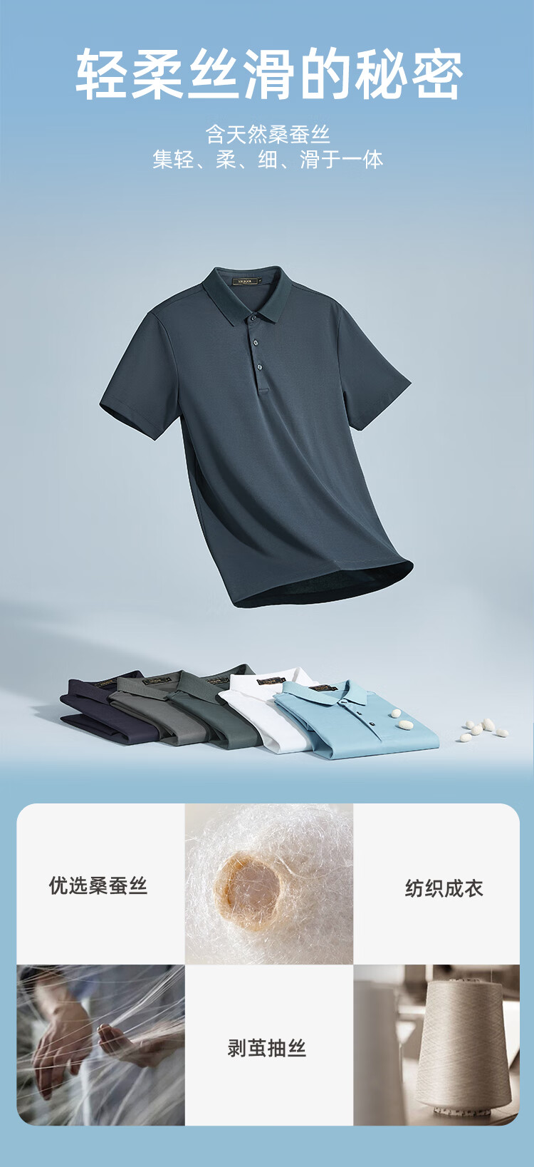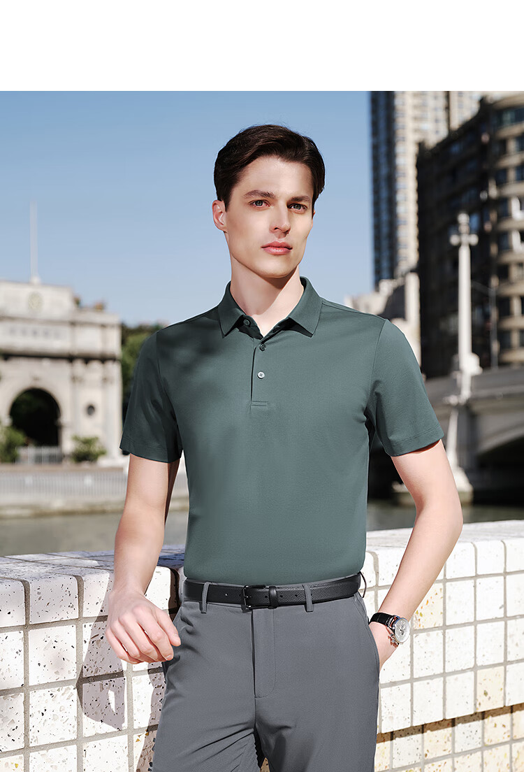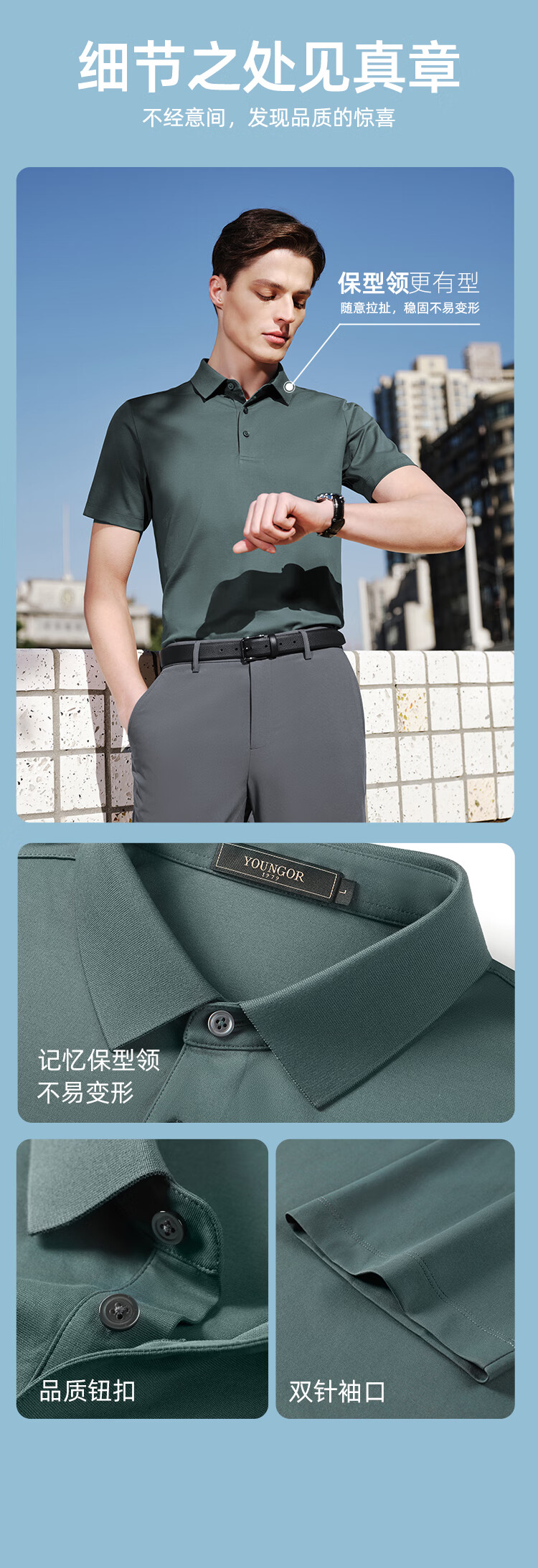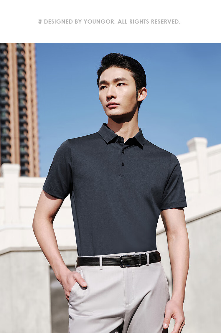 Youngor short-sleeved POLO shirt men's lapel machine washable mulberry silk shape-protective collar blended fabric soft and comfortable 2025 style dark gray VSZS533111CCA M (recommended 120-135Jin Jin equals 0.5 kg)