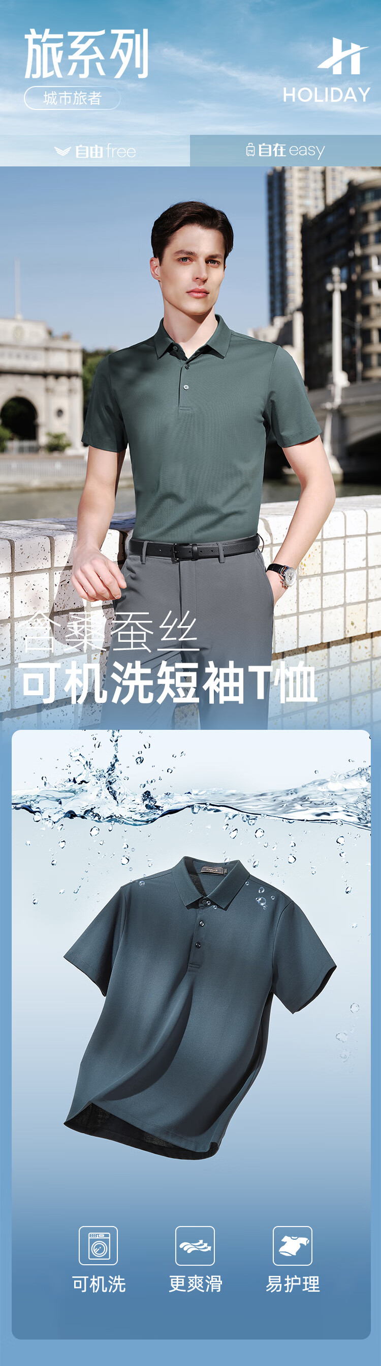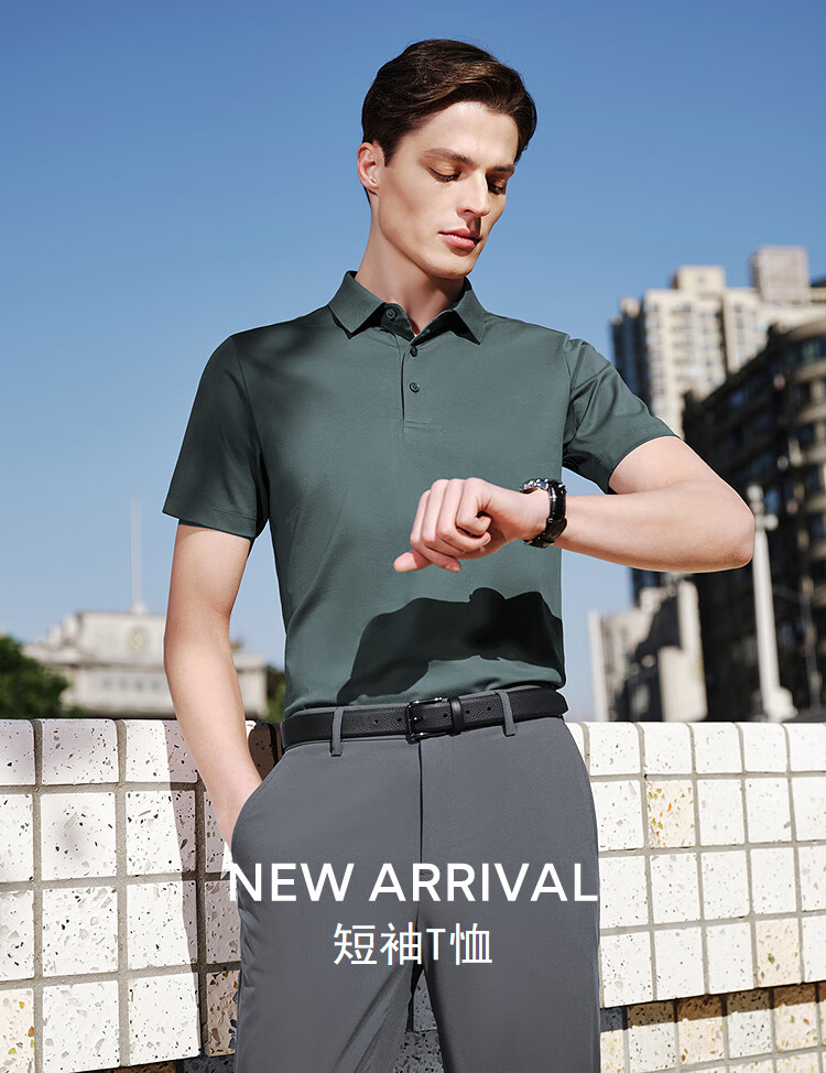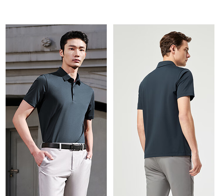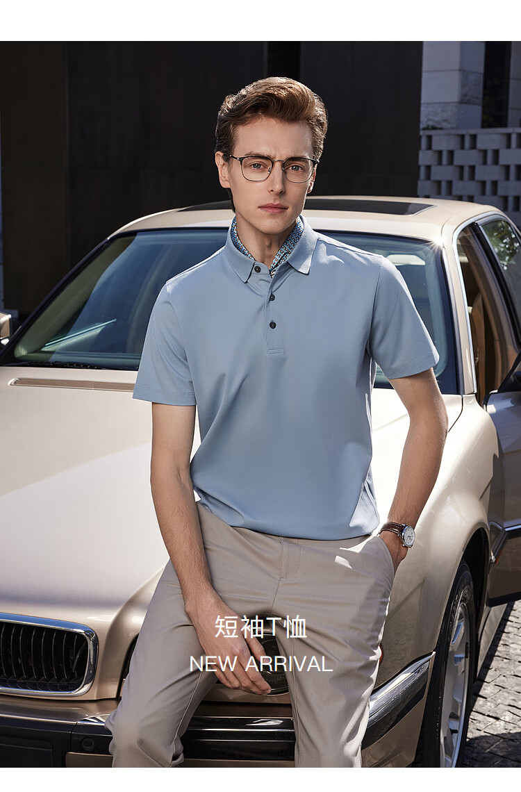 Youngor short-sleeved POLO shirt men's lapel machine washable mulberry silk shape-protective collar blended fabric soft and comfortable 2025 style dark gray VSZS533111CCA M (recommended 120-135Jin Jin equals 0.5 kg)