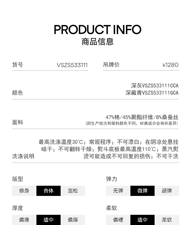 China (cm) 160-165/84-86 165-170 / 88-90 167-172 / 92-96 168-173 / 98-102 170-176 / 106-110