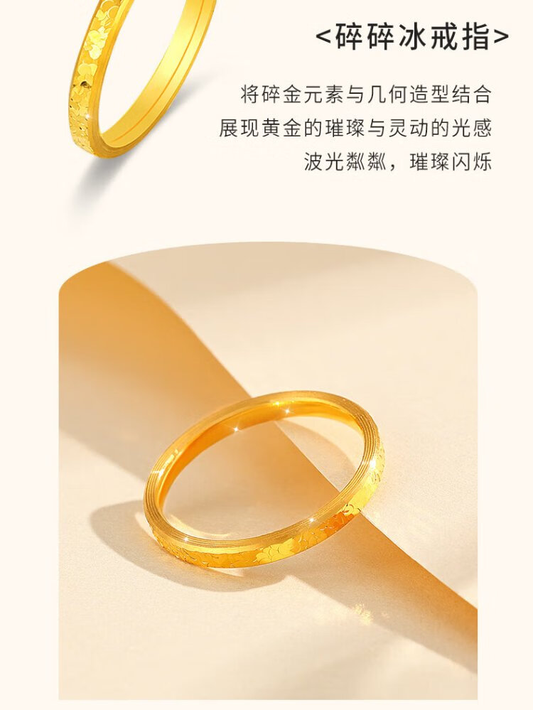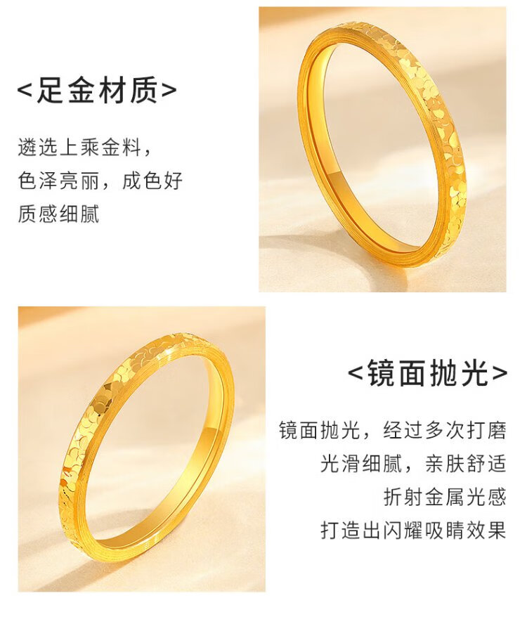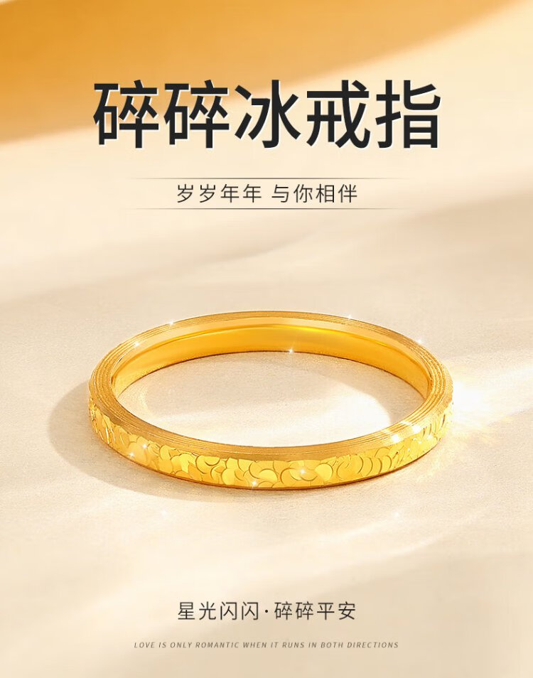 Chinese jewelry broken ice gold ring for men and women couples, pure gold pair of rings, a birthday gift for my wife, a Chinese Valentine's Day gift for my girlfriend, 12 rings, about 0.95g