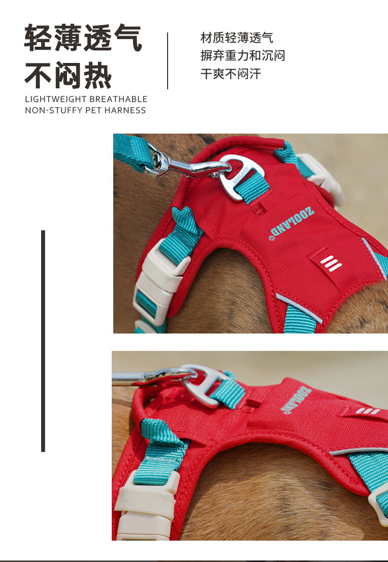ZOOLAND Dog Harness Thin, Lightweight, Adjustable Harness, Traction Rope, Comfortable and Cool for Dog Walking, Anti-Escape Breathable Harness ZLHA-046J Pomegranate Green XXS