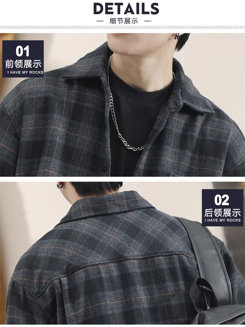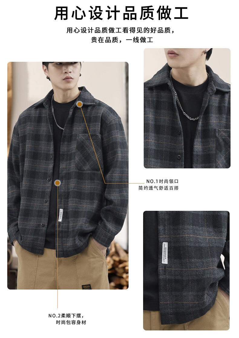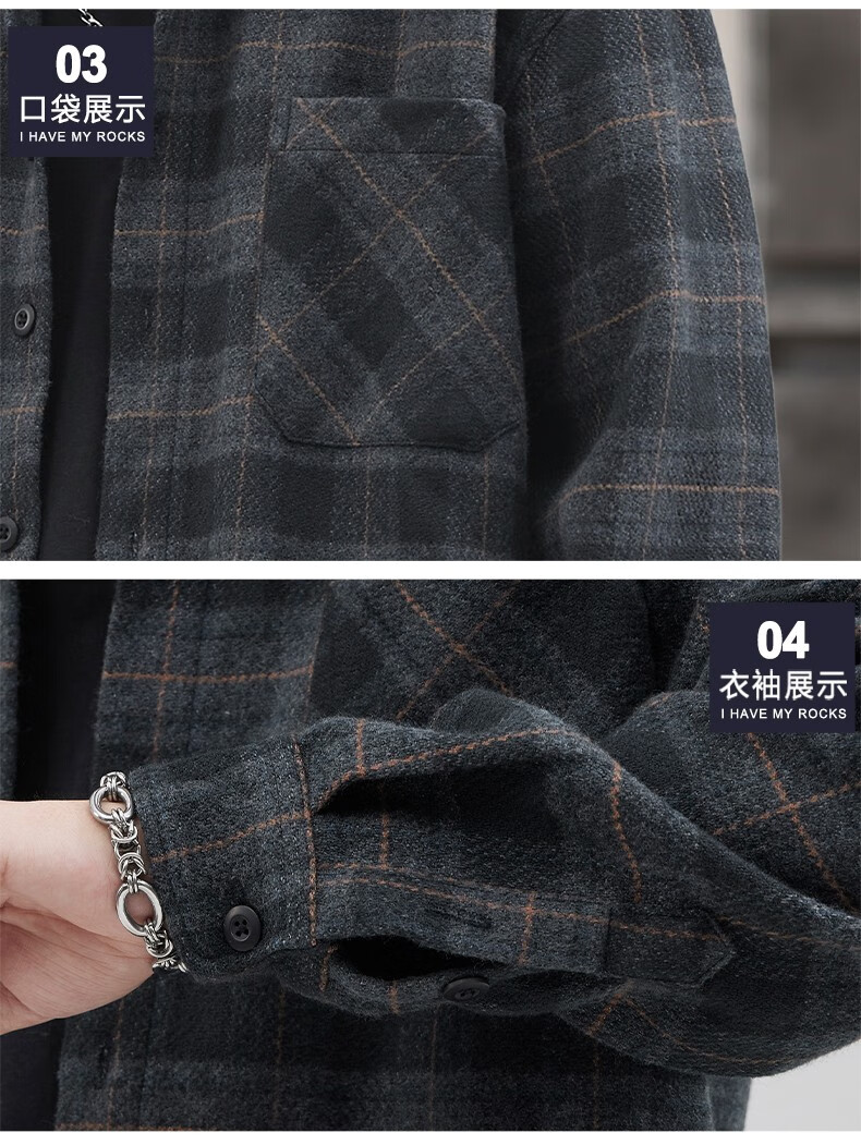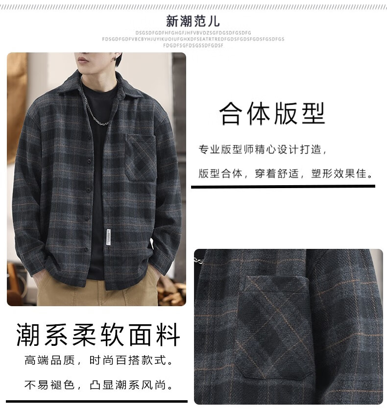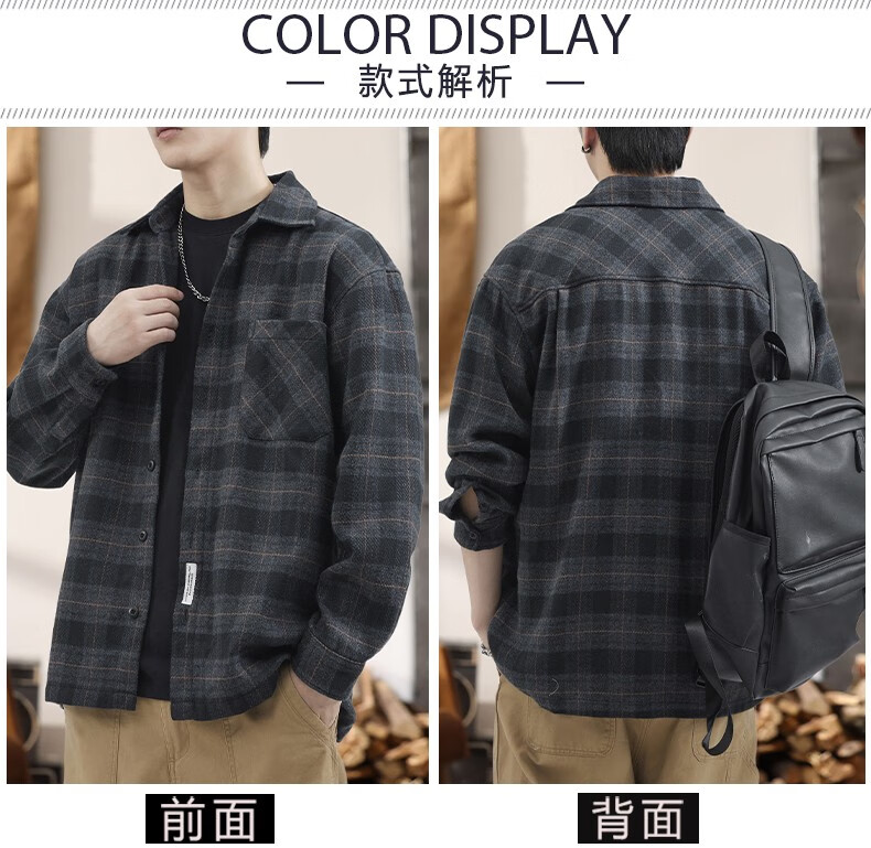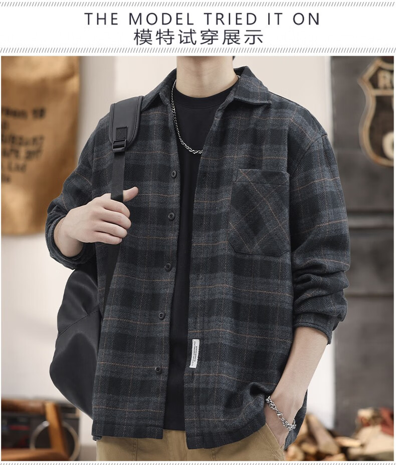 Kuraishi Kazuki Kuraishi Kazuki trendy brand high-end casual plaid jacket men's spring and autumn velvet loose long-sleeved shirt top Gray XL Recommended weight 140-160