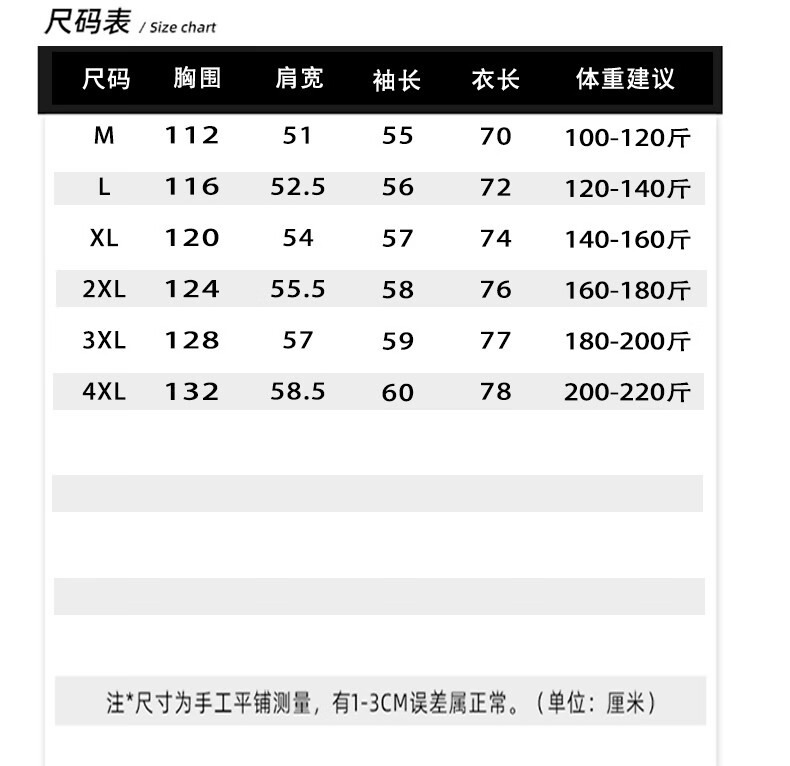China (cm) 165 / 88-90 170 / 96-98 175 / 108-110 180 / 118-122 185 / 126-130