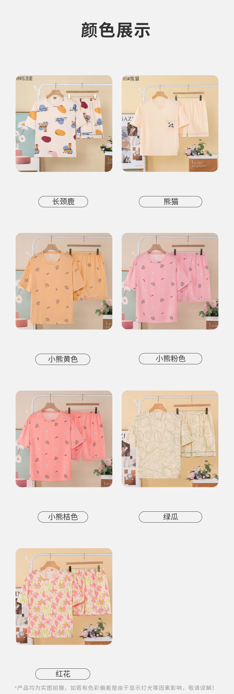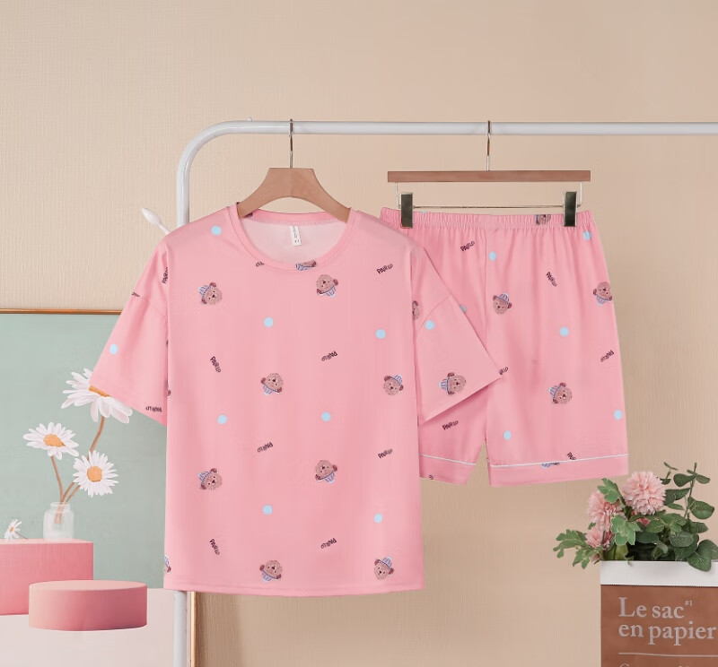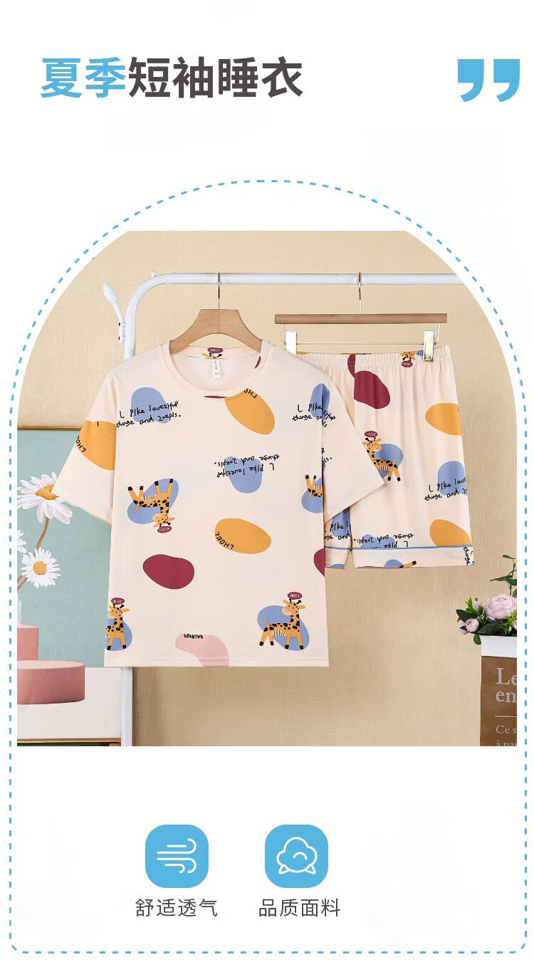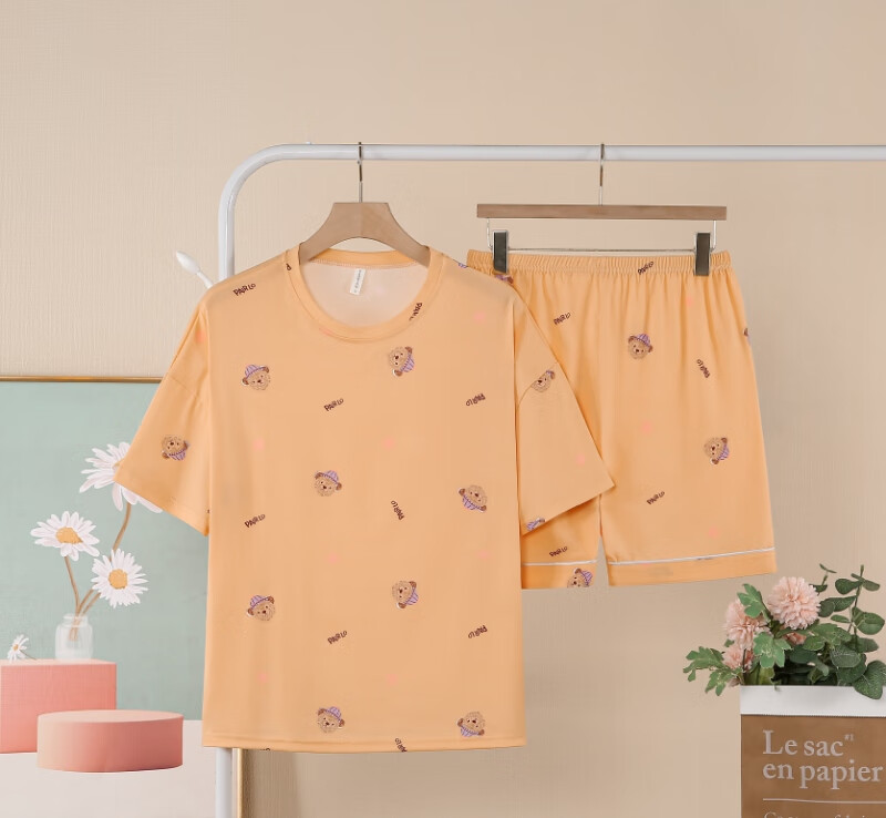 Pajamas Women's Summer Short Sleeve Shorts Cute Casual Summer 2025 New Women's Cartoon Thin Home Clothes A02 Bear Yellow L (Recommended 100-120 Jin Jin equals 0.5 kg)