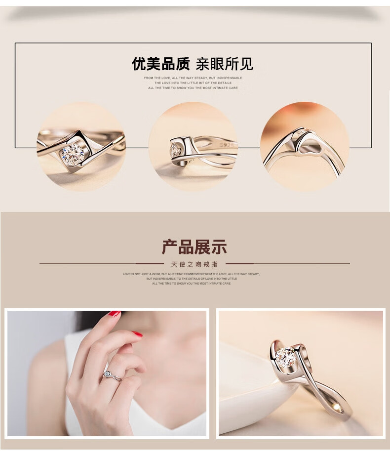 Extra long warranty, 38-section platinum ring pt950 platinum ring, Valentine's Day gift for girlfriend, 50 points (diamond ring) + certificate gift box, live ring (can be adjusted freely)