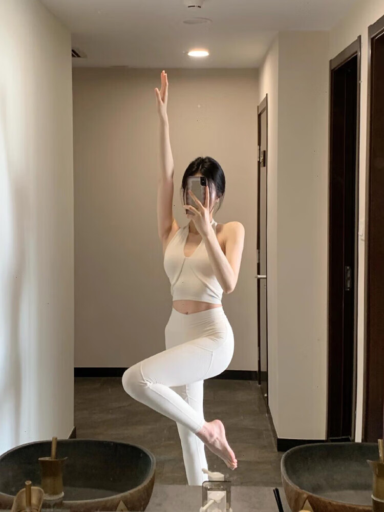 Kangaroo (DAISHU) light luxury yoga clothing set for women 2025 new high-end summer fitness clothes Pilates training clothes tops and vests two-piece set apricot white top + apricot white pants M (98-108Jin Jin equals 0.5 kg)