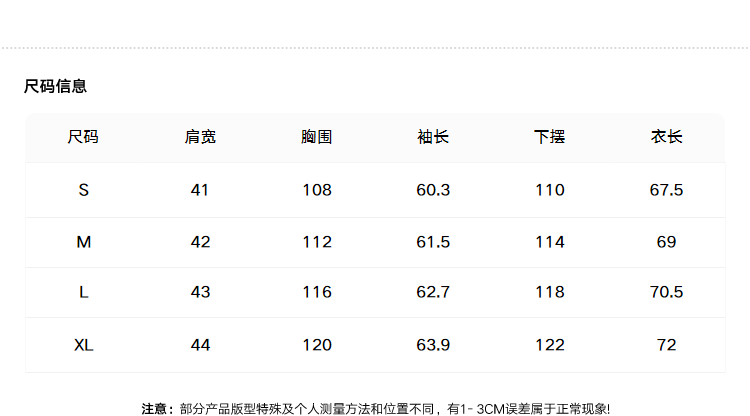 Size (cm) 42 44 46 48 50