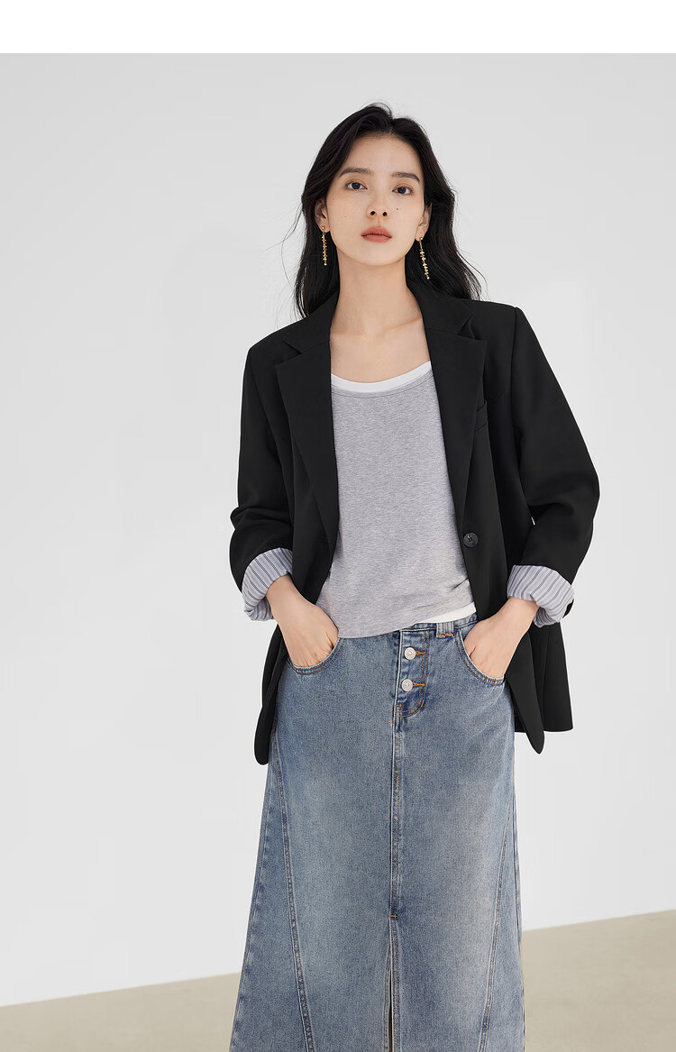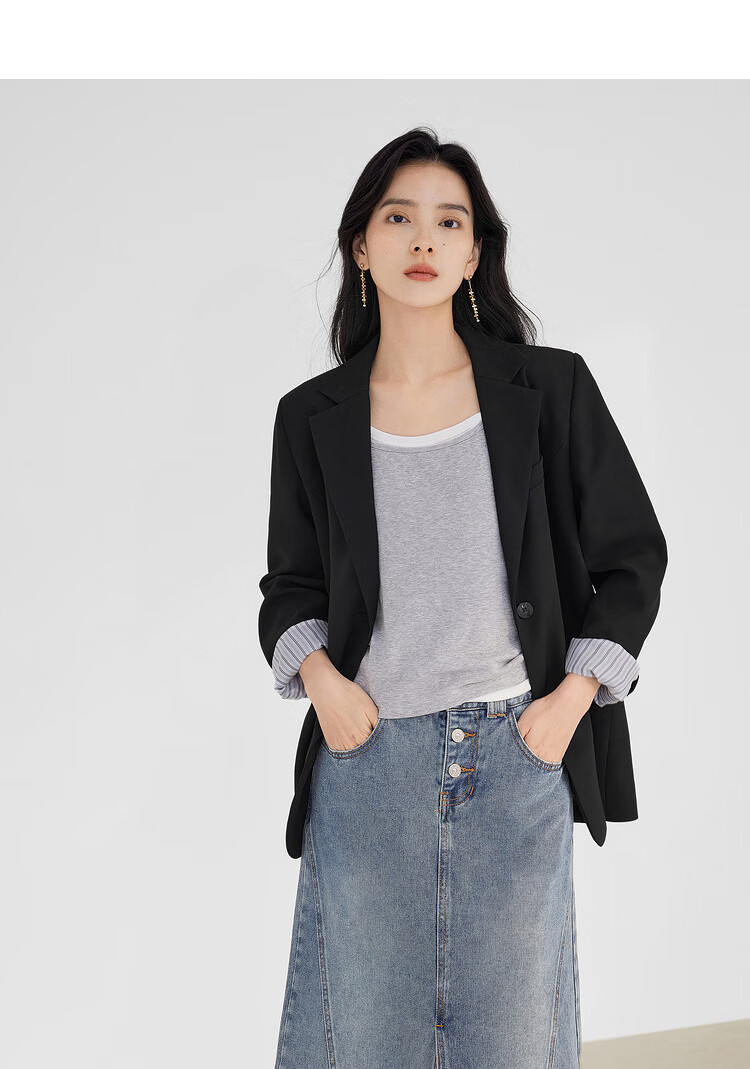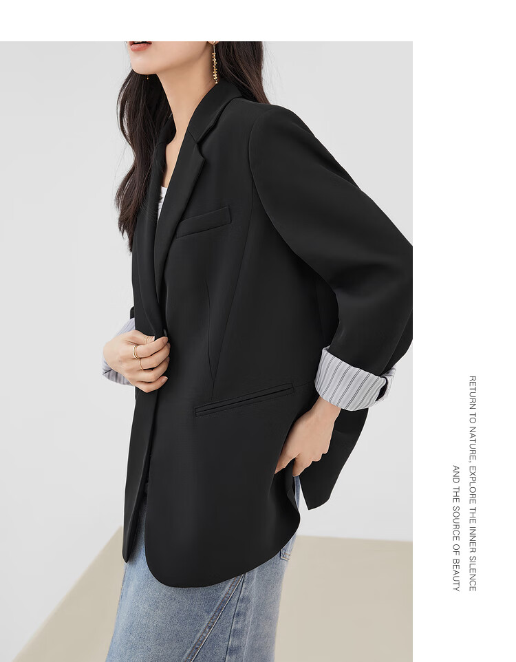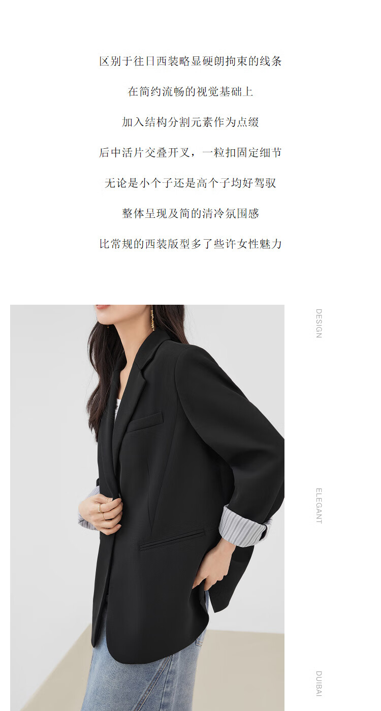 Dialogue (DUIBAI) lightweight shoulder pad silhouette suit jacket for women 2026 spring new style small temperament casual commuting small suit quiet black M