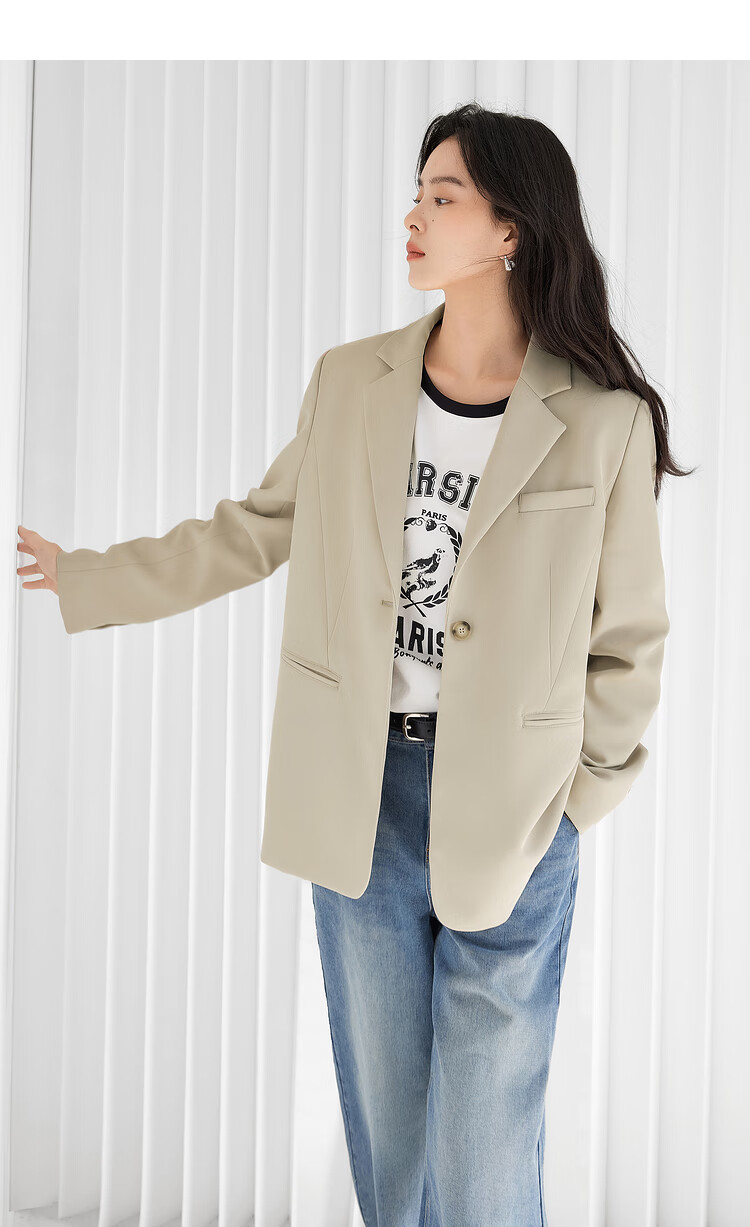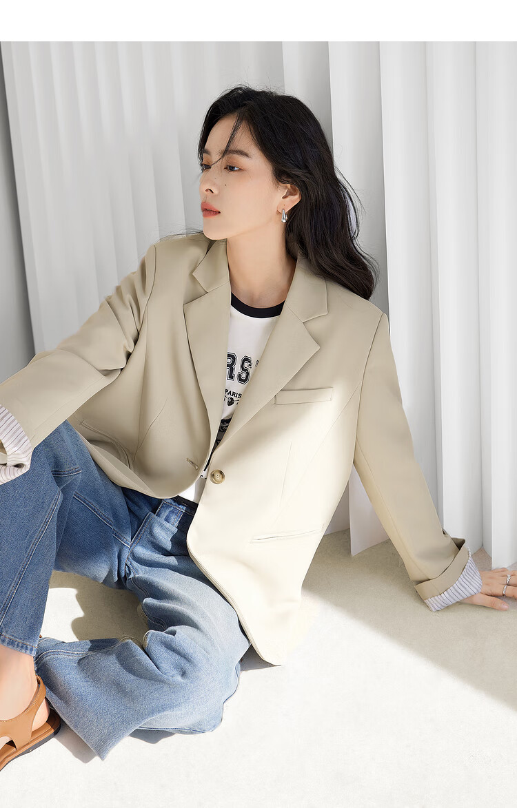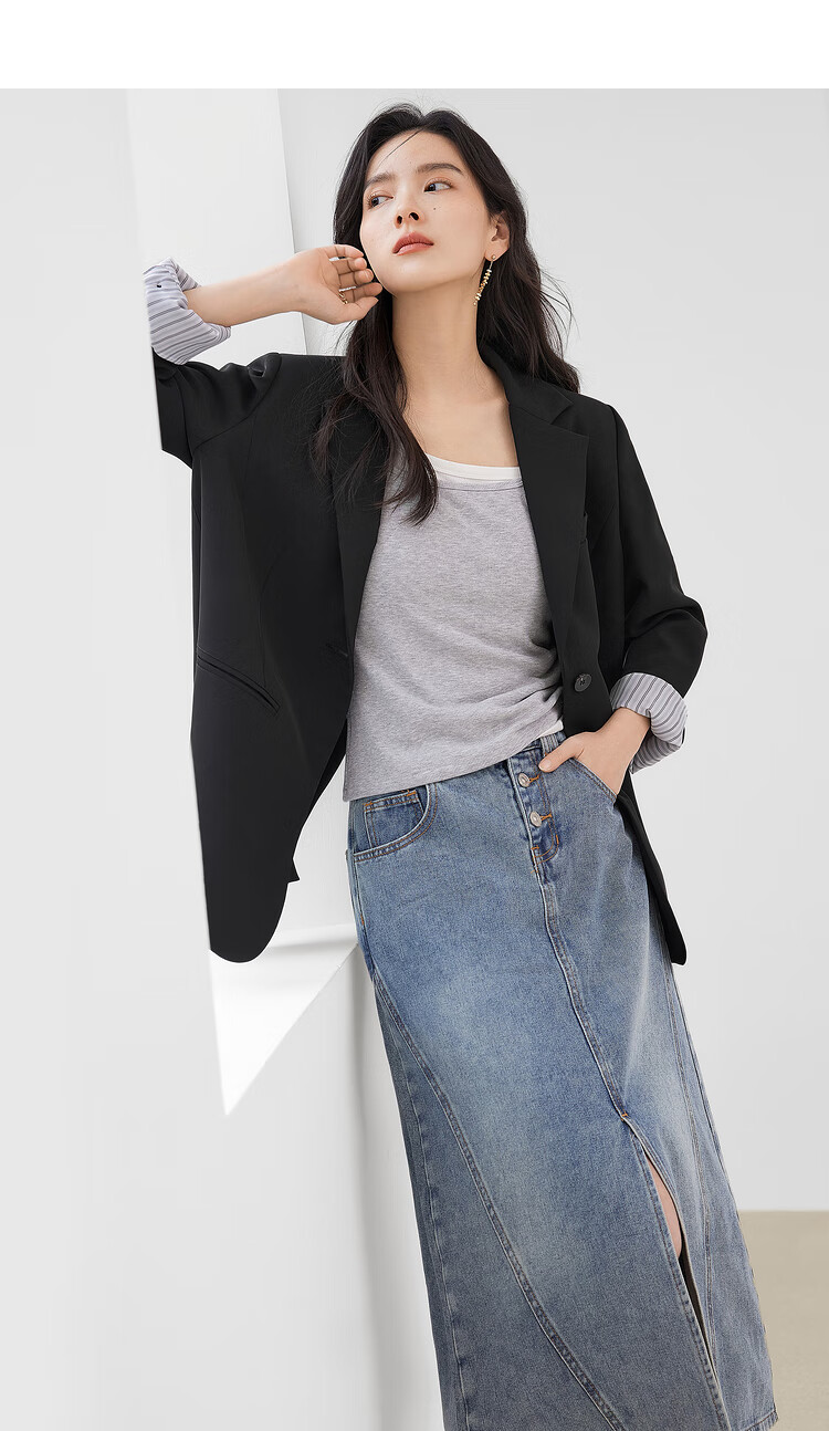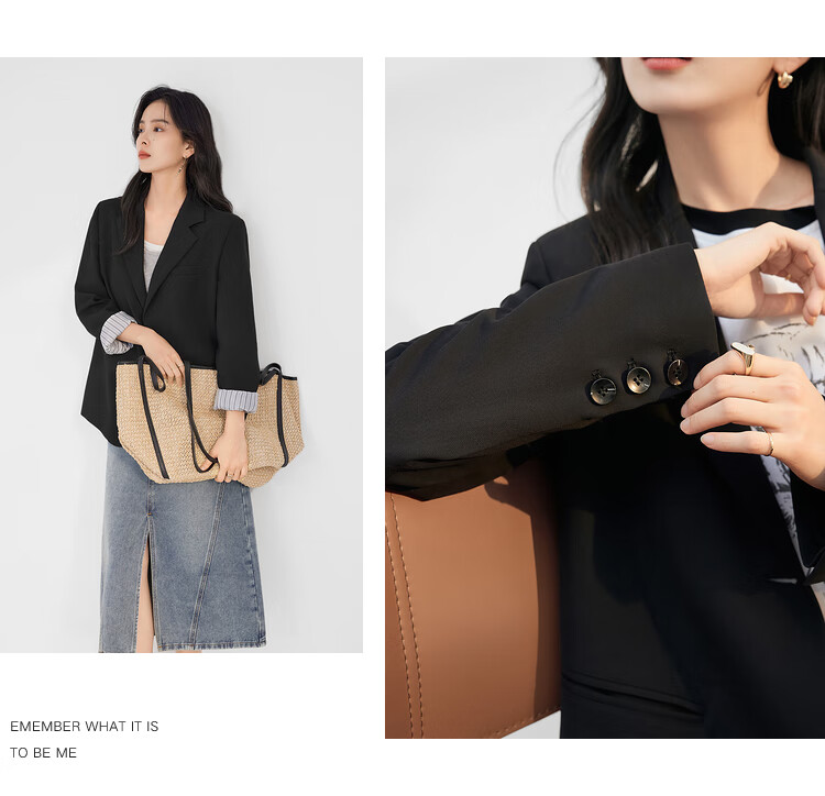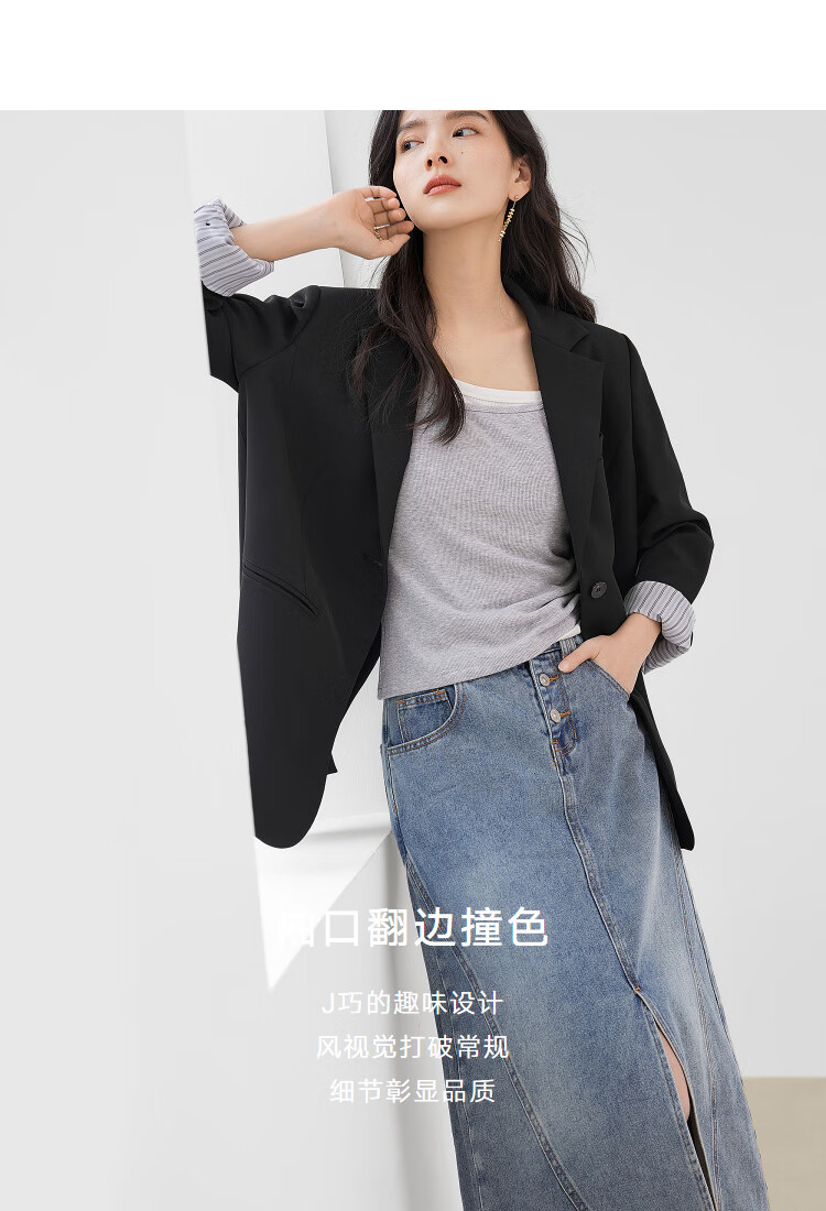 Dialogue (DUIBAI) lightweight shoulder pad silhouette suit jacket for women 2026 spring new style small temperament casual commuting small suit quiet black M
