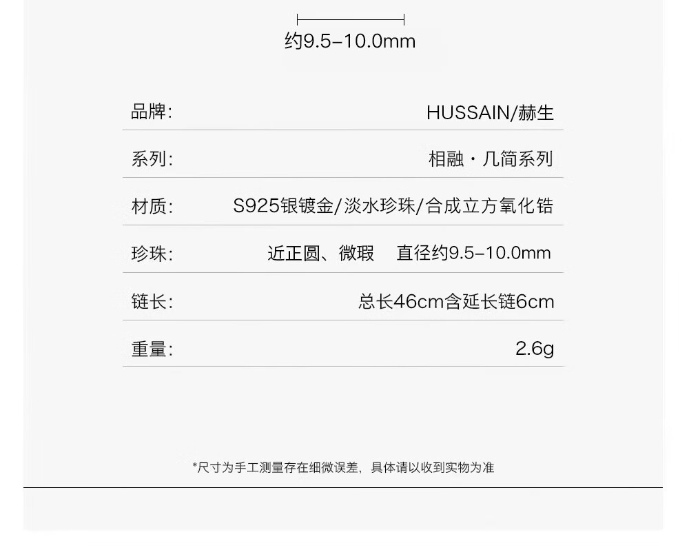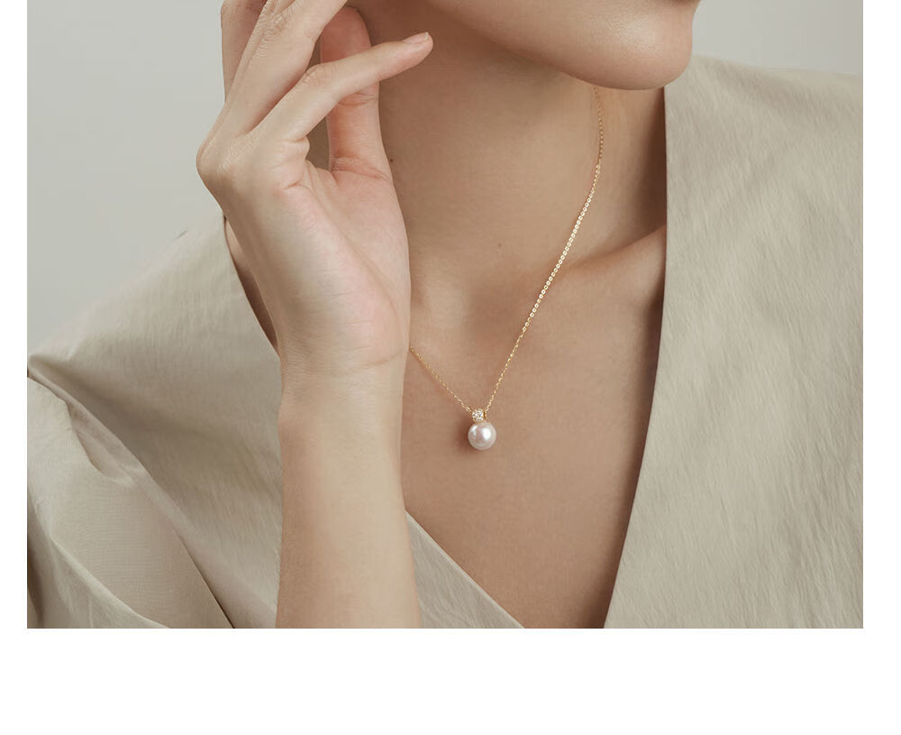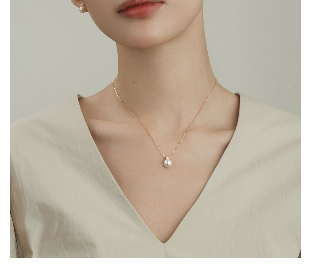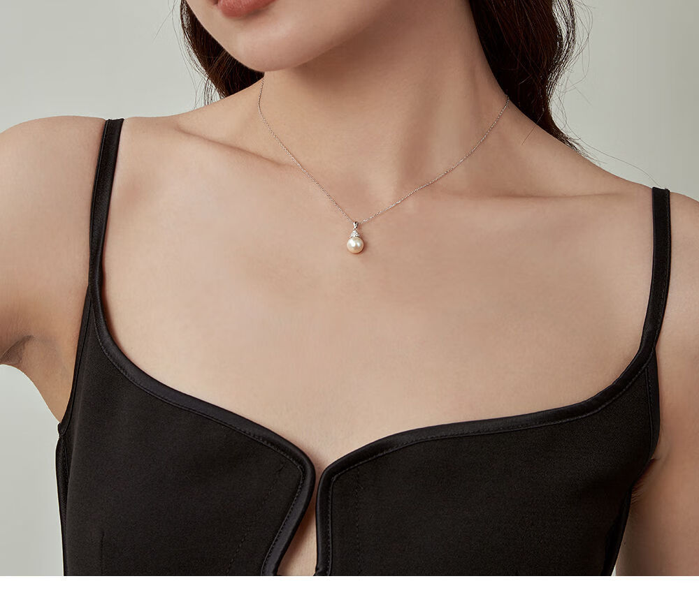 Two snow HUSSAIN blended natural freshwater pearl necklace for Princess Diana, light luxury clavicle chain single pendant necklace, white gold + 9.5-10mm natural freshwater pearl