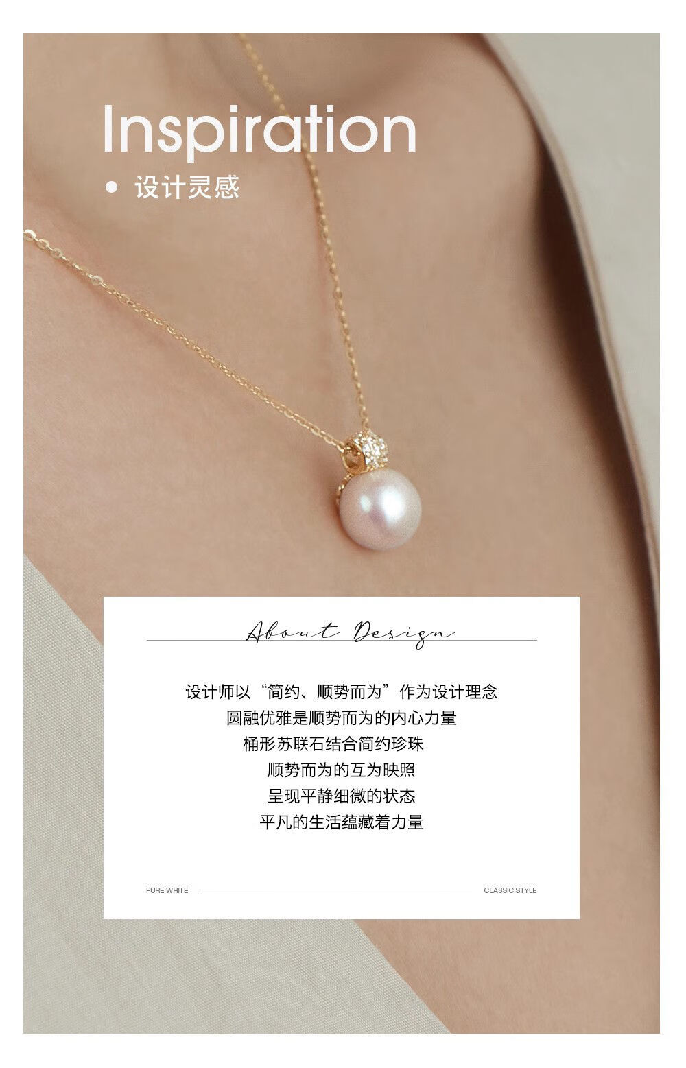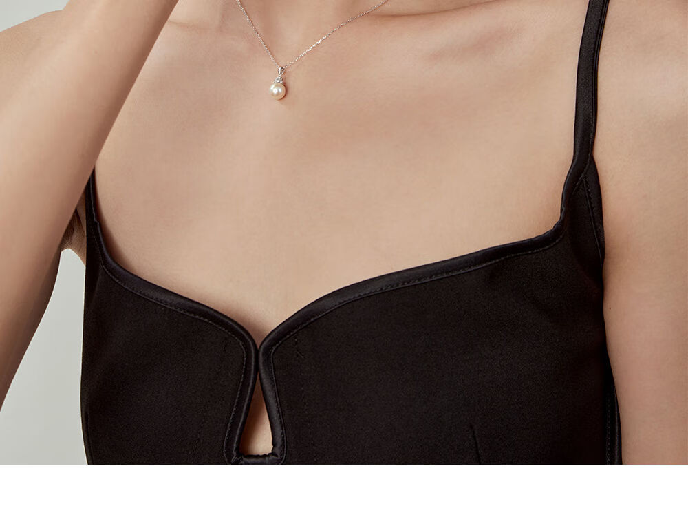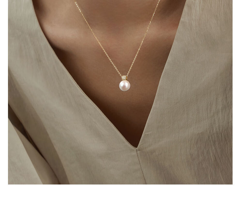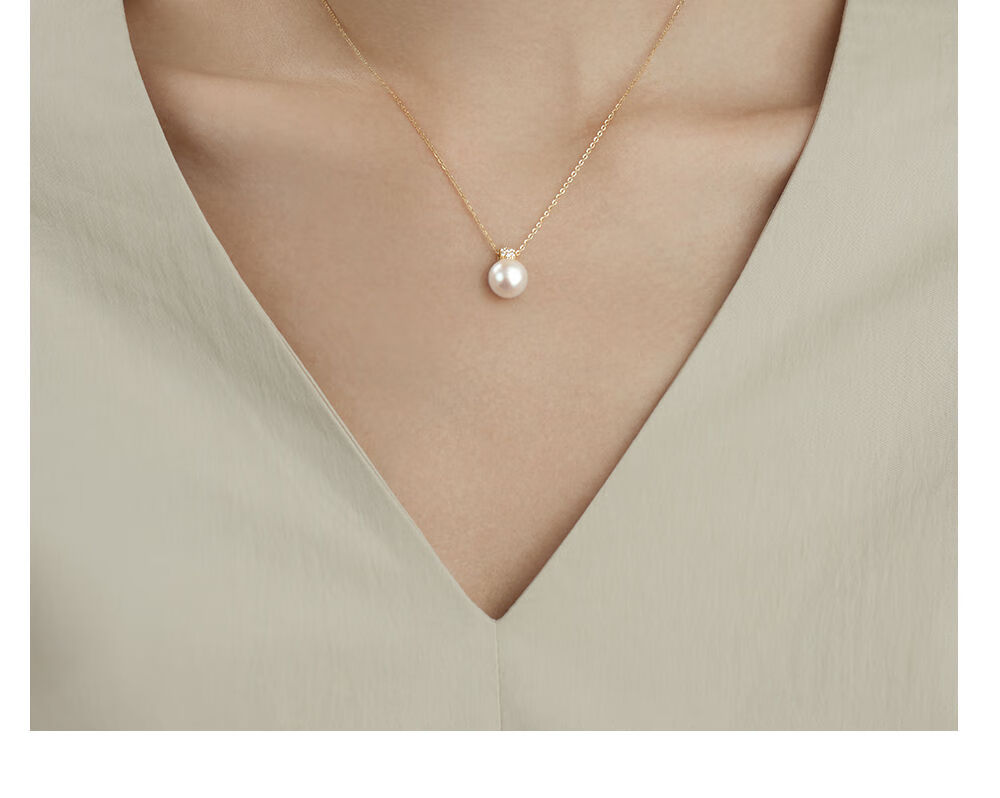 Two snow HUSSAIN blended natural freshwater pearl necklace for Princess Diana, light luxury clavicle chain single pendant necklace, white gold + 9.5-10mm natural freshwater pearl