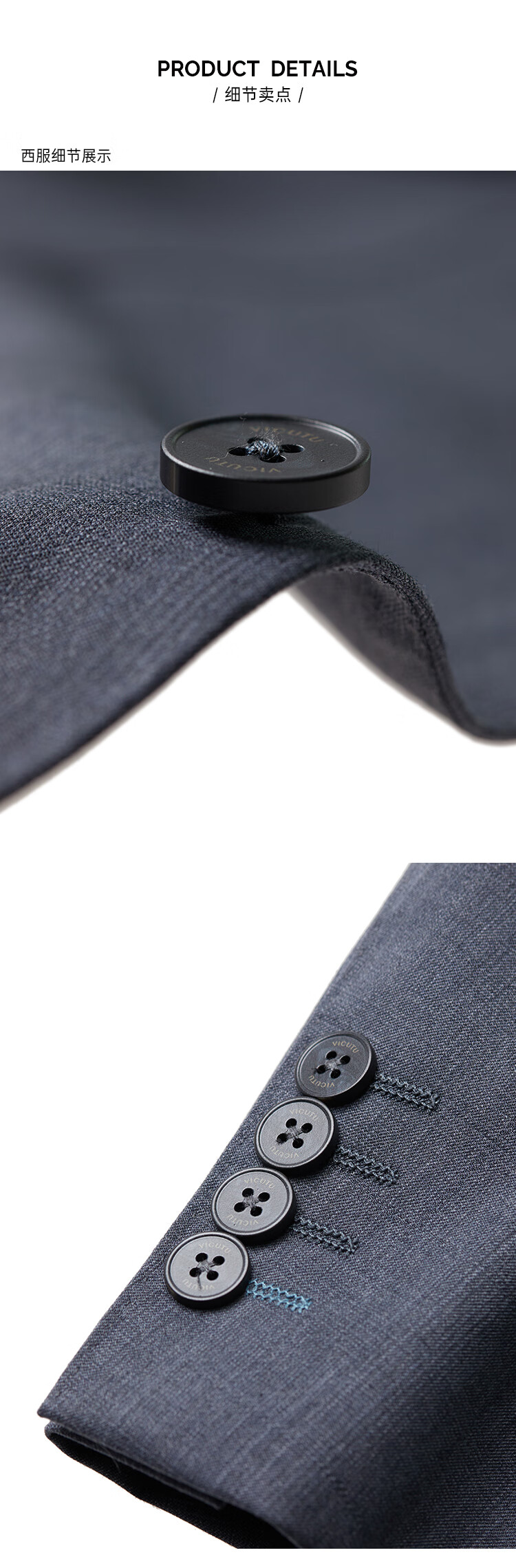 VICUTU suit men's spring new comfortable business casual versatile suit gray blue 170B (suit)