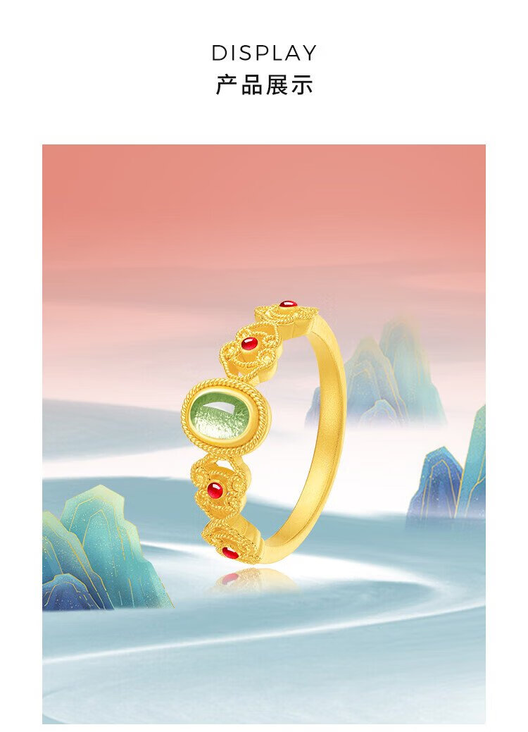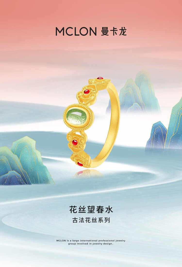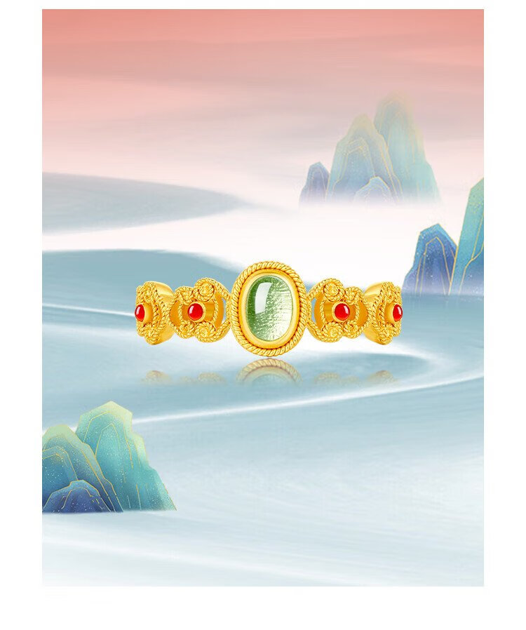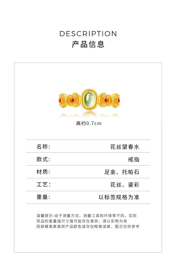 Mankalong gold ring for women, filigree Fenghua, spring water topaz enamel, ancient pure gold birthday gift for girlfriend No. 15 (including labor cost 219 yuan/g) 4.86g