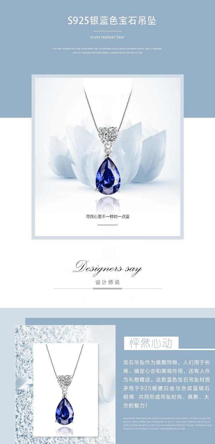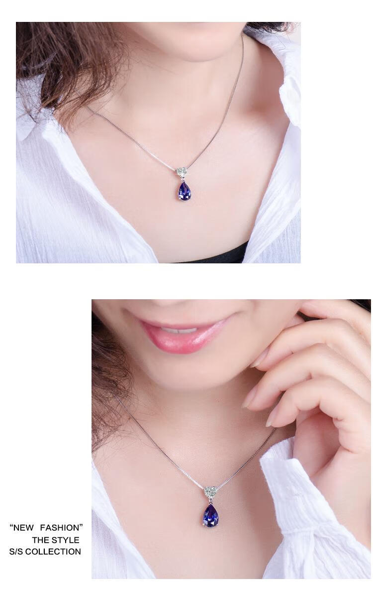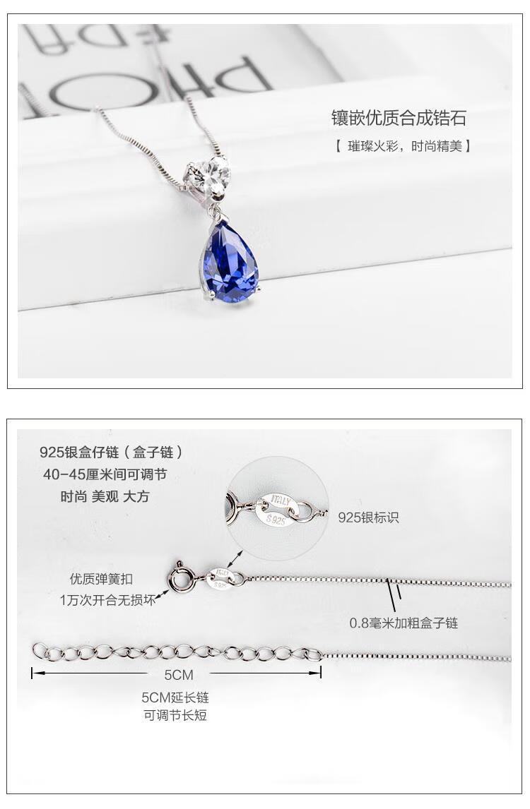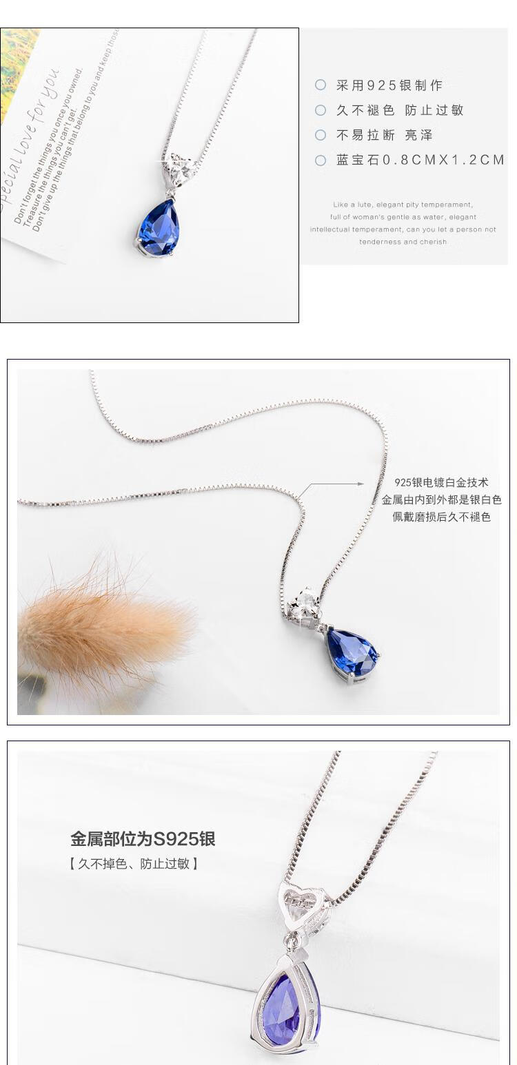 Kuang Yi sapphire necklace 925 silver heart-shaped water drop gemstone necklace clavicle chain women's tanzanite sapphire pendant 925 sterling silver platinum-plated pendant free 925 silver necklace