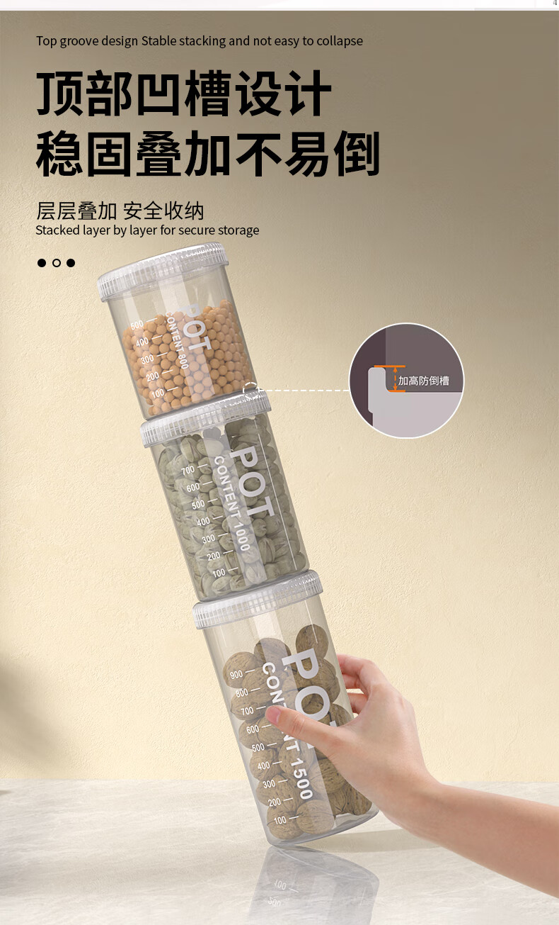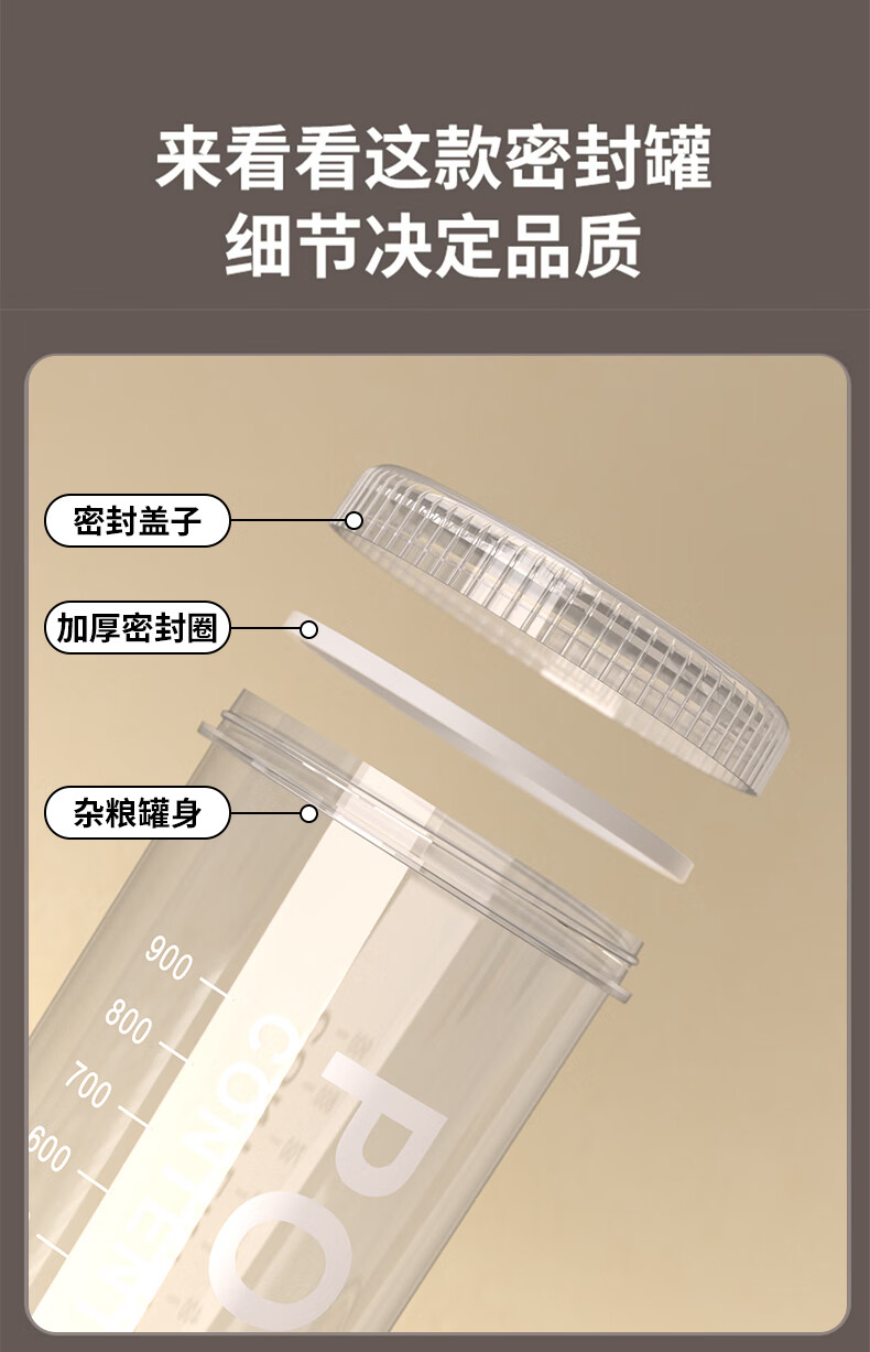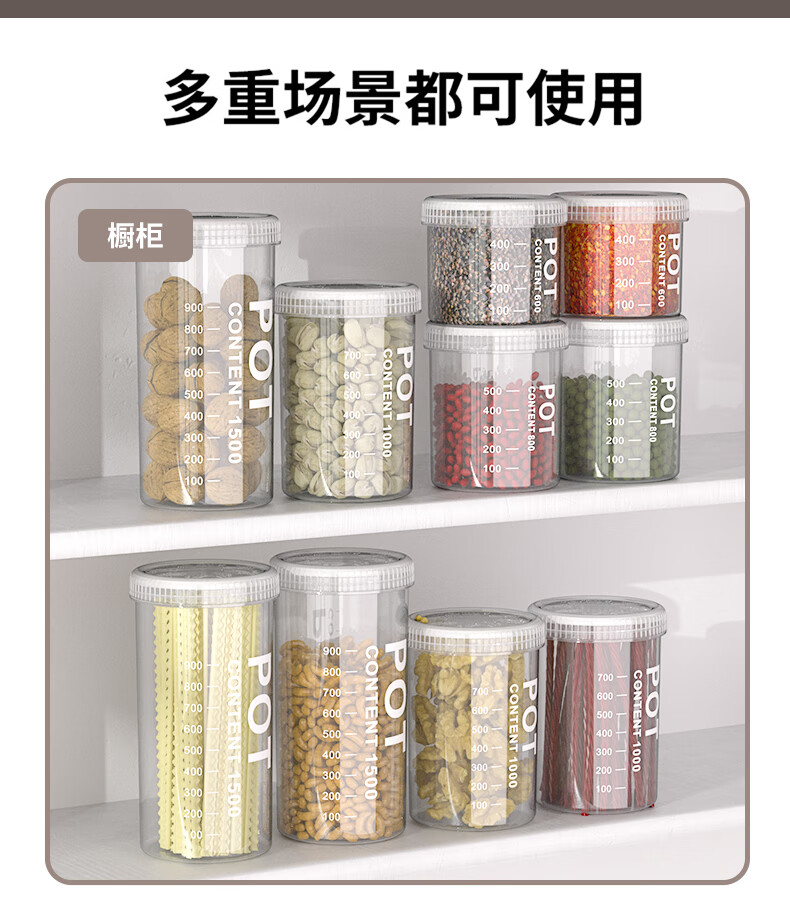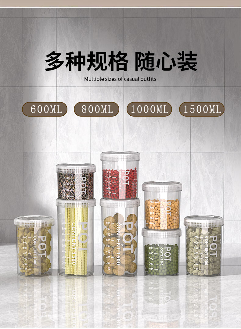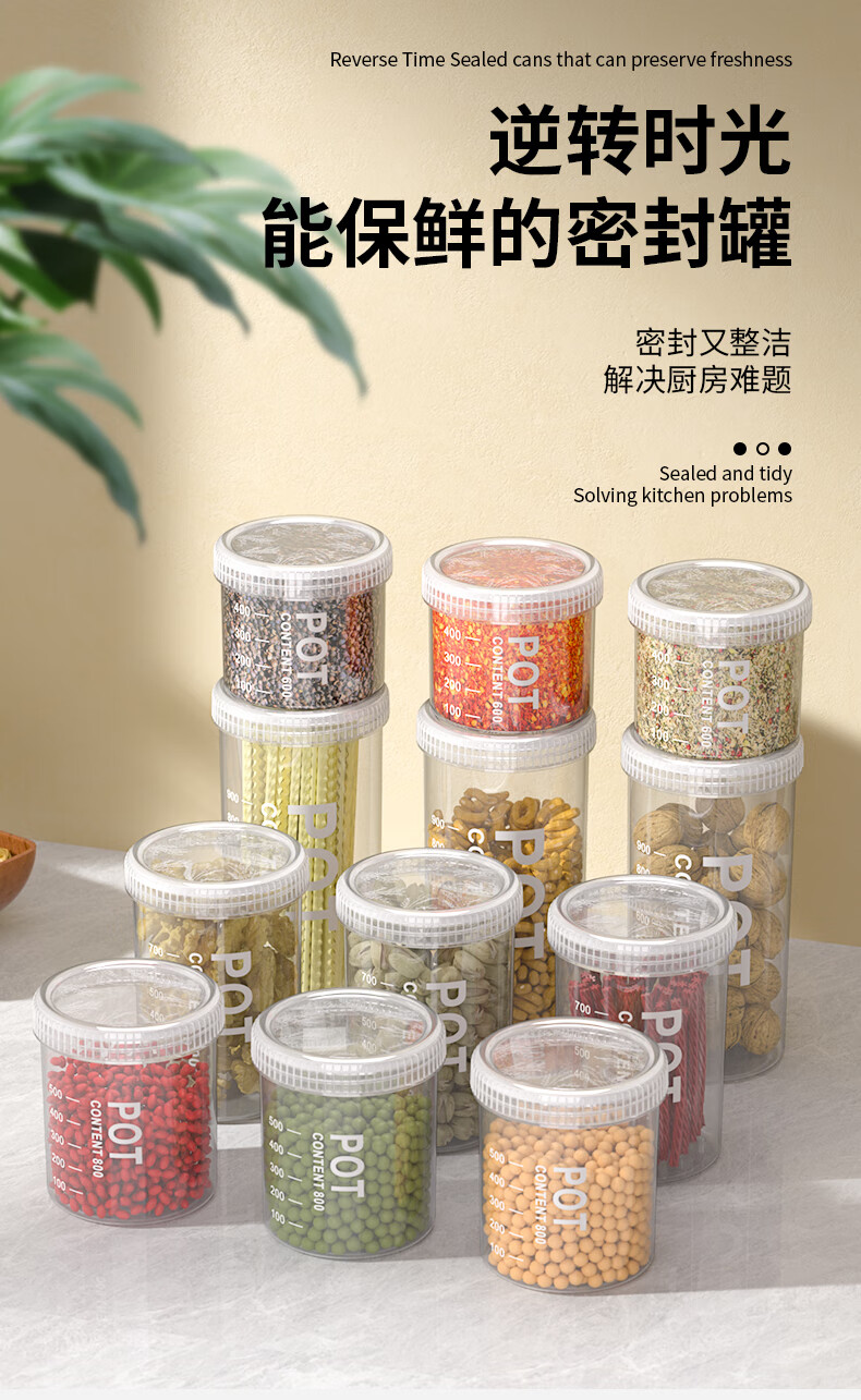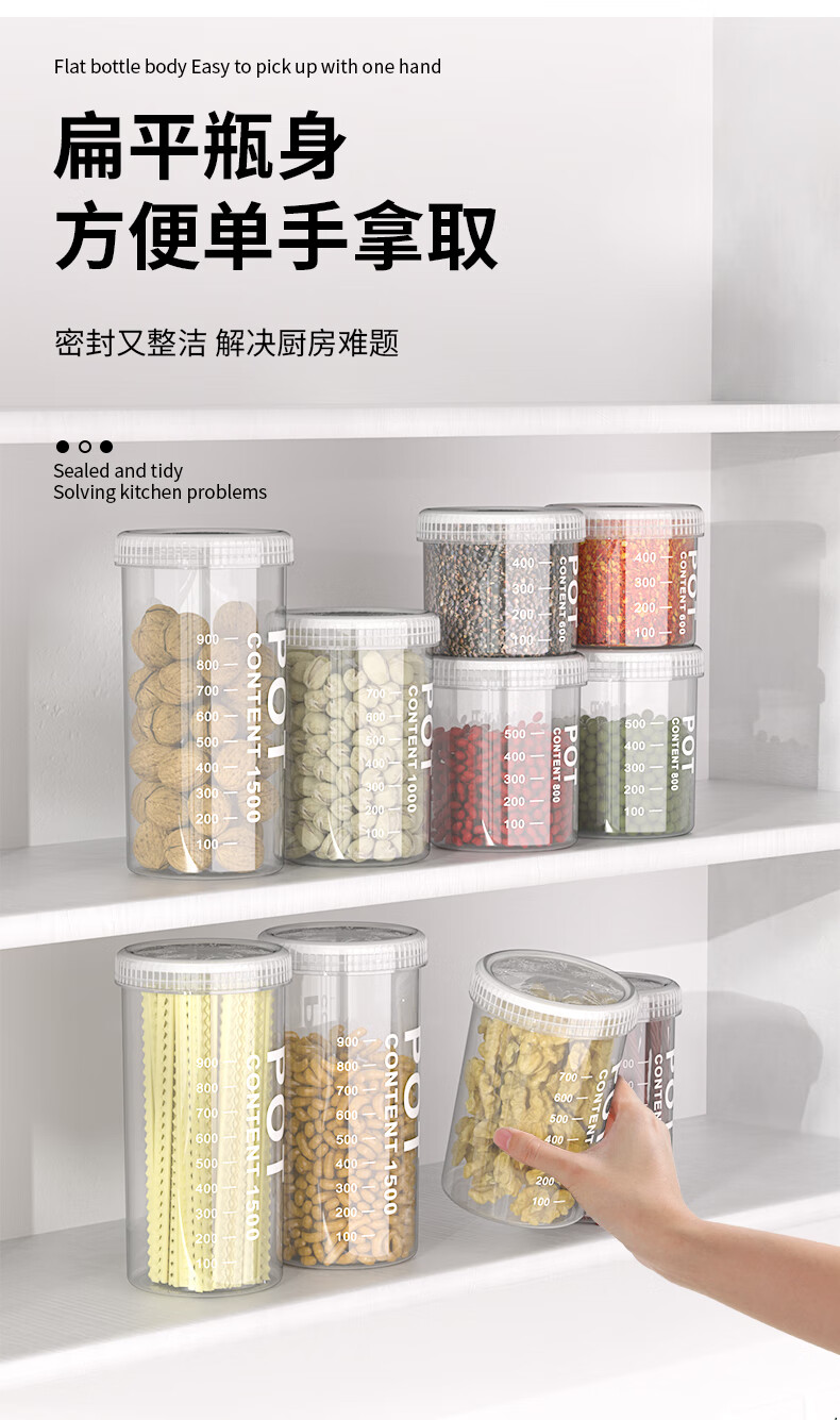 Xincong sealed jar food-grade storage box transparent plastic kitchen spices beans nuts grains storage jar medium size 800ml 5 pieces
