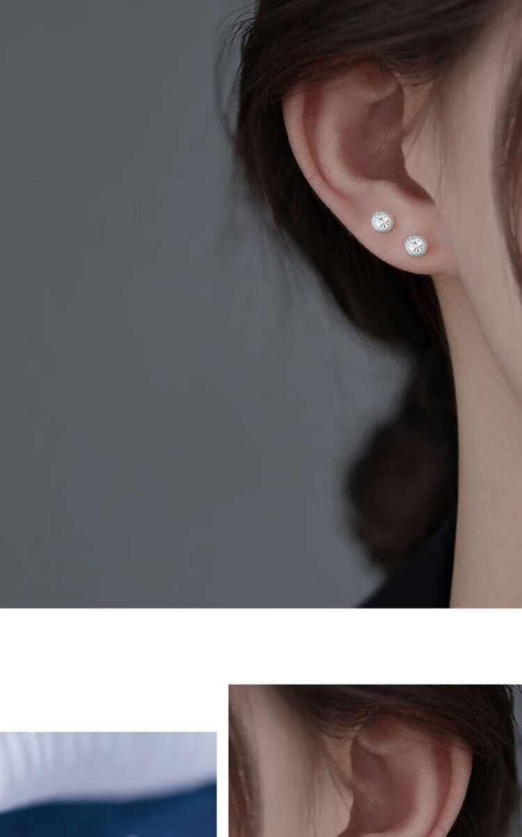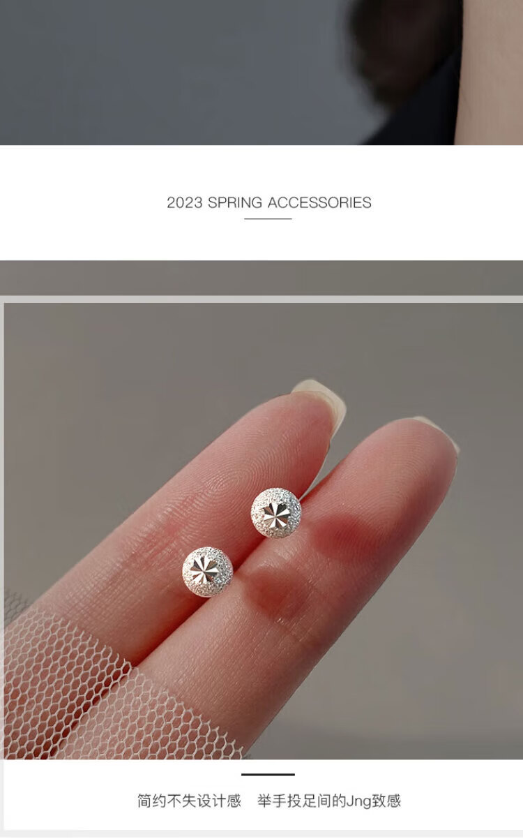 Xinshe 999 sterling silver frosted earrings for women, anti-clogging ear piercing earrings, washable and sleep-free, ear bone nails, simple and high-end earrings, 999 pure silver earrings, one pair