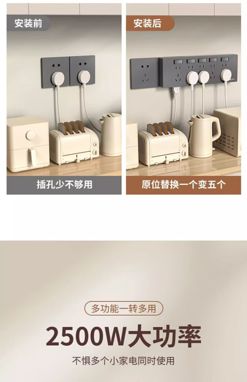 Bull (BULL) same electrical appliance electrician 86 type expansion socket 35 hole kitchen expansion multi-functional multi-hole converter track without snow white left expansion 19 hole with switch wiring in