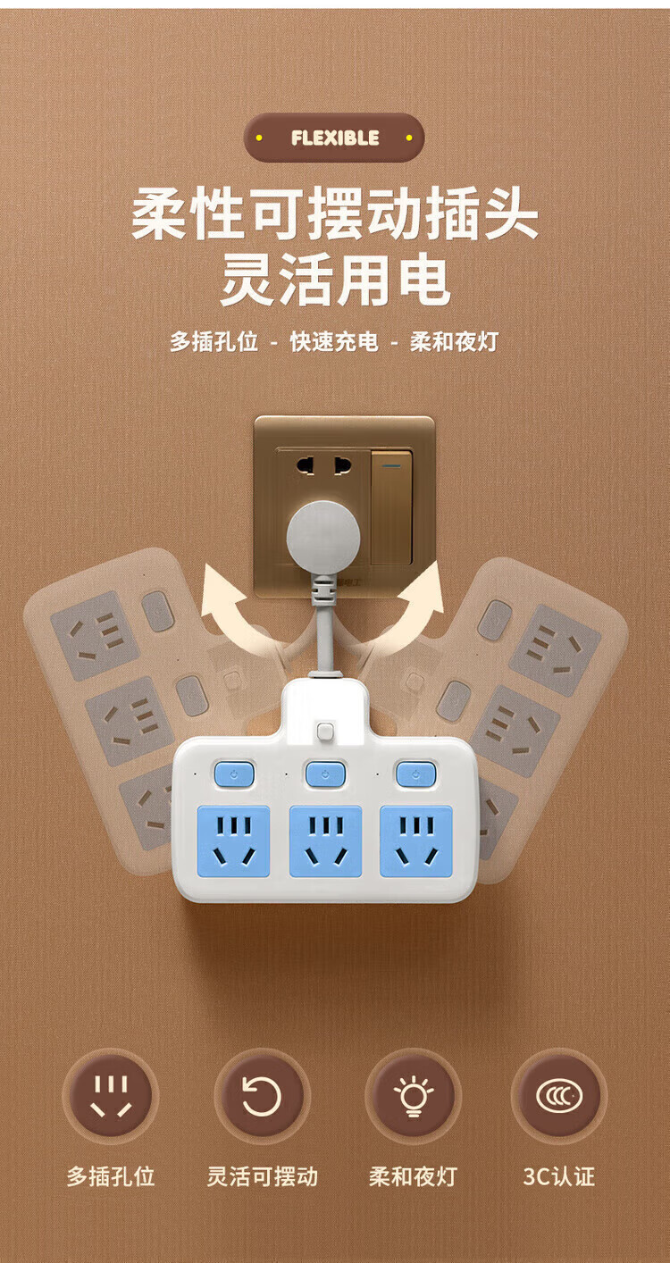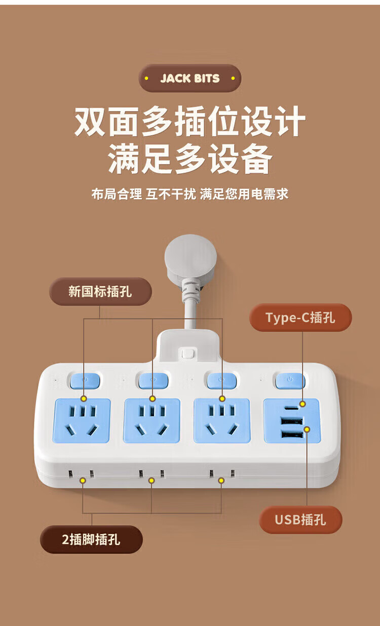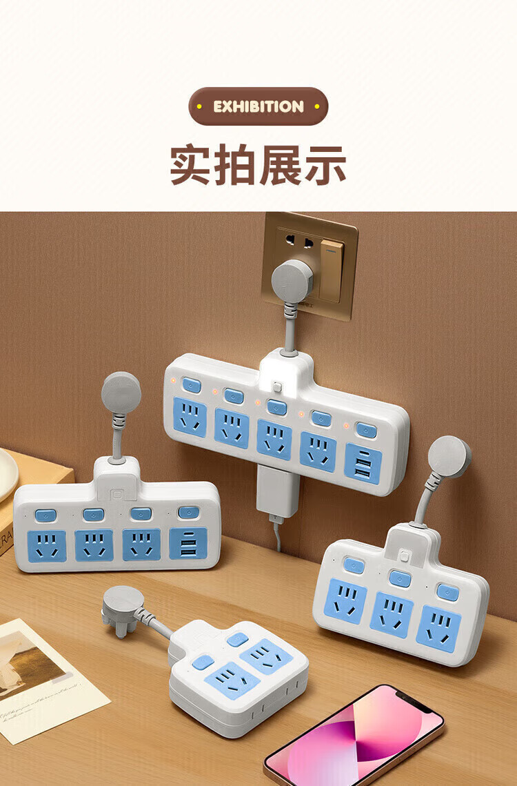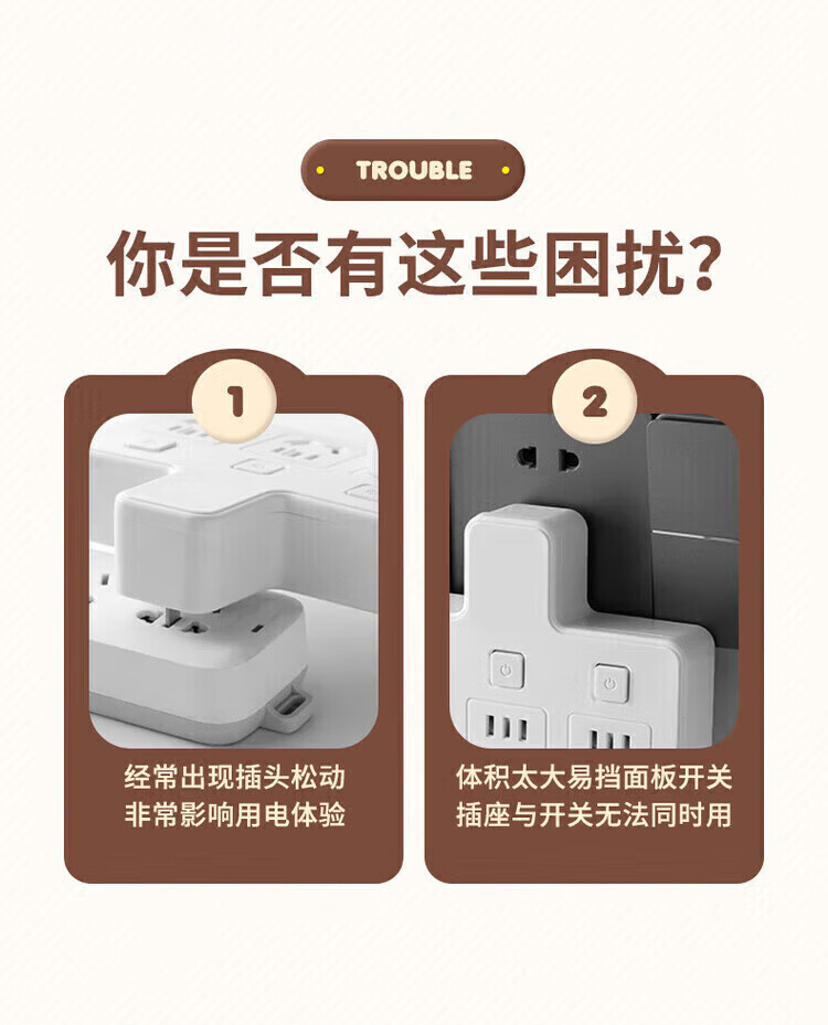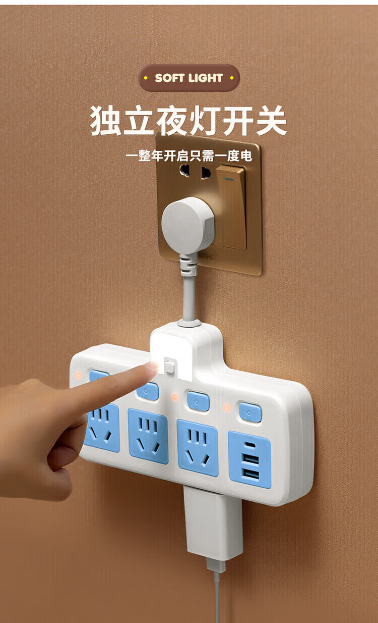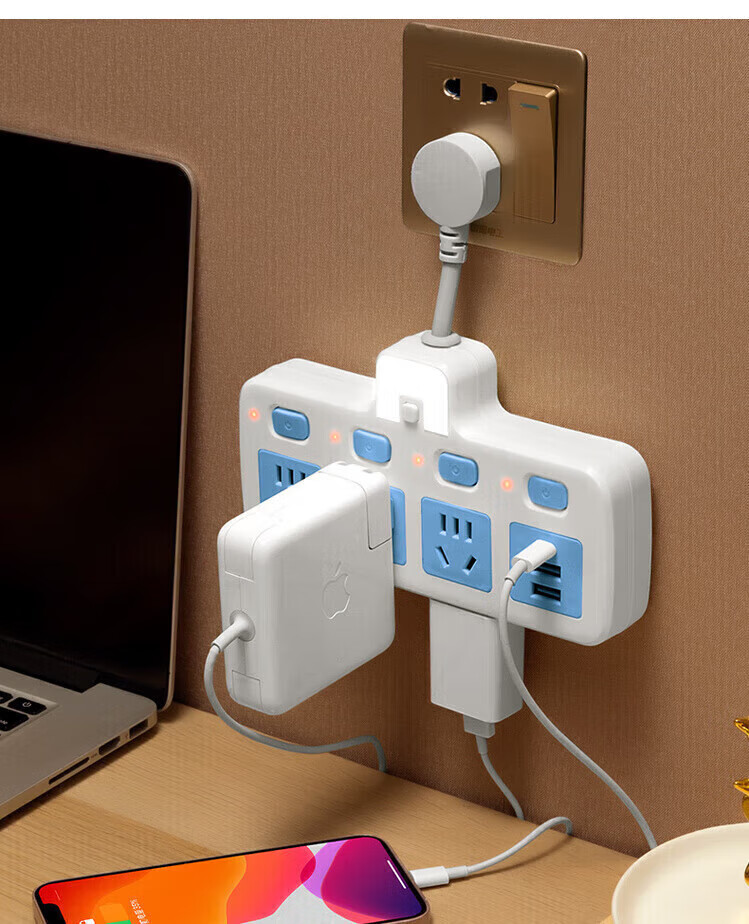 Bull (BULL) same style socket converter panel multi-hole expansion plug one to three independent switch row plug board skewer socket plug board ordinary 180 degrees pure white
