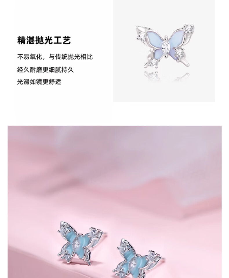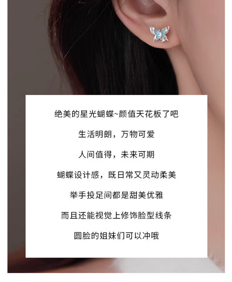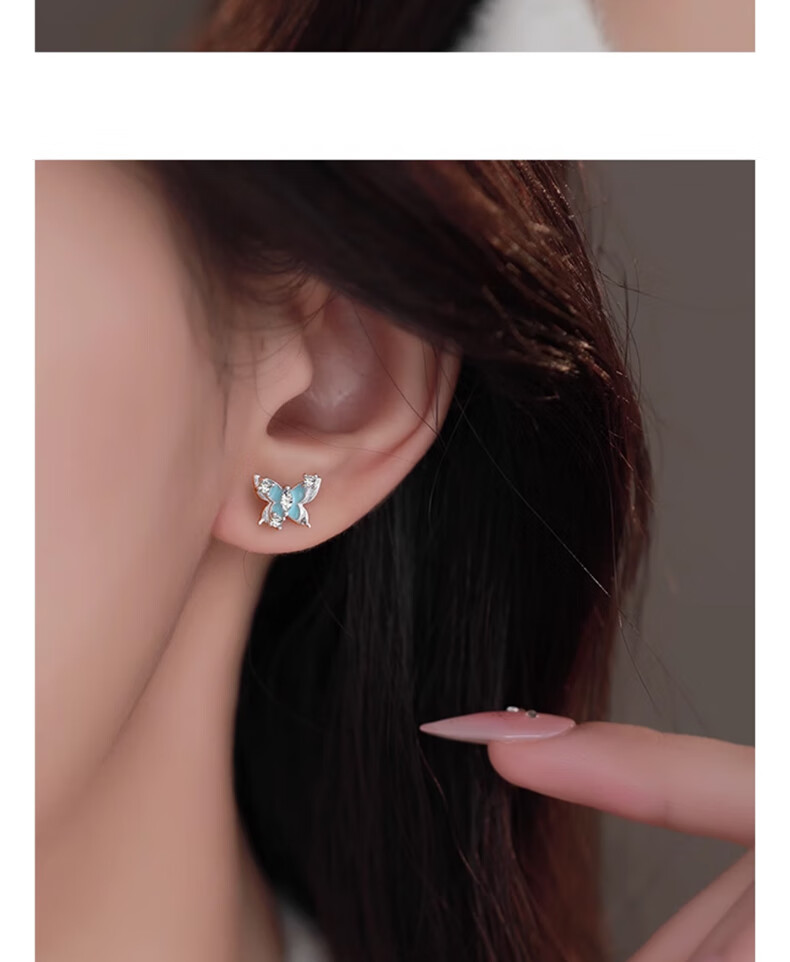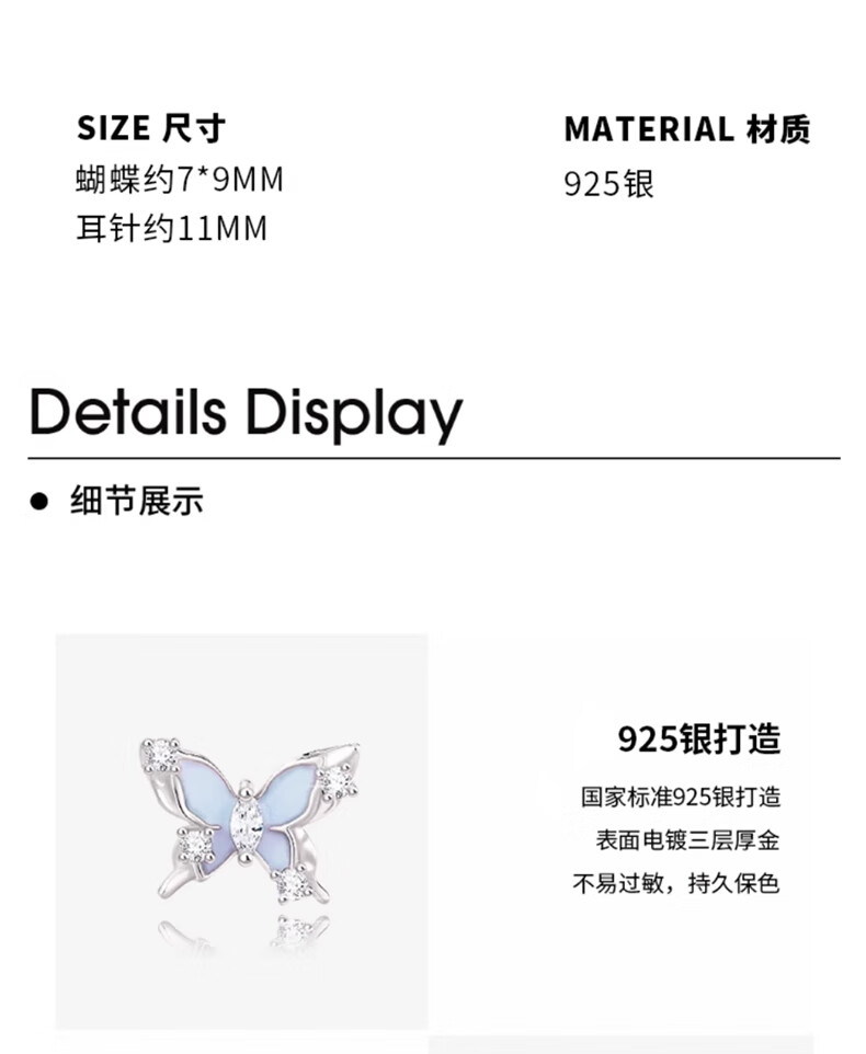 Xinshe 925 Sterling Silver Starlight Butterfly Earrings Women's Enamel Earrings Light Luxury Niche 2025 New Earrings for Ear Holes Starlight Butterfly 925 Silver