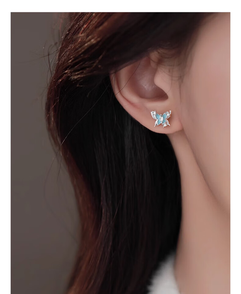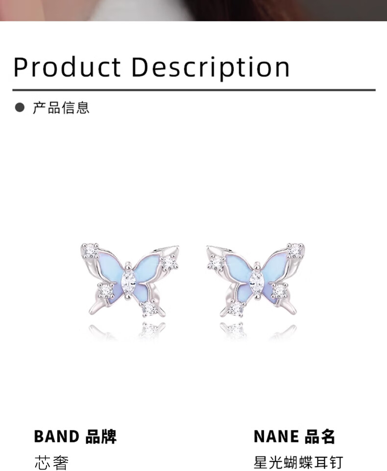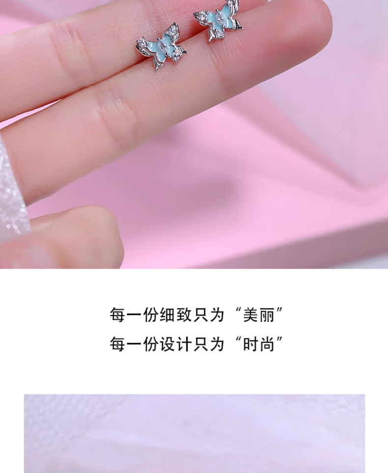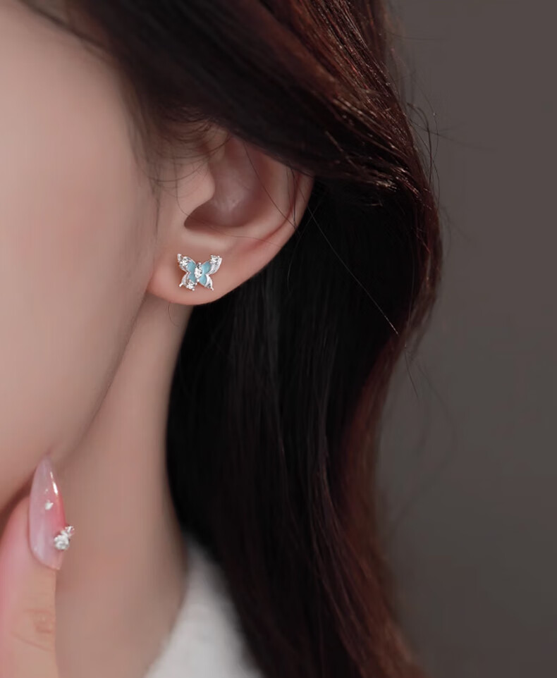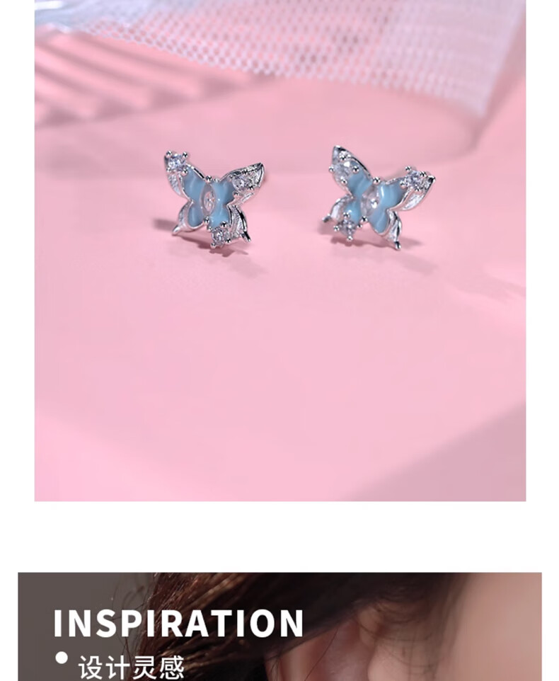 Xinshe 925 Sterling Silver Starlight Butterfly Earrings Women's Enamel Earrings Light Luxury Niche 2025 New Earrings for Ear Holes Starlight Butterfly 925 Silver