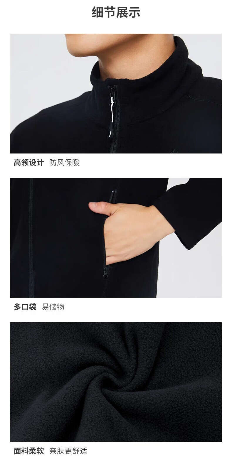 DECATHLON Warm Outdoor Fleece Jacket Men's and Women's Sports Loose Autumn Polar Fleece Jacket Jacket Liner Men's - Half Zipper - Black L