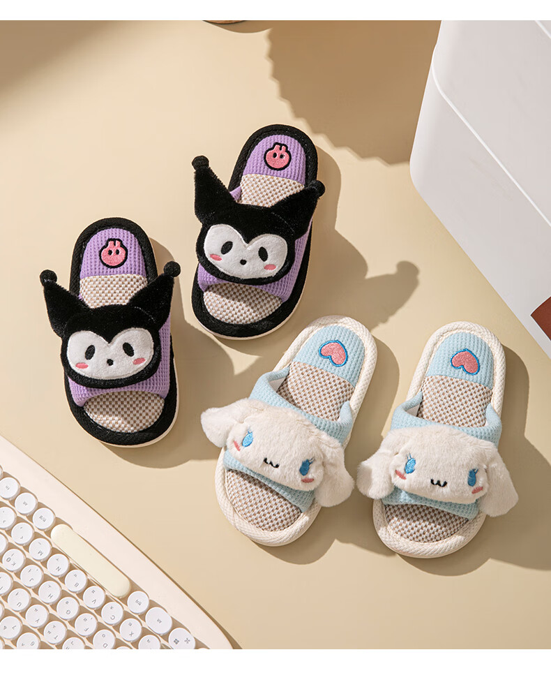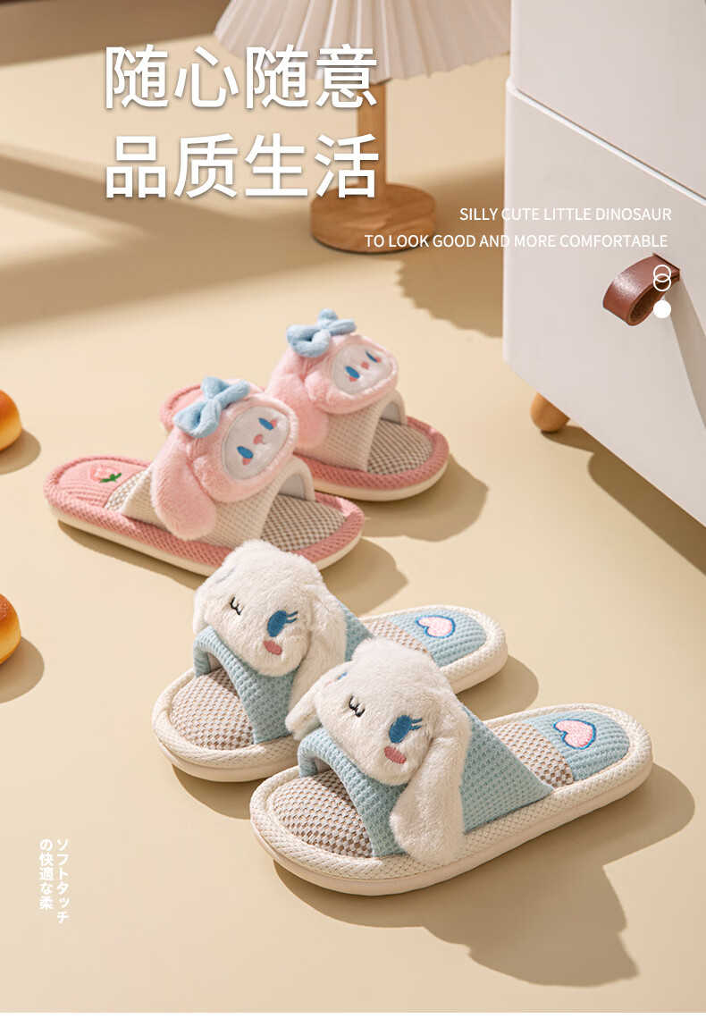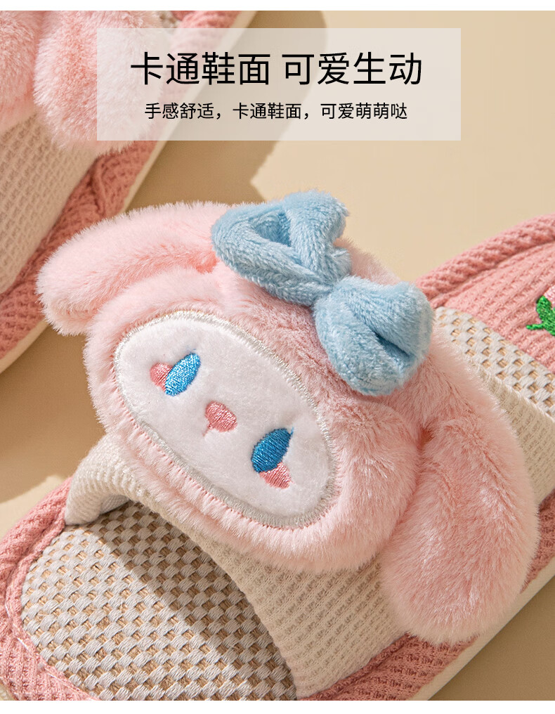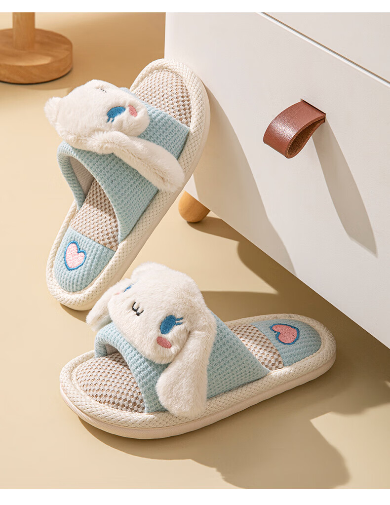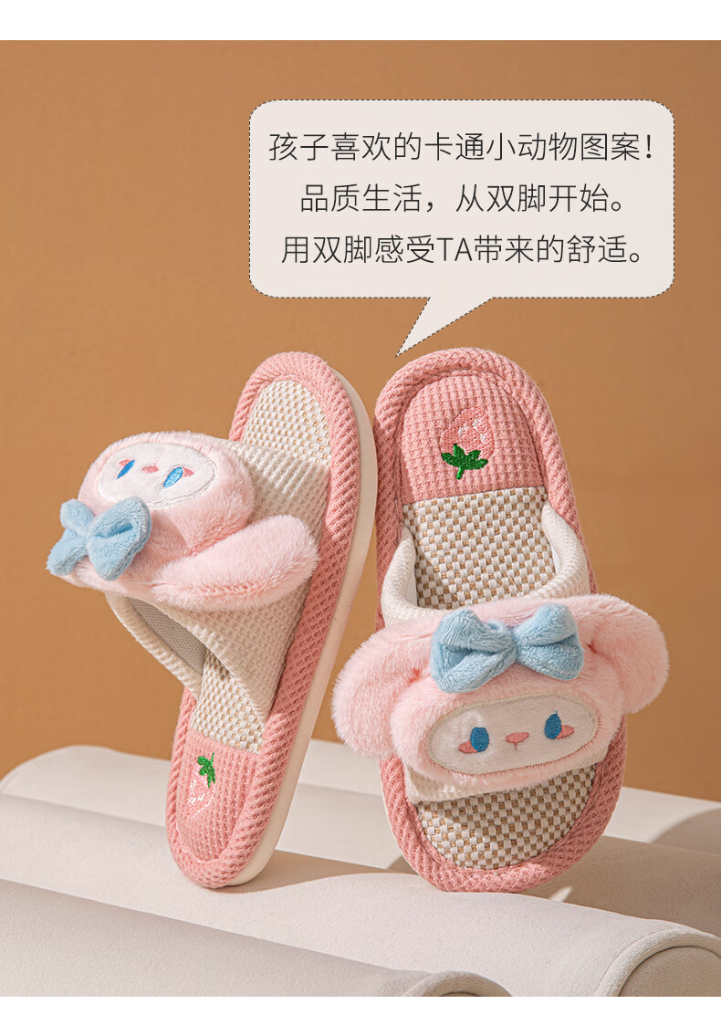 Robot Pig Spring and Autumn Children's Linen Slippers Girls' Cute Home Non-Slip Cotton and Linen Baby Slippers for Middle and Large Children Little Girls Blue 26-27 Sizes Inner Length 17cm