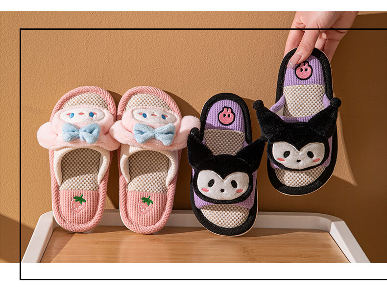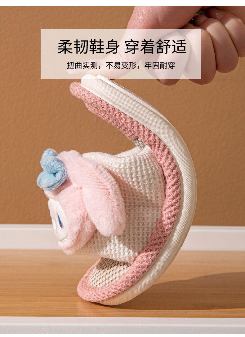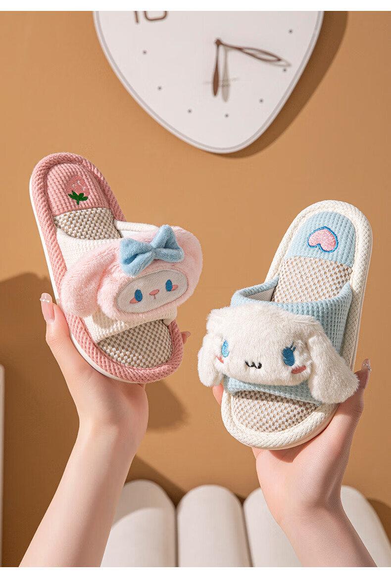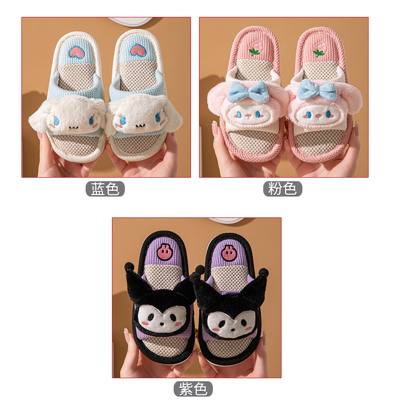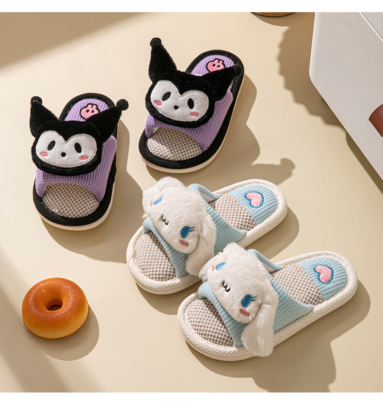 Robot Pig Spring and Autumn Children's Linen Slippers Girls' Cute Home Non-Slip Cotton and Linen Baby Slippers for Middle and Large Children Little Girls Blue 26-27 Sizes Inner Length 17cm