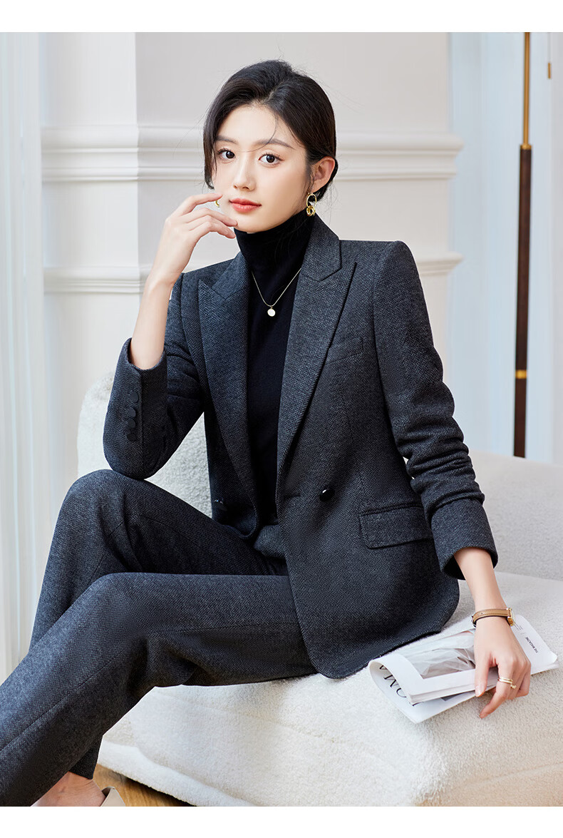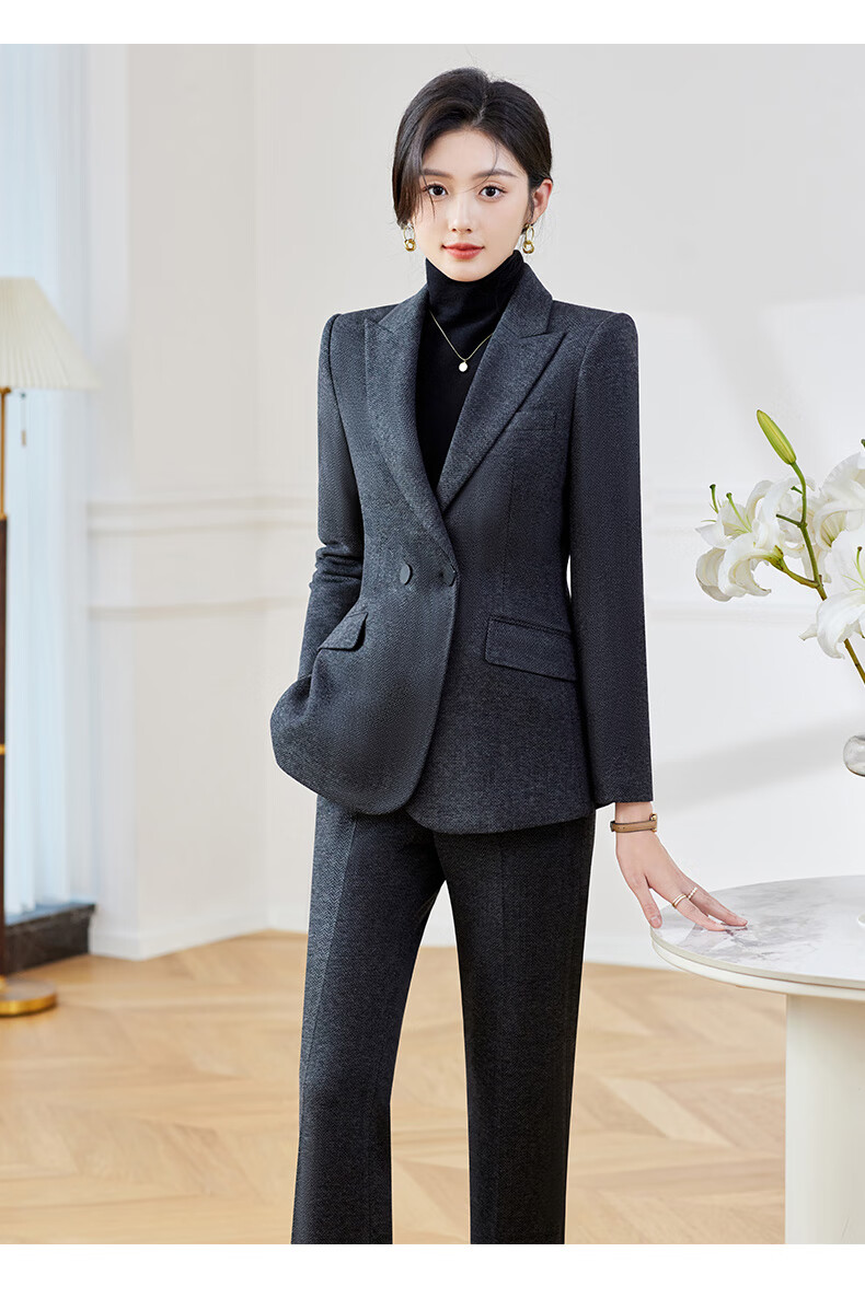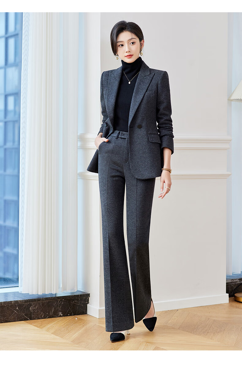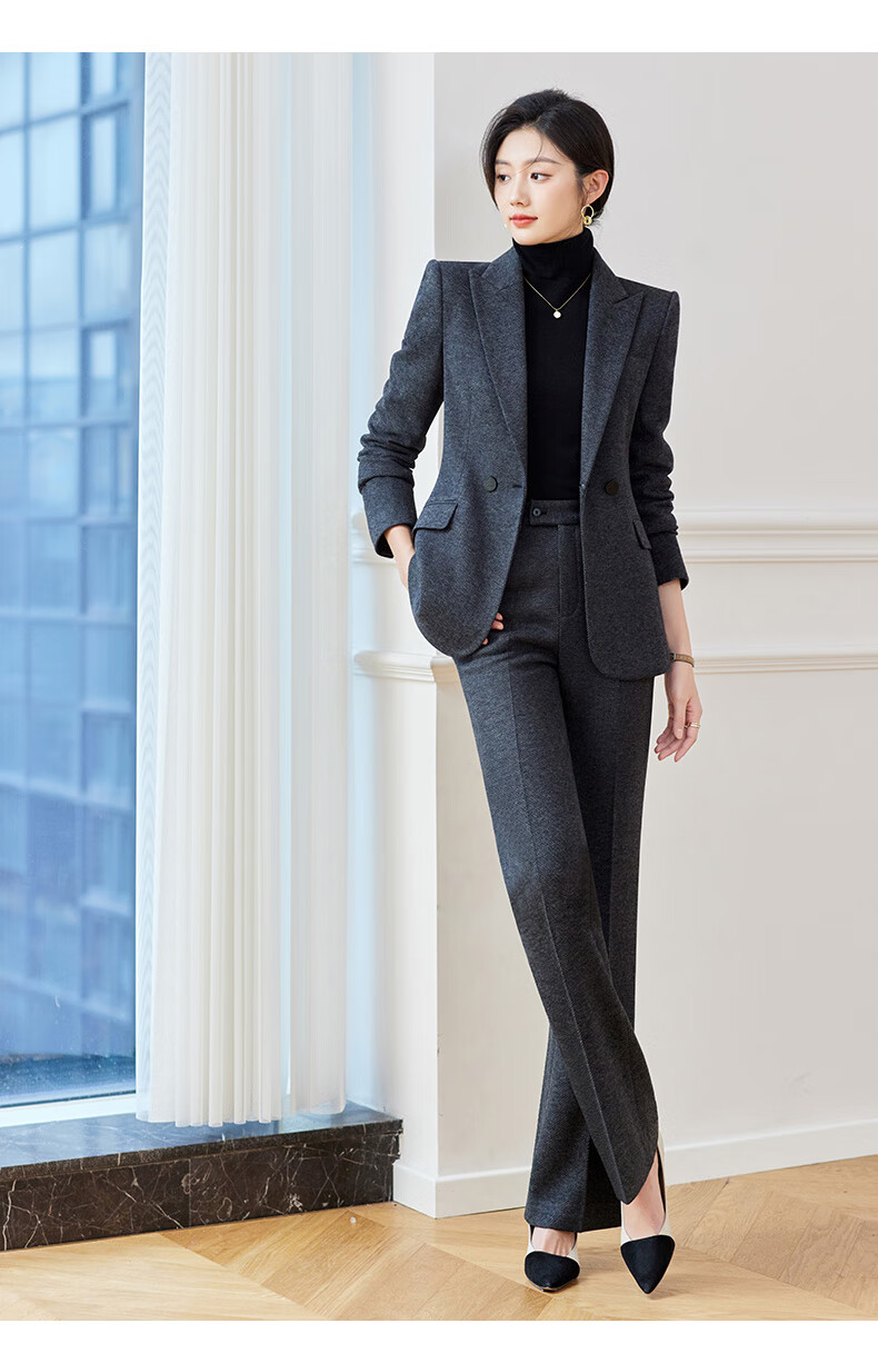 Shiluya (SHILUYA) Spring, Autumn and Winter Suit Women's Thickened Goddess Style Professional Manager Formal Wear High-End Wool Suit Jacket Dark Gray Suit + Micro-Boot Pants (Woolen Winter Style Thickened L (Recommended 109-120)
