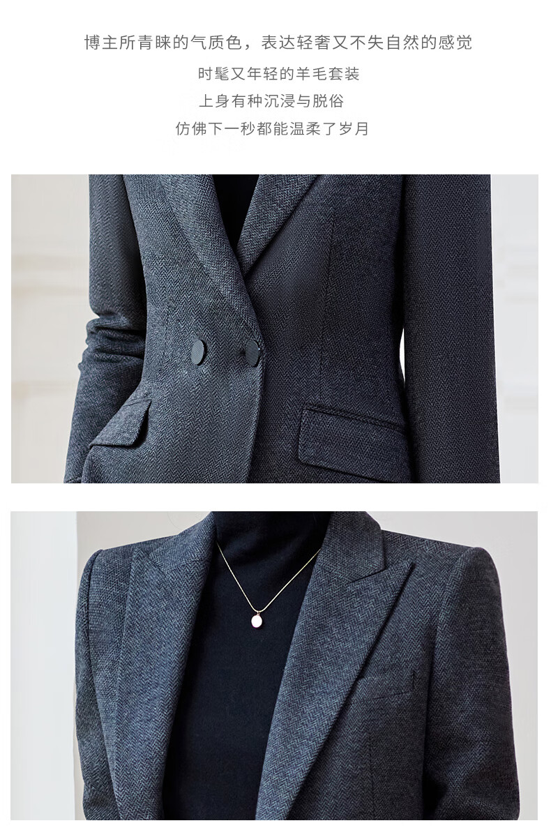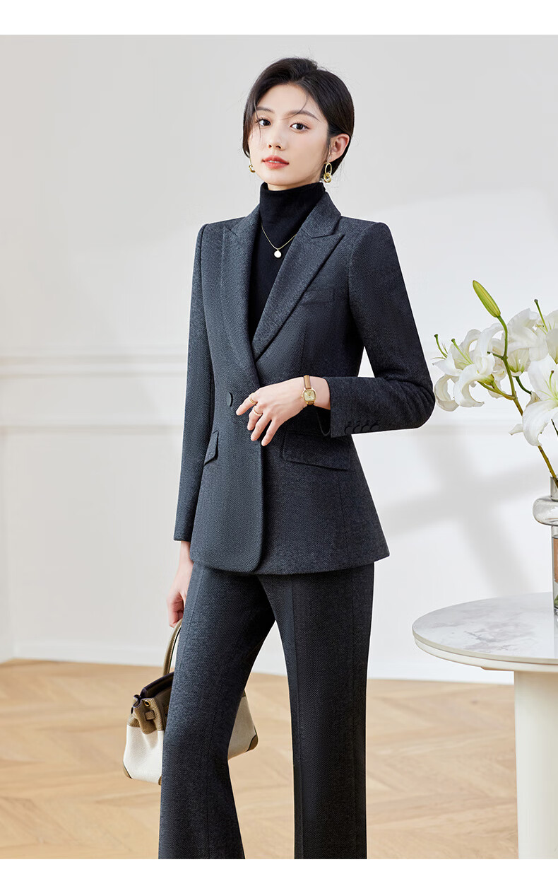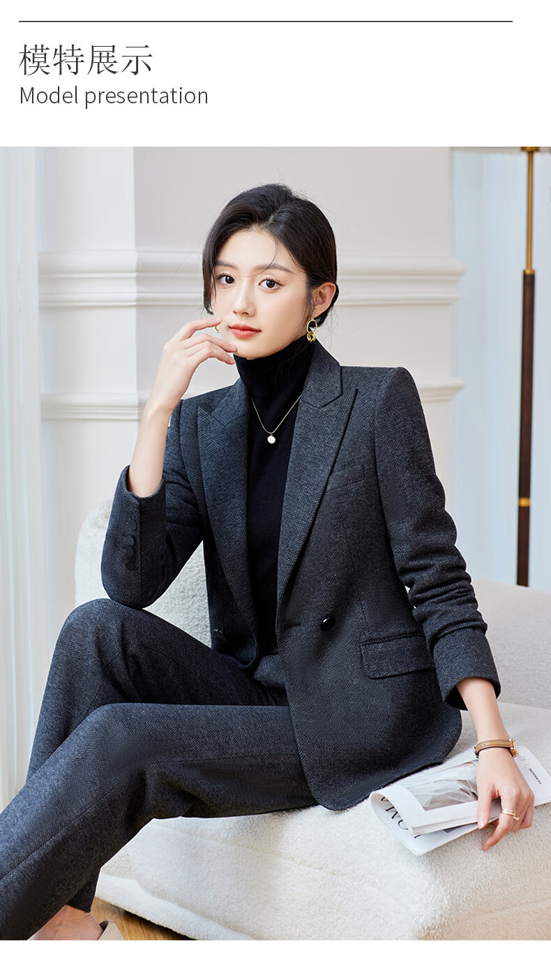 Shiluya (SHILUYA) Spring, Autumn and Winter Suit Women's Thickened Goddess Style Professional Manager Formal Wear High-End Wool Suit Jacket Dark Gray Suit + Micro-Boot Pants (Woolen Winter Style Thickened L (Recommended 109-120)
