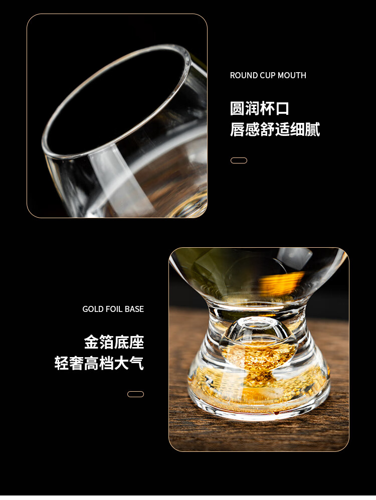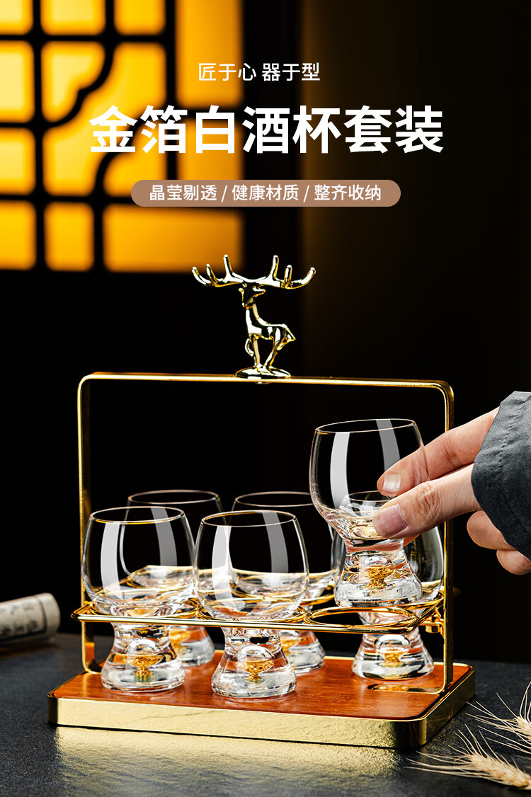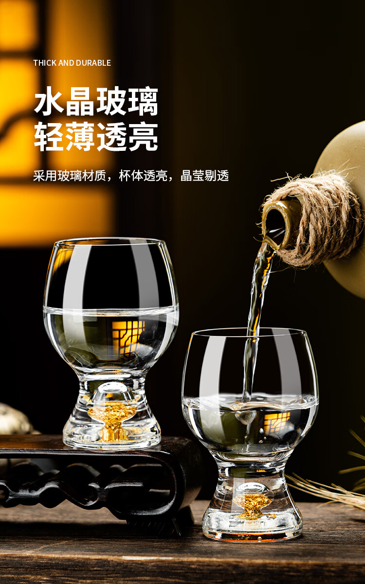 Yibojia Creative Crystal Two-Liang White Wine Glass Light Luxury High-end Home Wine Set Western Wine Beer Small Wine Cup Chinese Wine Cup Gold Foil General Cup Single-100ml