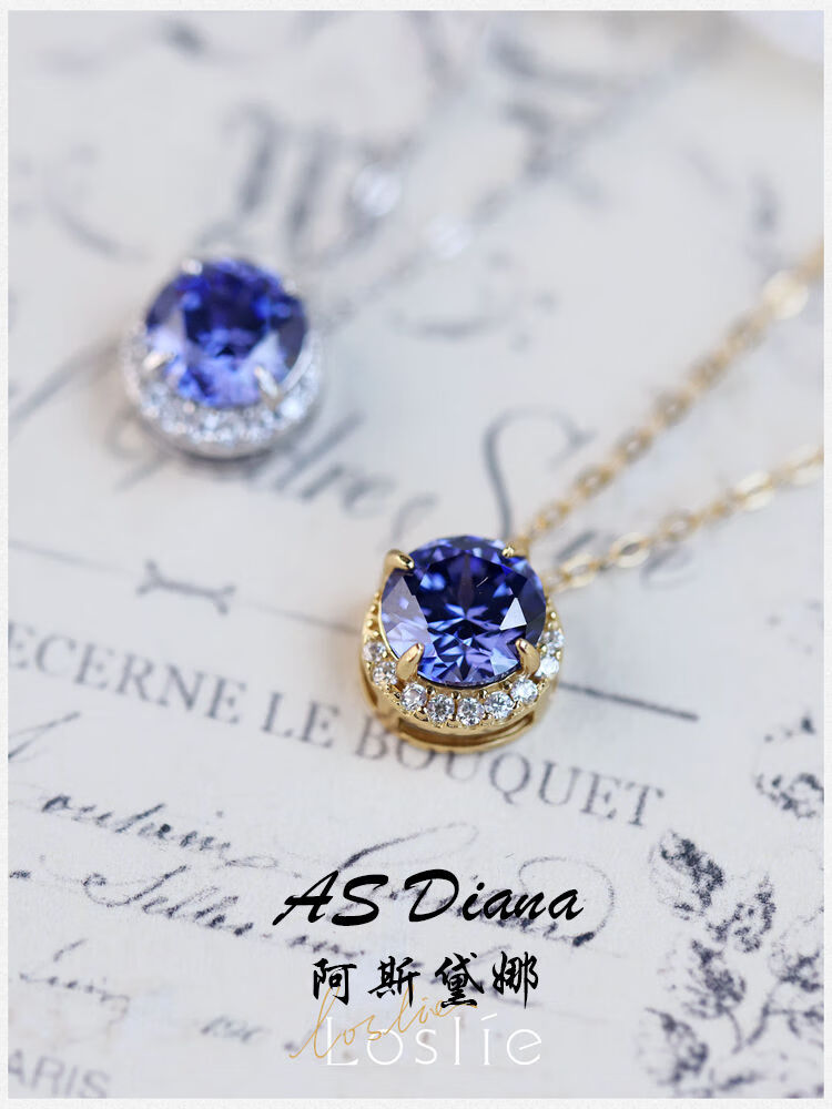 Hunter Japanese agete Akado natural tanzanite necklace women's light luxury retro amethyst 18K gold birthstone pendant amethyst tanzanite necklace