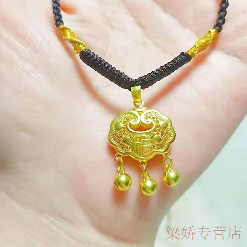 GRAYCEWODY Old Phoenix 999 Gold Peace Lock Pendant Women's Fortune Longevity Lock Pendant Braided Black Rope Clavicle Necklace Niche Peace Lock Pendant With Rope Old Phoenix Gold Store Model