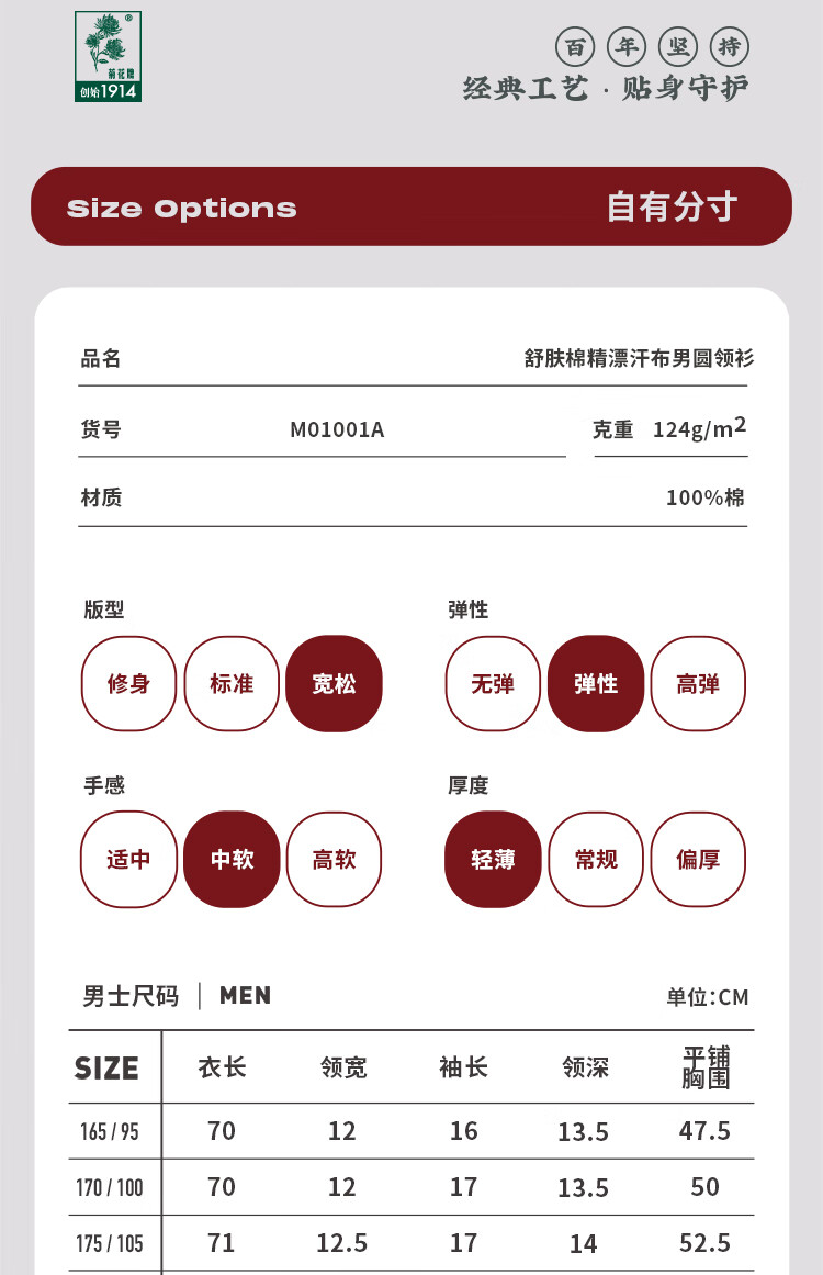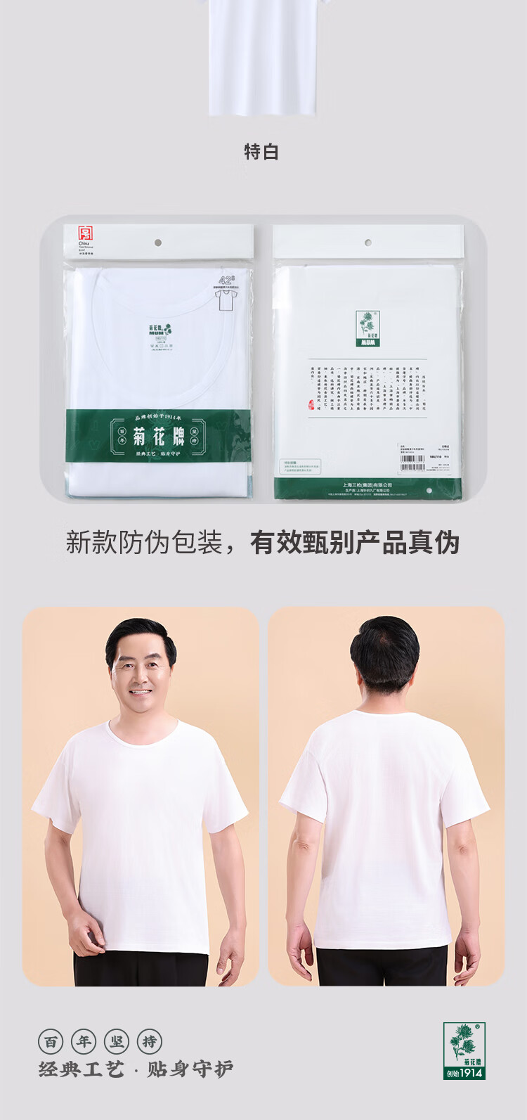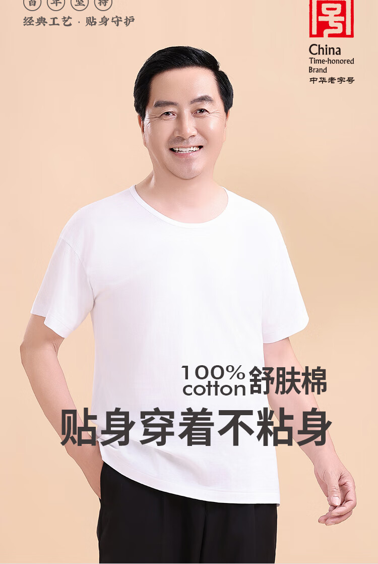 Chrysanthemum brand, a time-honored brand in China, 100% cotton, old man's shirt, classic bottoming, middle-aged and elderly men's loose-fitting sweatshirt, white, extra white, 180/110
