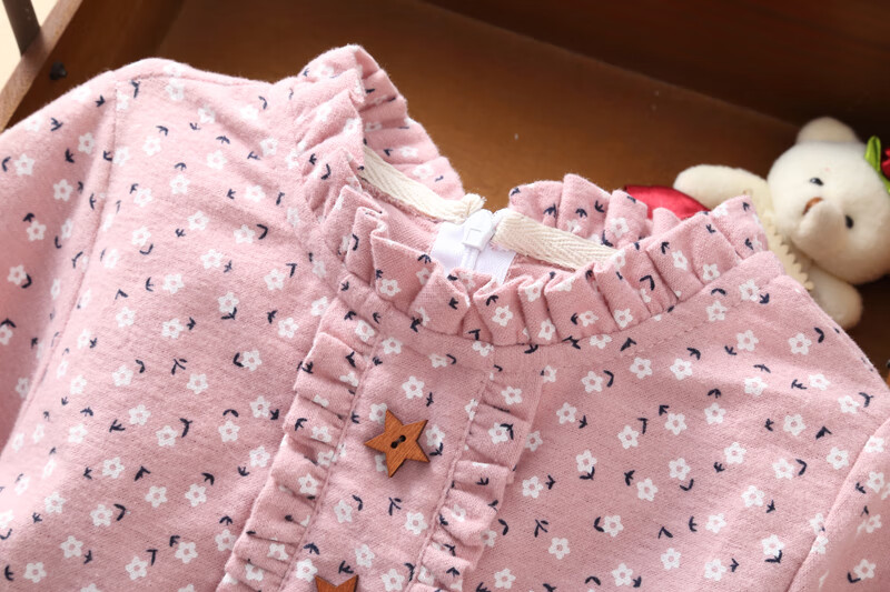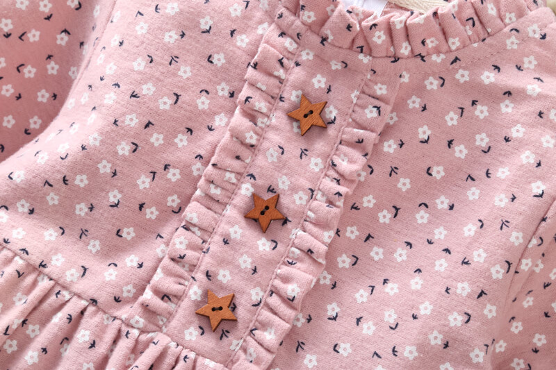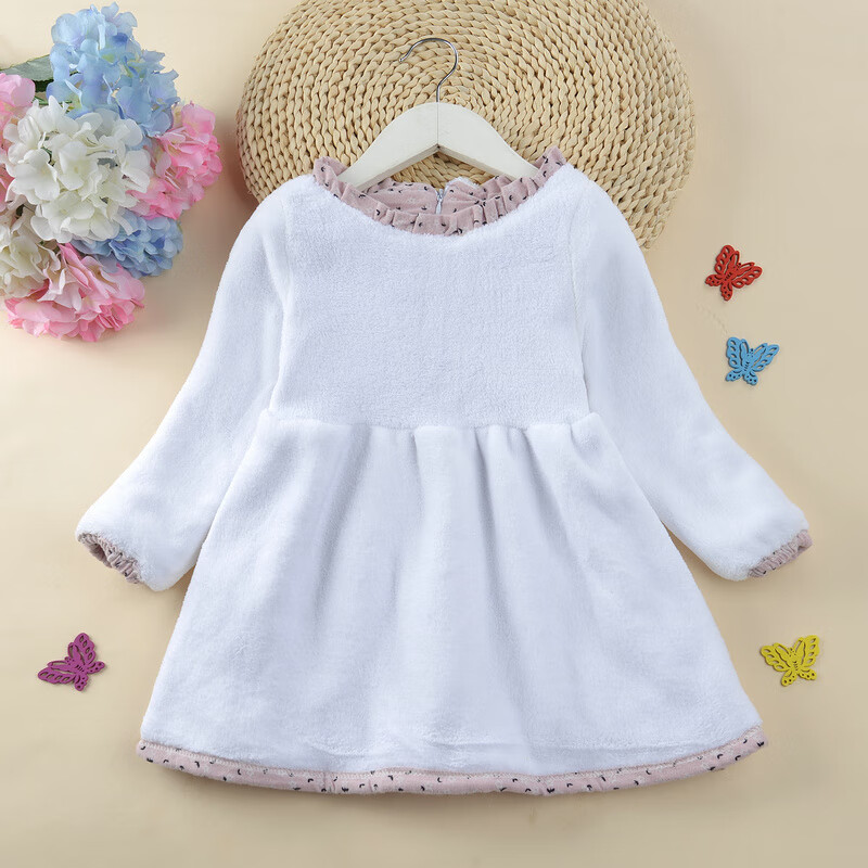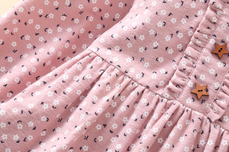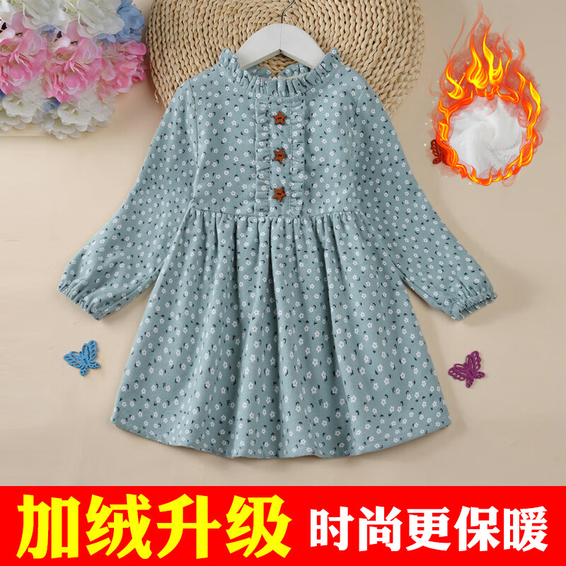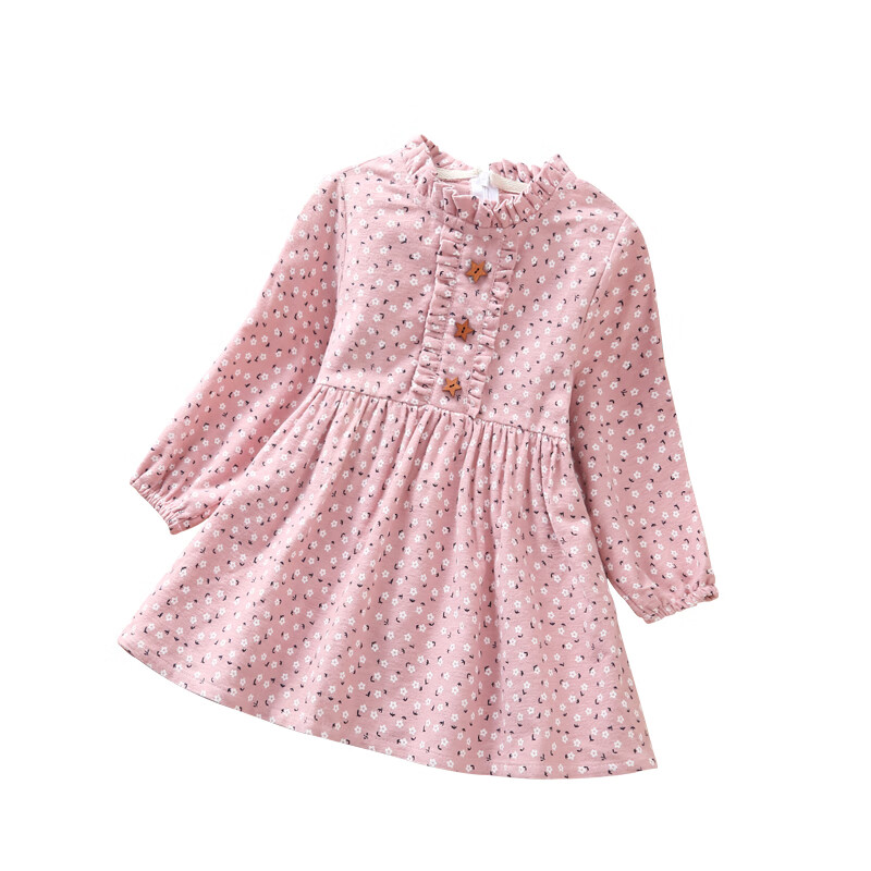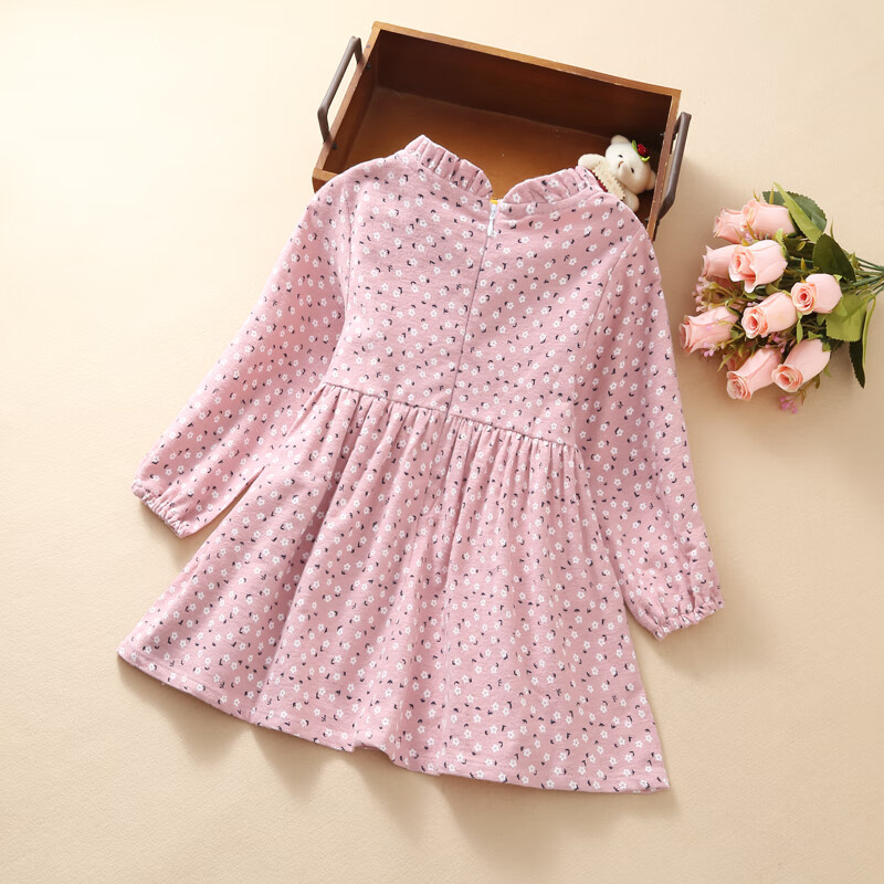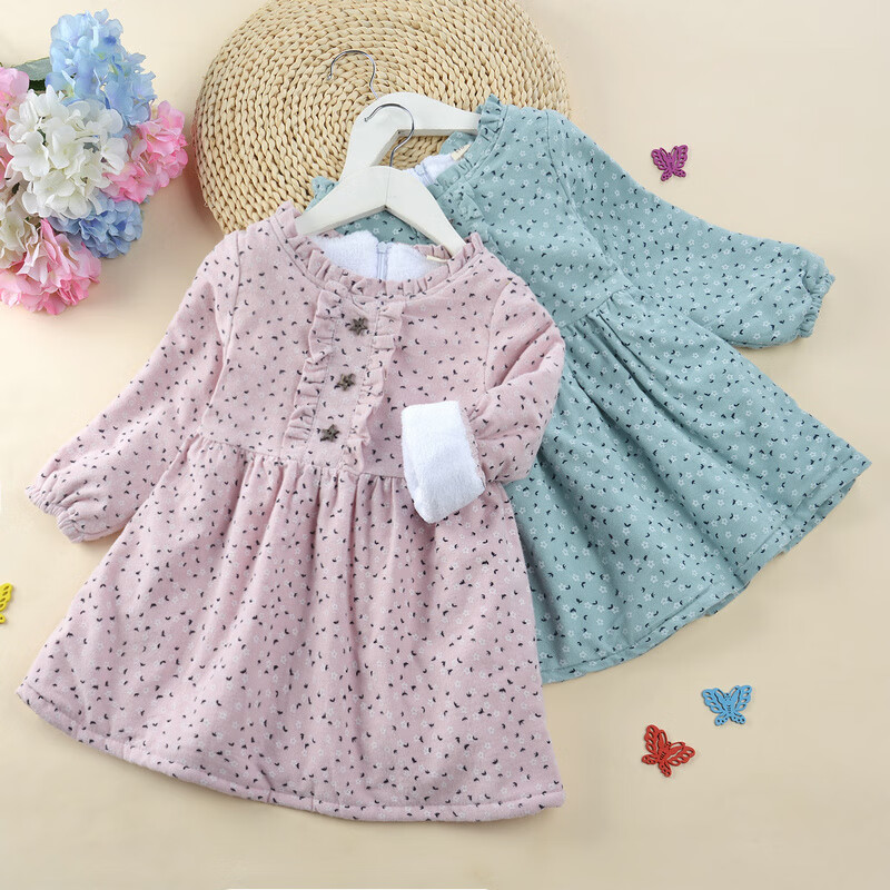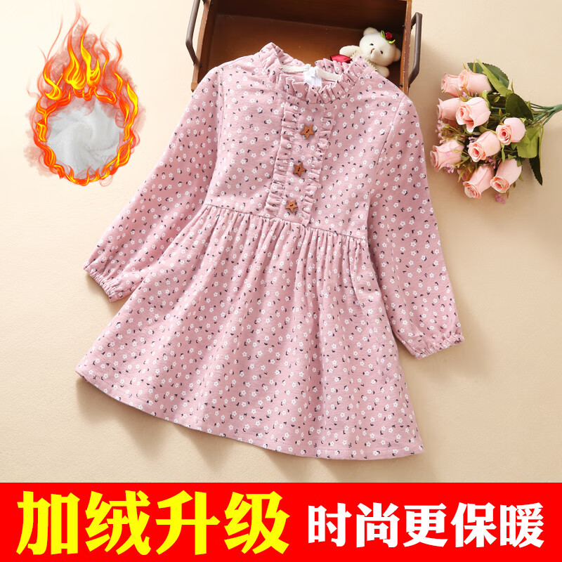 G.duck Girls Dress Children's Floral Skirt Spring Autumn Winter New Korean Style Long Sleeve Velvet Thickened Cotton Bottoming Skirt New Pink Wooden Button Spring Autumn 110 Recommended Height 100cm Suitable for 90-100cm
