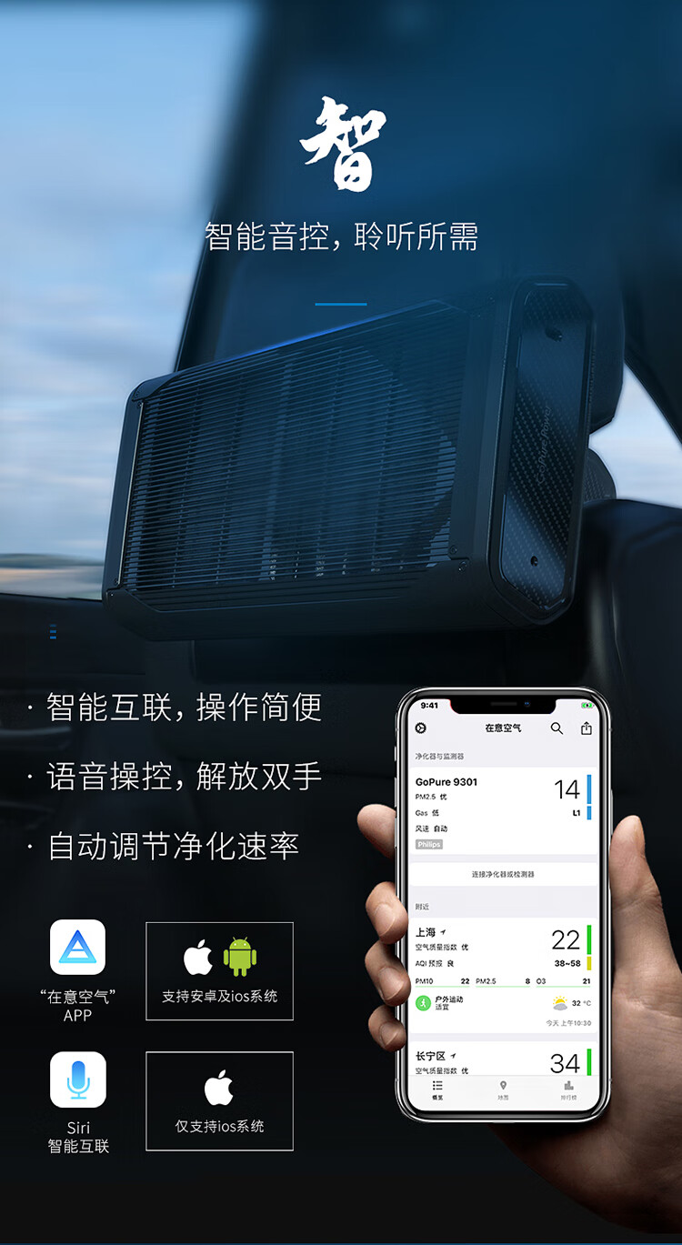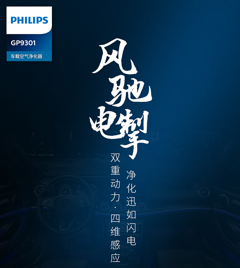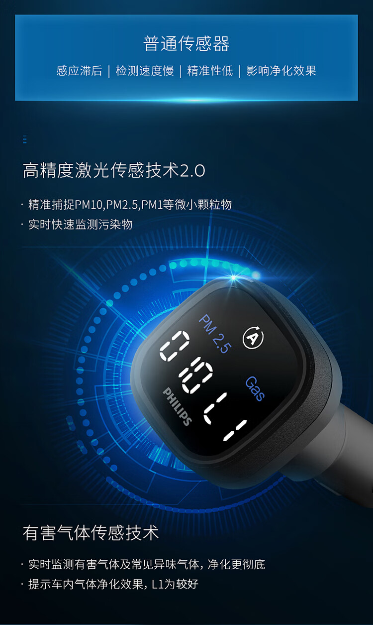 Philips car air purifier, smart connected car formaldehyde removal, odor removal, targeted aldehyde removal GP9301