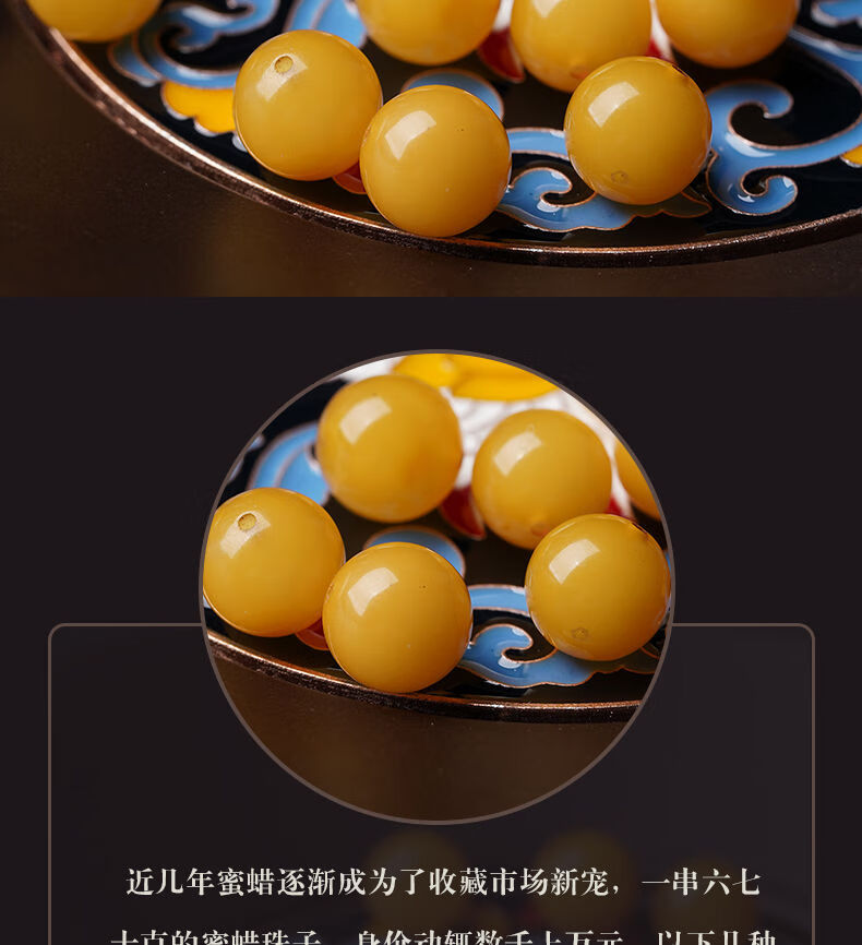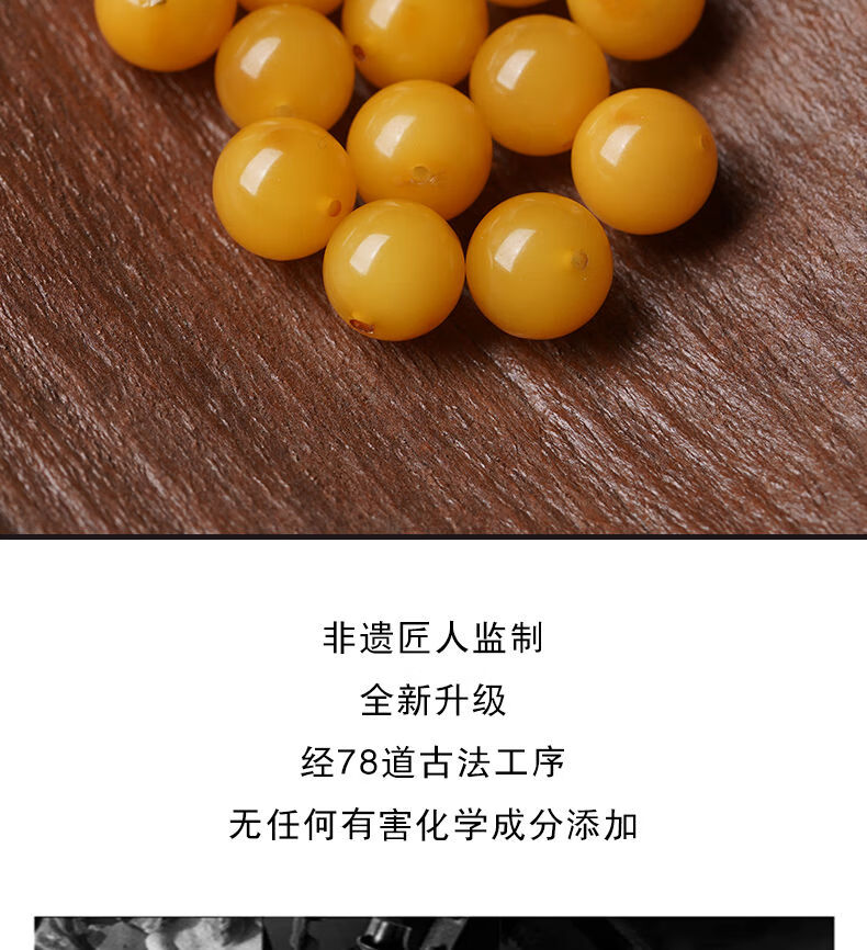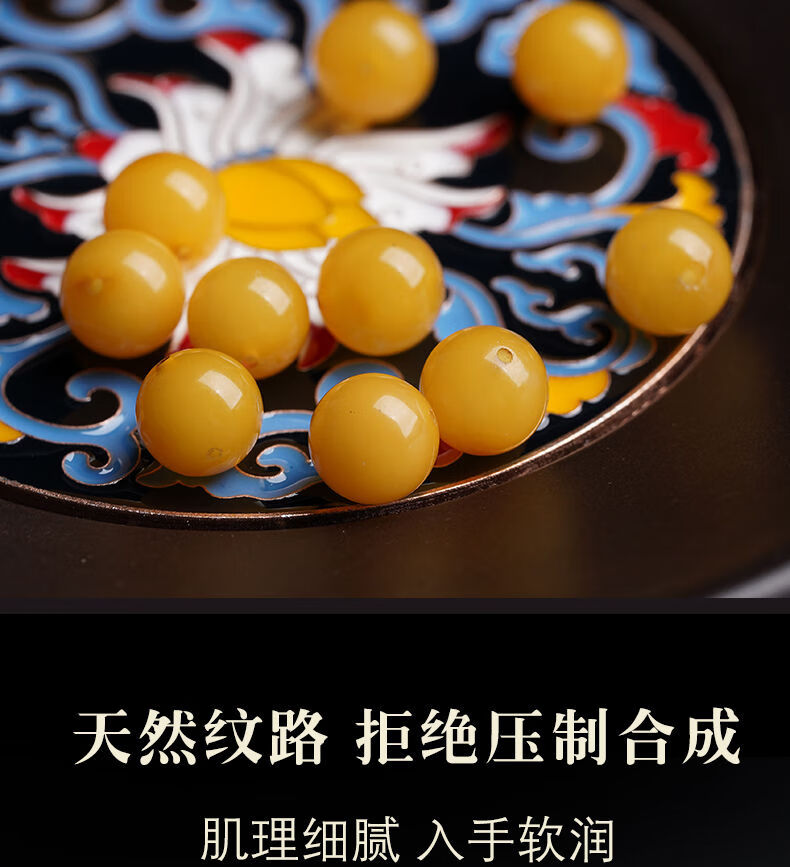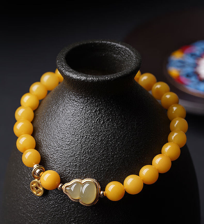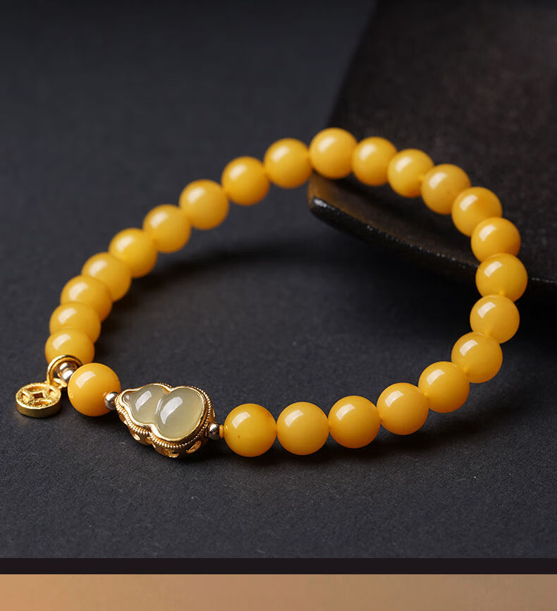 Lie Rui Natural Beeswax Bracelet for Women Old Honey Chicken Oil Yellow Hotan Jade Gourd Bracelet Lucky and Lucky Ancient Style Ball Beads Jewelry Bead Diameter About 6mm Chicken Oil Fulu Yellow Beeswax Bracelet