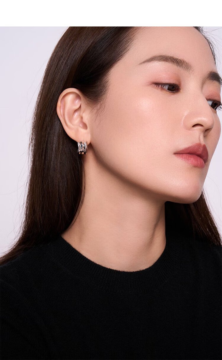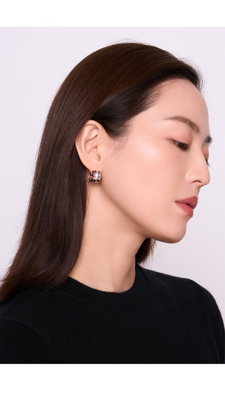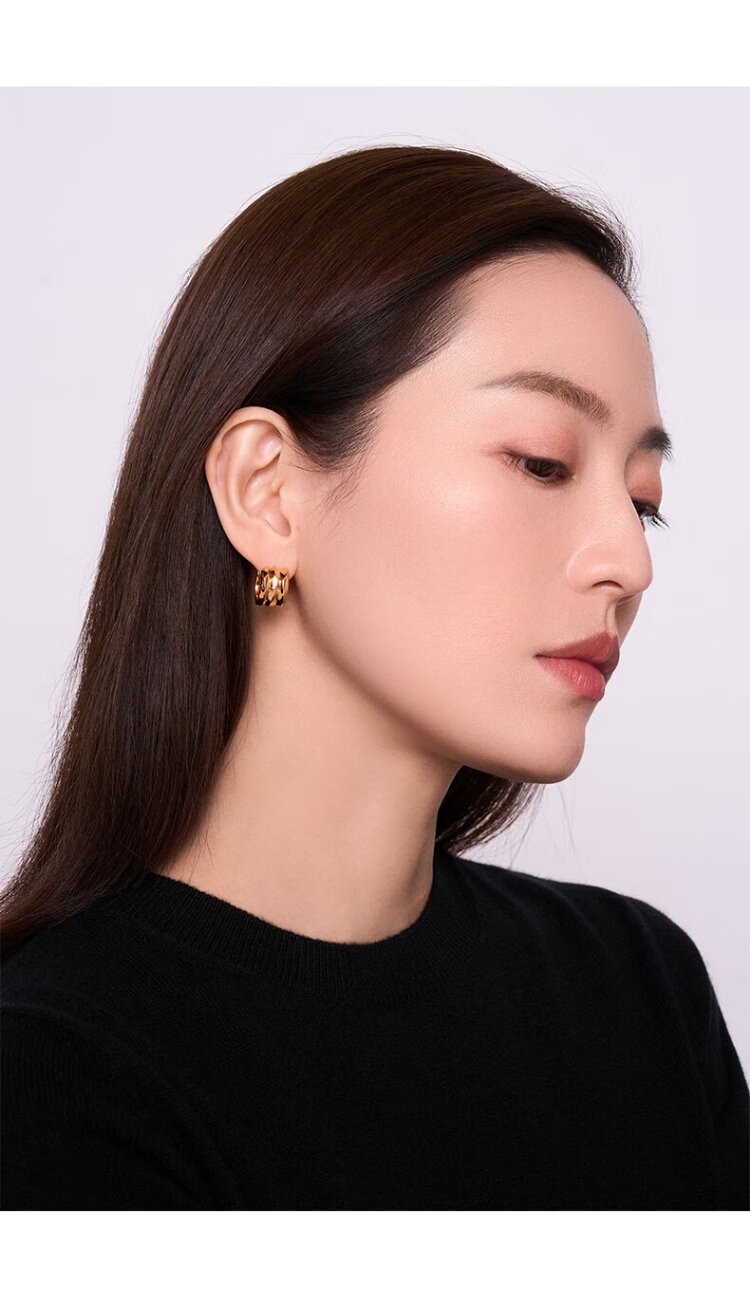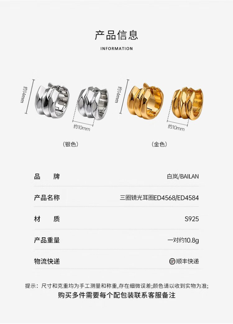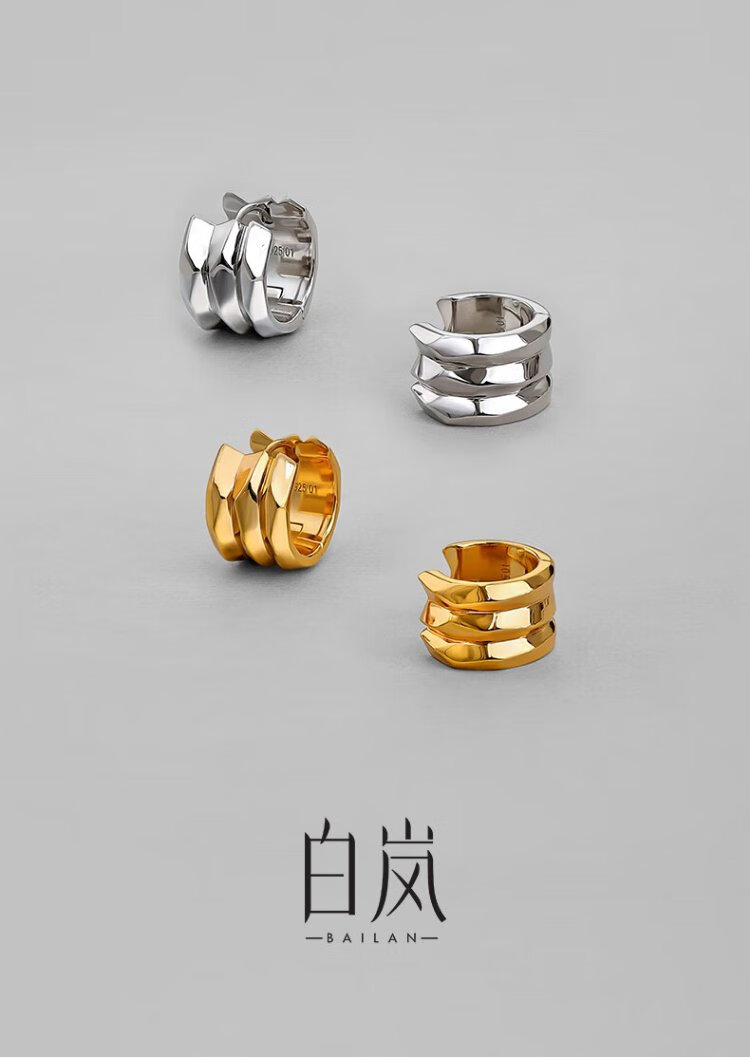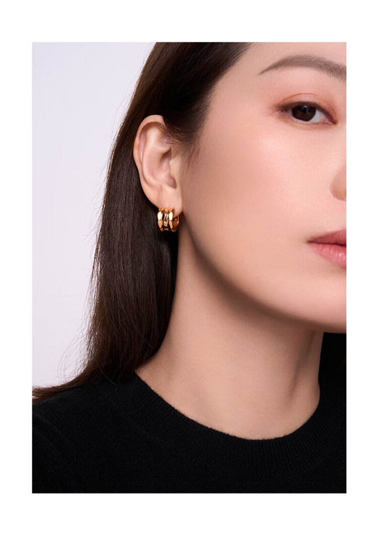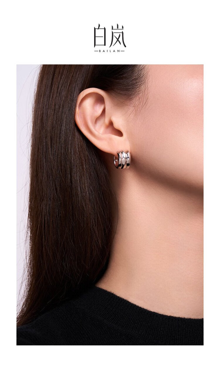 Bai Lan Three Circle Mirror Earrings 925 Silver Women's Earrings Earrings Exquisite Temperament New Niche Design Birthday Gift for Wife Three Circle Mirror Earrings - Gold