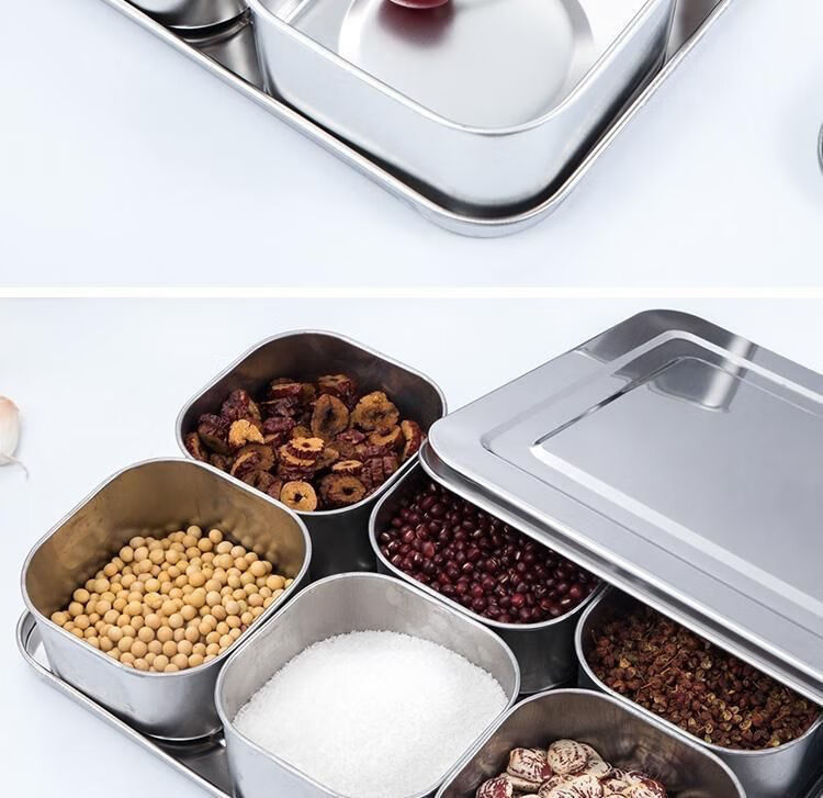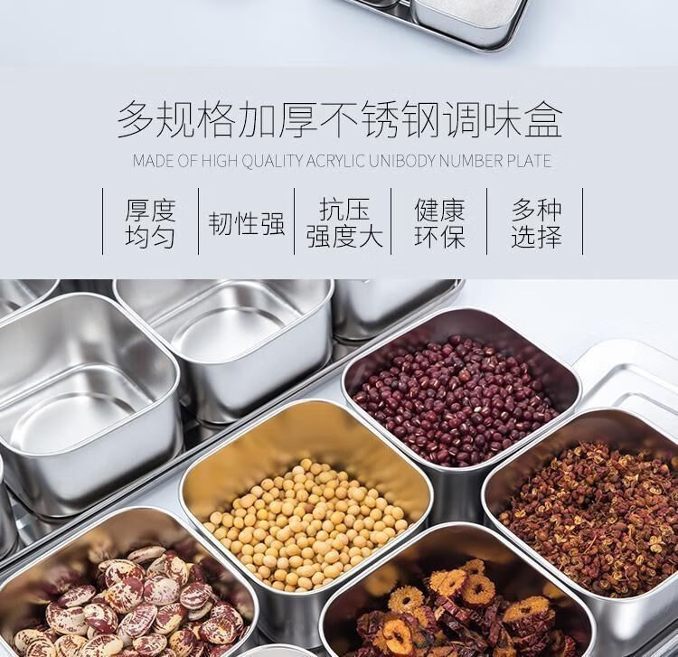 Molosun practical stainless steel seasoning box seasoning box machine-made flavor box sample box food display box seasoning stainless steel flavor box complete set six flavors free spoon