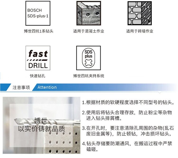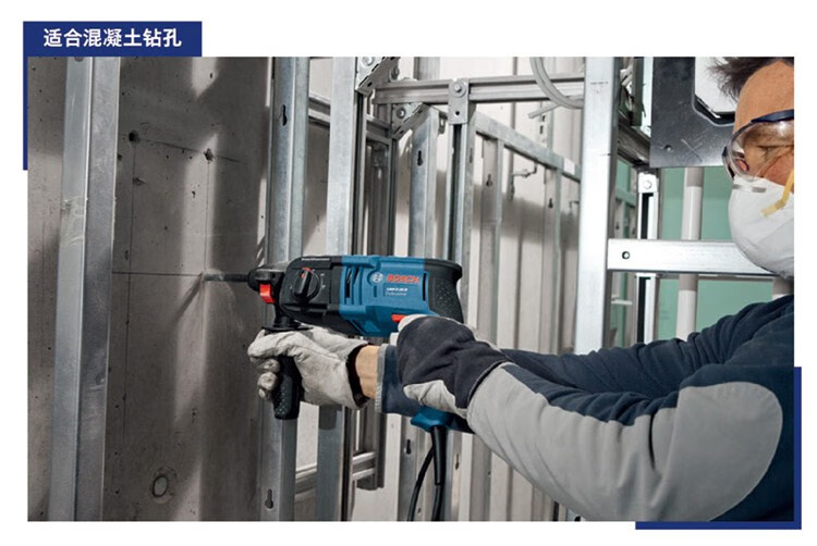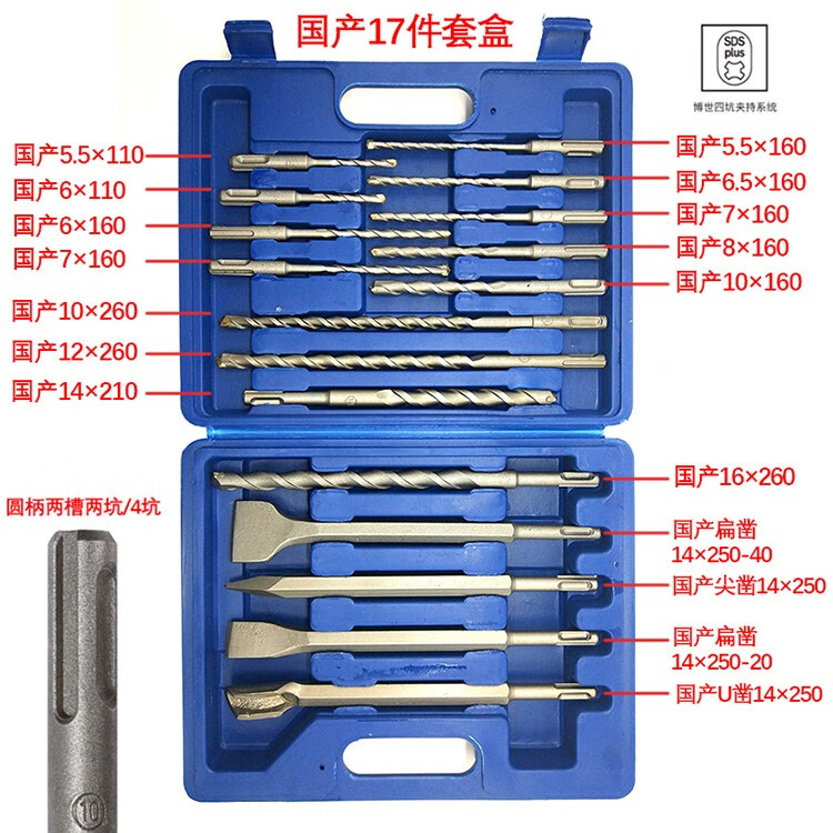 Bosch (BOSCH) electric hammer impact drill with extended round handle, two grooves, two pits, four pits, concrete drill bit, 17-piece set, pointed flat chisel, Bosch 17-piece set, round handle
