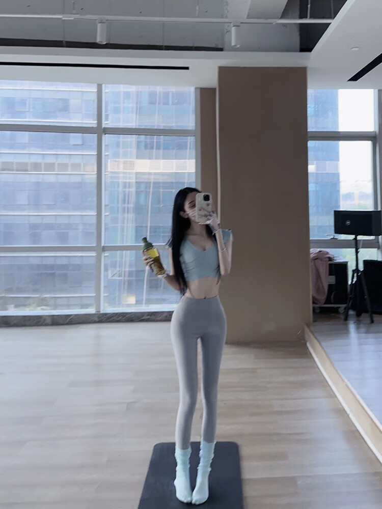 Kangaroo (DAISHU) high-looking yoga clothing suit for women 2025 new high-end Pilates training vest summer fitness clothing top suit light blue top + light gray pants M (95-105Jin Jin equals 0.5 kg)