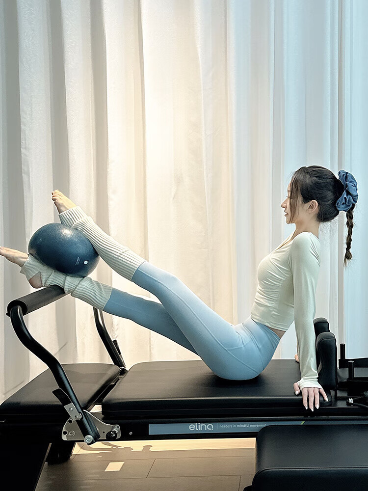 Kangaroo (DAISHU) yoga top long-sleeved Pilates training clothing, beautiful yoga clothing suit for women 2025 new fitness clothing with chest pad suit ivory white top + moon white blue pants S (80-98Jin Jin equals 0.5 kg)